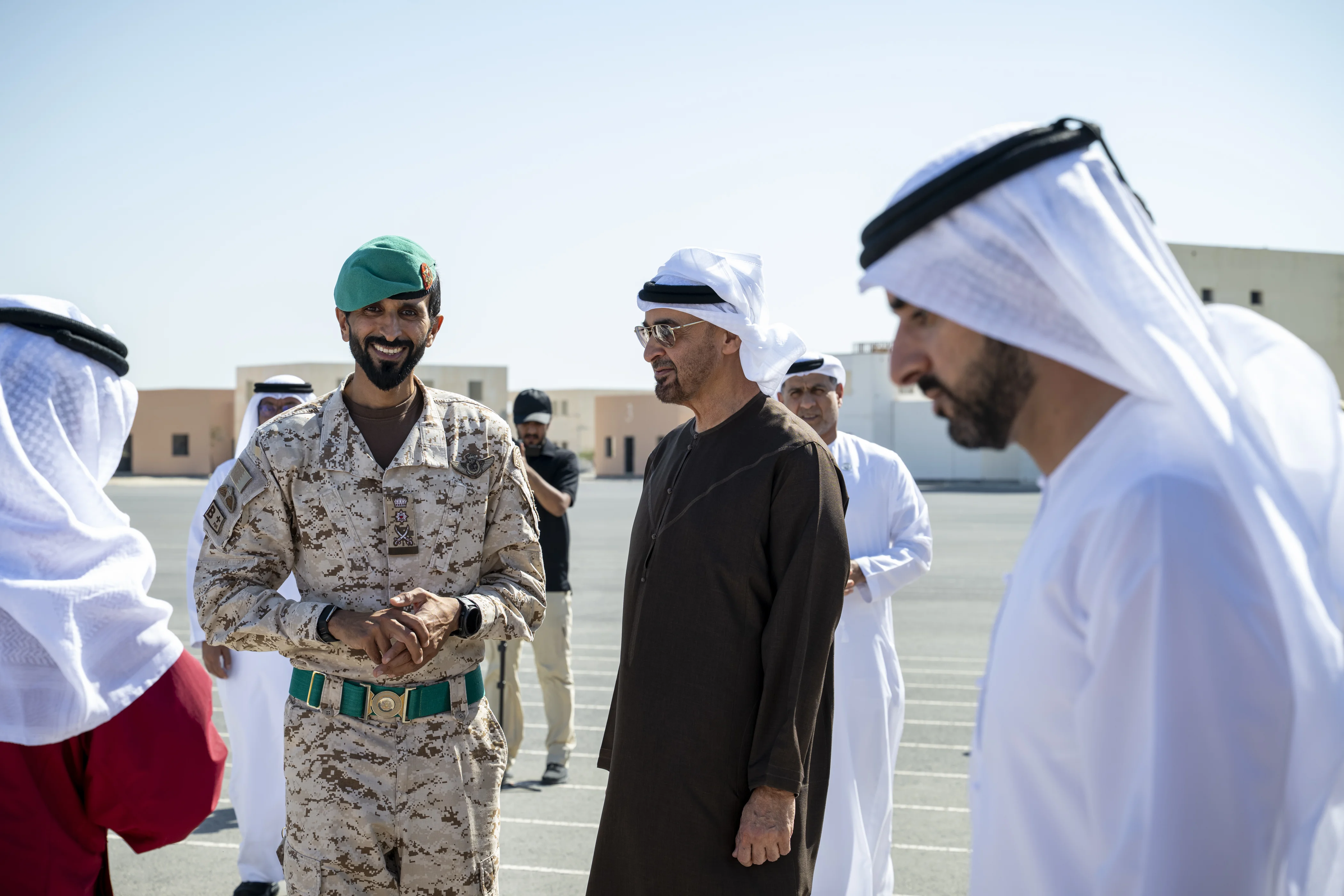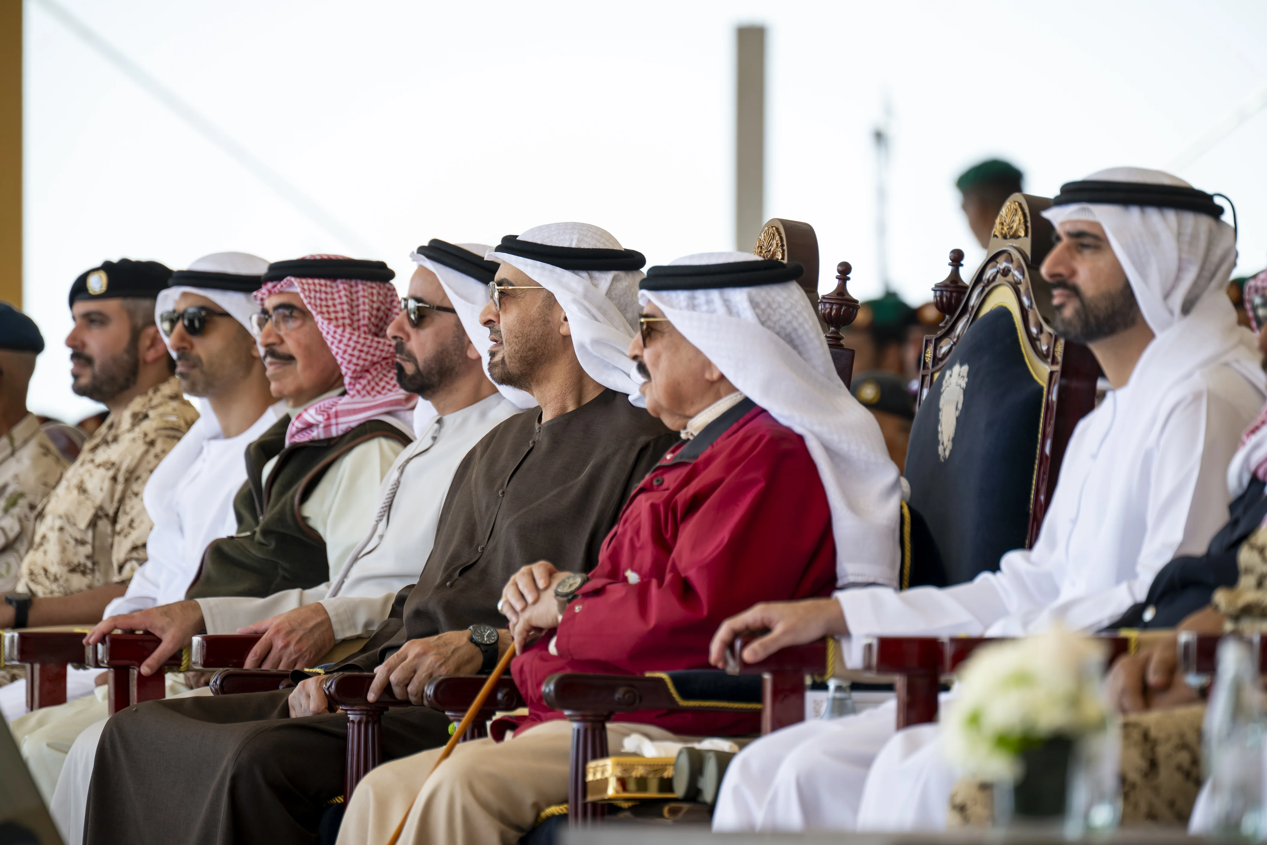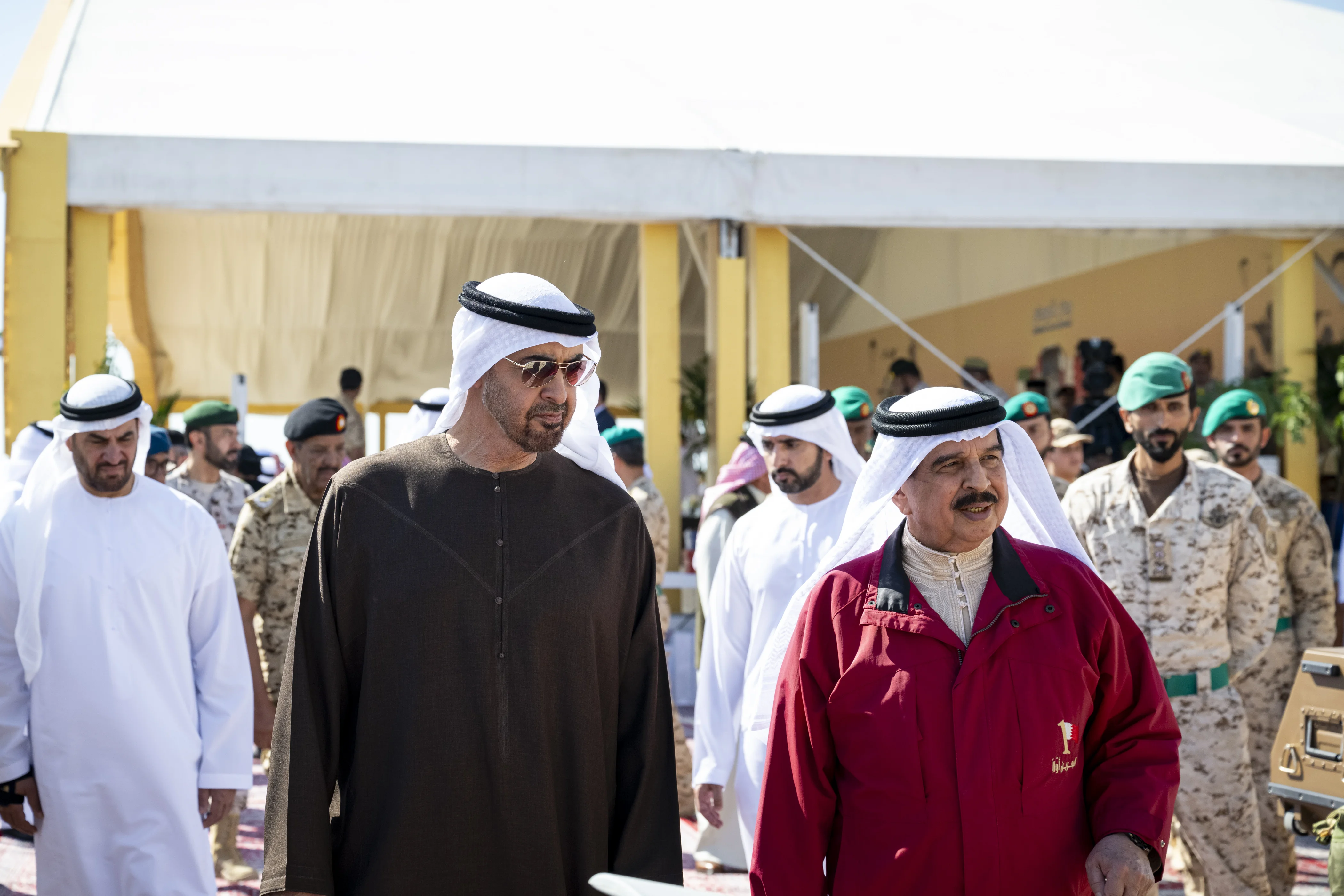 وقام صاحب السمو الشيخ محمد بن زايد آل نهيان وجلالة الملك حمد بن عيسى بجولة في مواقع التدريب حيث صافحا كبار ضباط القوات المسلحة من المشاركين في التمرين العسكري من الجانبين، واستمعا إلى إيجاز حول فعاليات التمرين ومحتوى المعرض المصاحب له.