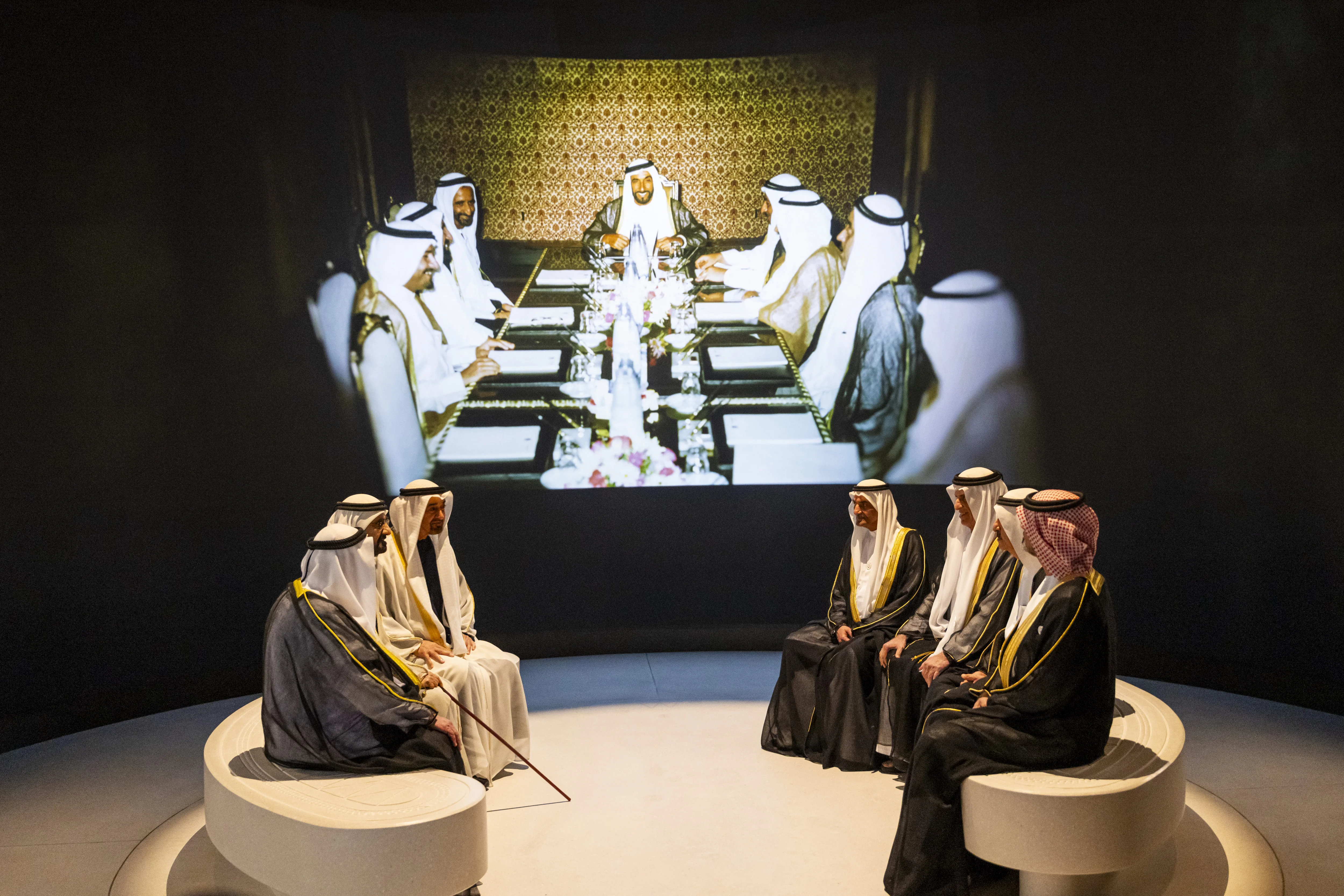 وقام صاحب السمو رئيس الدولة وأصحاب السمو الحكام والشيوخ بجولة في المتحف اطلعوا خلالها على معروضات ووثائق وقطع أثرية ومقتنيات تتناول محطات بارزة من تاريخ دولة الإمارات وماضيها الضارب في جذور التاريخ وإرث المؤسس الشيخ زايد وتضم مجموعة من التسجيلات الصوتية والصور الفوتوغرافية ومقاطع فيديو أرشيفية ومقتنيات شخصية.