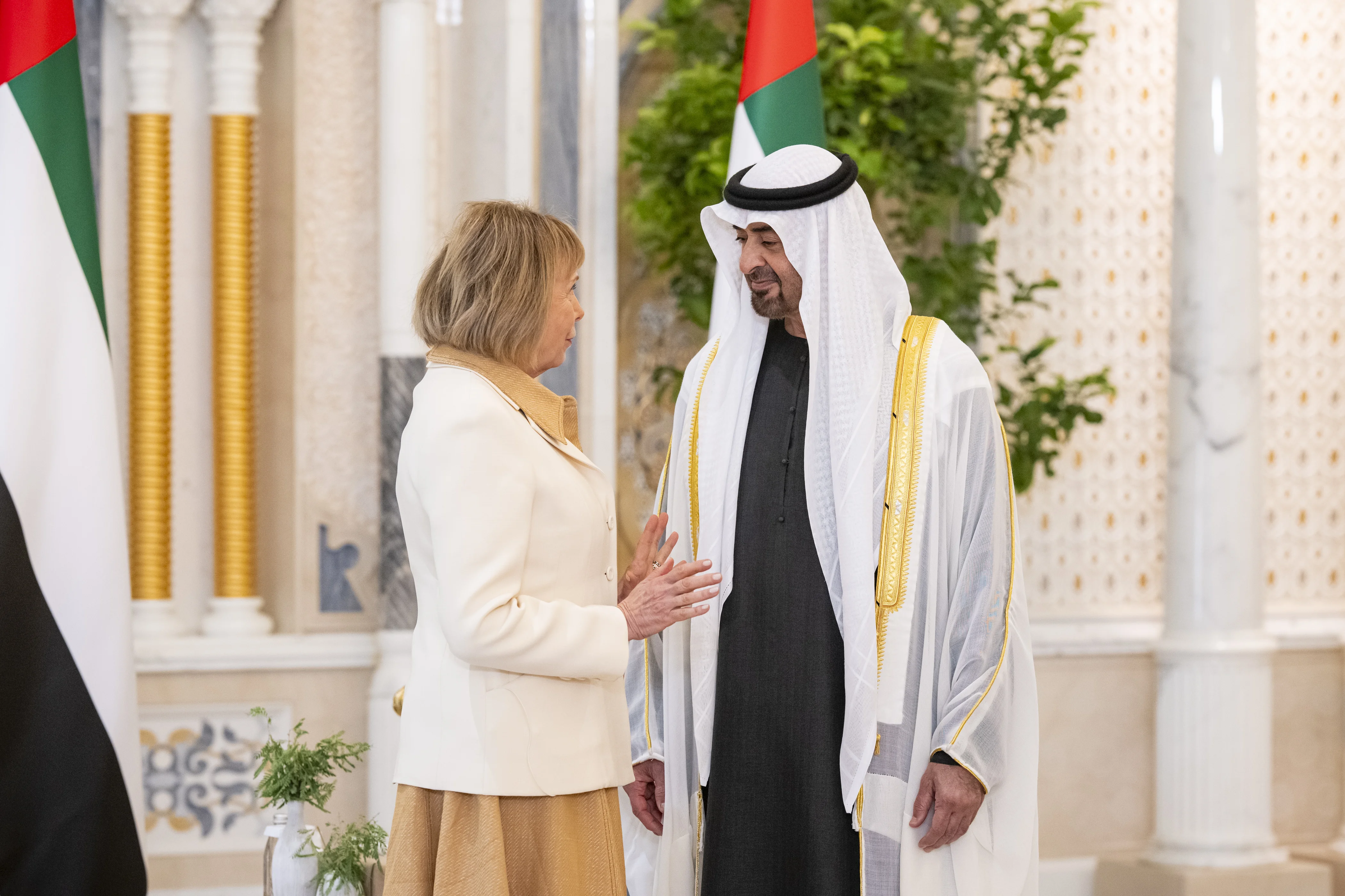 ورحب صاحب السمو رئيس الدولة ـ خلال مراسم الاستقبال التي جرت في قصر الوطن في أبوظبي ــ بالسفراء الجدد مؤكداً نهج دولة الإمارات الراسخ في بناء جسور التعاون التي تسهم في تحقيق النماء والازدهار للجميع، وتدعم السلام والاستقرار، وتعزز التواصل والتفاهم بين مختلف الشعوب والثقافات في العالم.