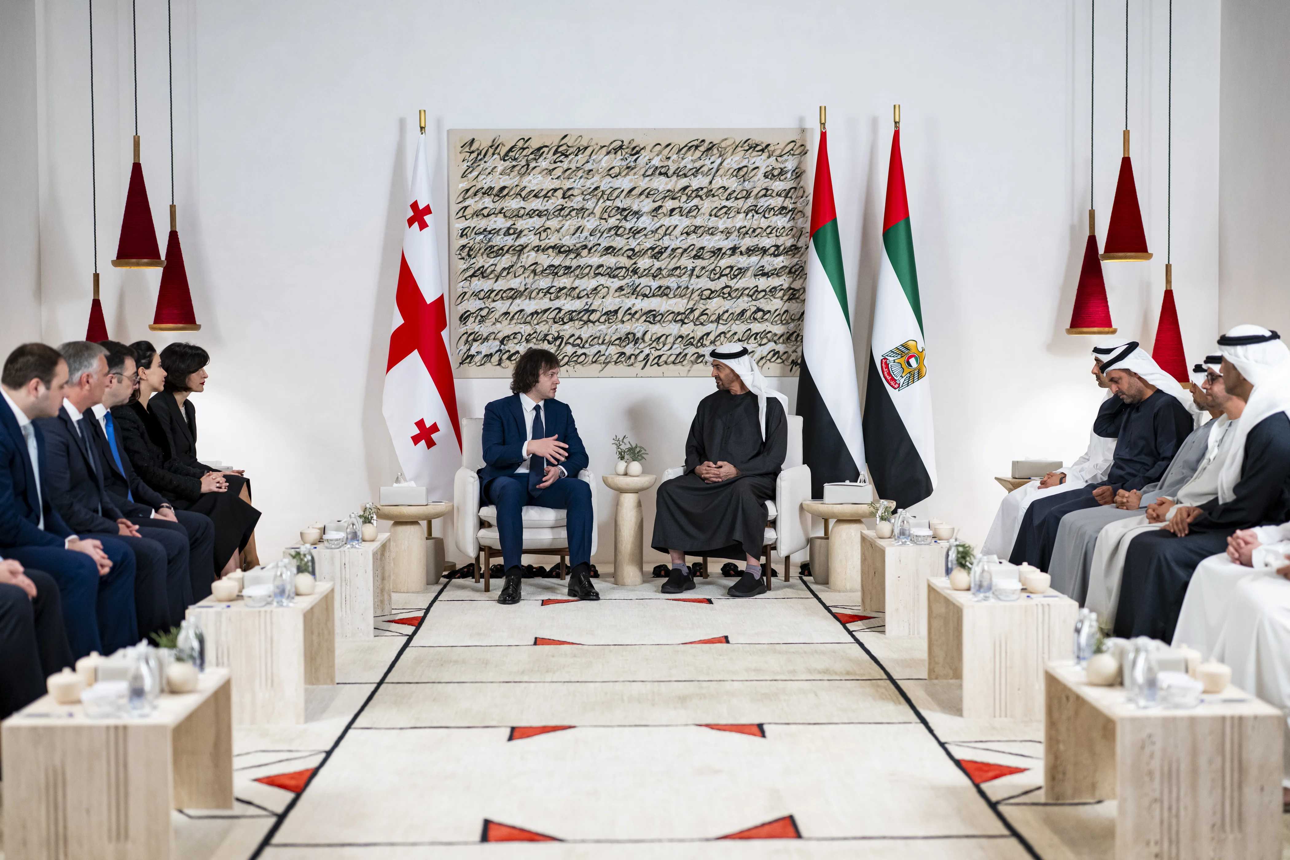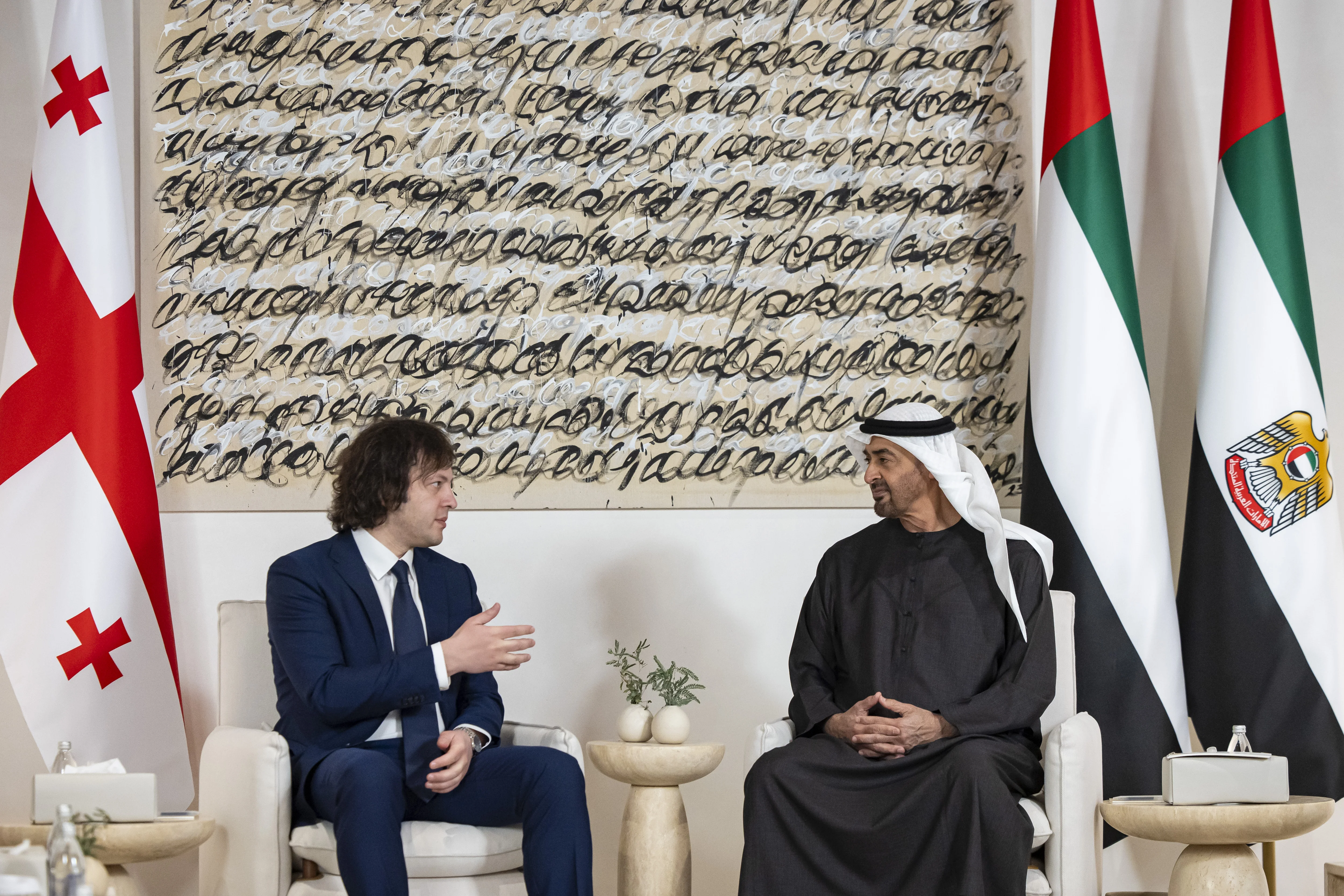 بحث صاحب السمو الشيخ محمد بن زايد آل نهيان رئيس الدولة "حفظه الله " اليوم ومعالي إيراكلي كوباخيدزه رئيس وزراء جورجيا مسارات تطوير التعاون بين البلدين خاصة في المجالات الاستثمارية والاقتصادية والطاقة المتجددة والاستدامة وغيرها من الجوانب الحيوية التي تحظى باهتمام مشترك ضمن خططهما التنموية..وذلك في إطار اتفاقية الشراكة الاقتصادية الشاملة التي تجمع البلدين.