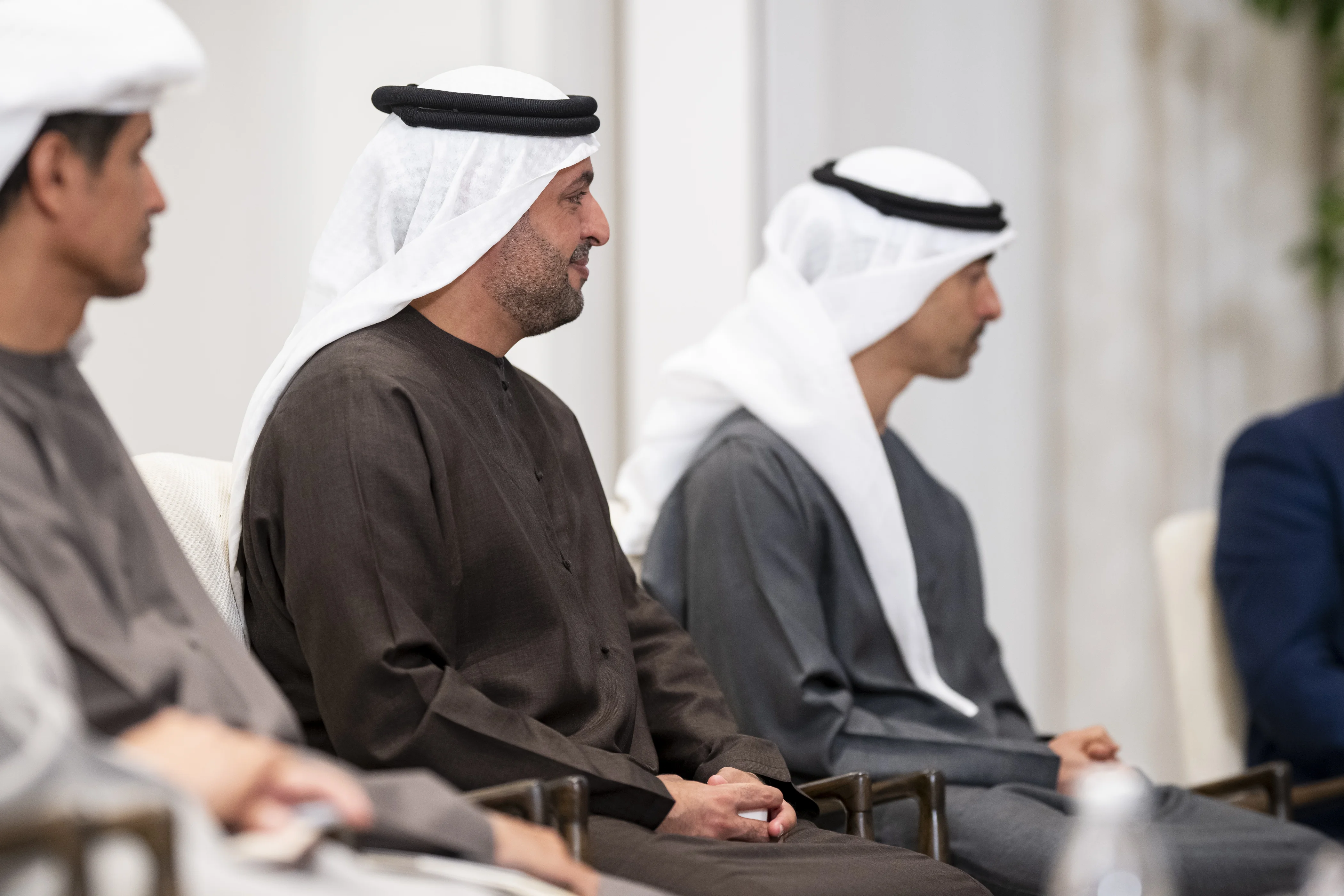 حضر اللقاء..سمو الشيخ خالد بن محمد بن زايد آل نهيان، ولي عهد أبوظبي وسمو الشيخ ذياب بن محمد بن زايد آل نهيان نائب رئيس ديوان الرئاسة للشؤون التنموية وأُسر الشهداء وسمو الشيخ حمدان بن محمد بن زايد آل نهيان نائب رئيس ديوان الرئاسة للشؤون الخاصة ومعالي الشيخ محمد بن حمد بن طحنون آل نهيان مستشار صاحب السمو رئيس الدولة وعدد من الوزراء وكبار المسؤولين في الدولة.
