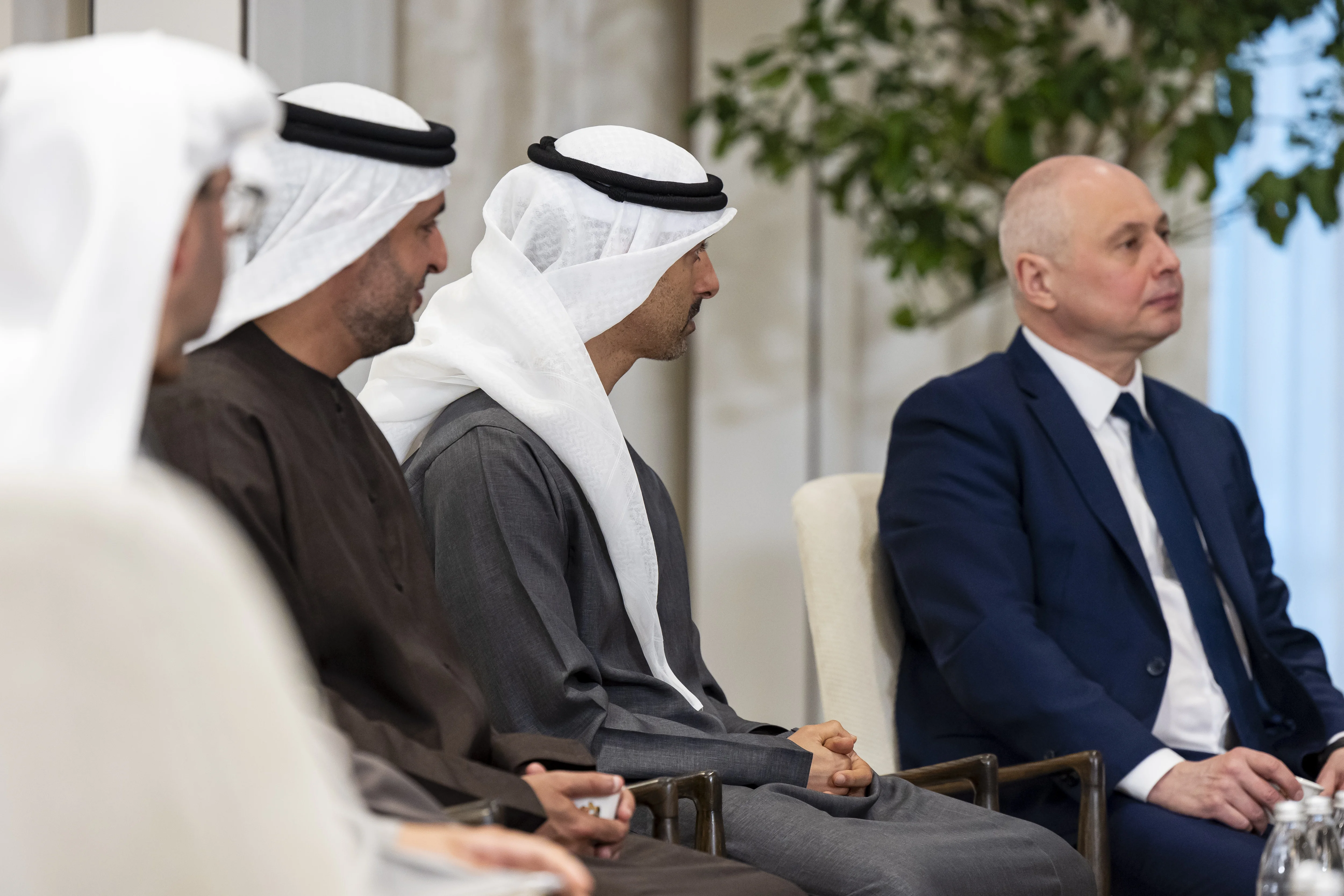 التقى صاحب السمو الشيخ محمد بن زايد آل نهيان رئيس الدولة "حفظه الله" اليوم رؤساء الوفود المشاركة في المحادثات الثلاثية التي تضم كلاً من الولايات المتحدة الأميركية وروسيا الاتحادية وجمهورية أوكرانيا والتي تستضيفها دولة الإمارات .. وذلك في إطار الجهود الهادفة إلى تعزيز الحوار وإيجاد حلول سياسية للأزمة الأوكرانية.