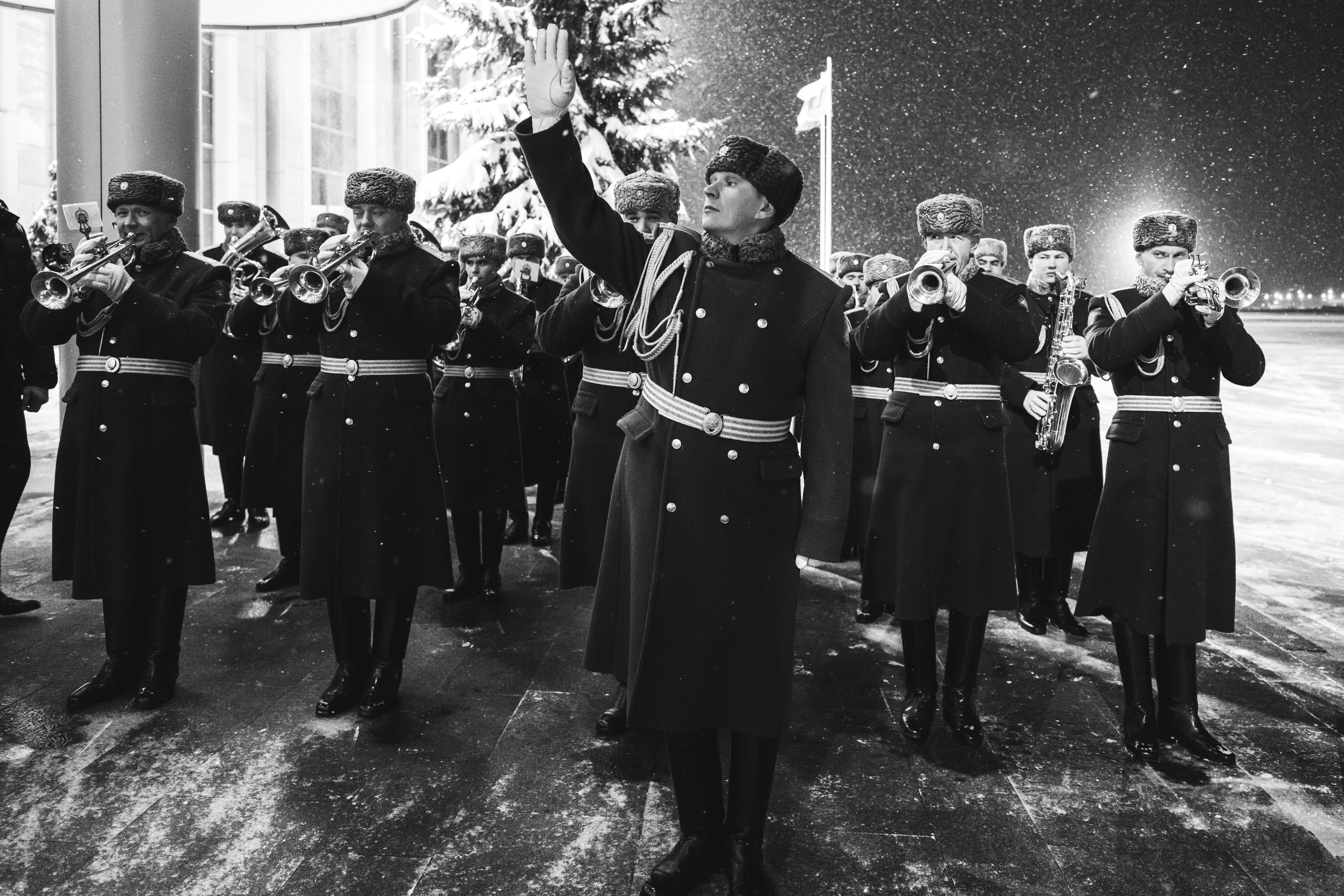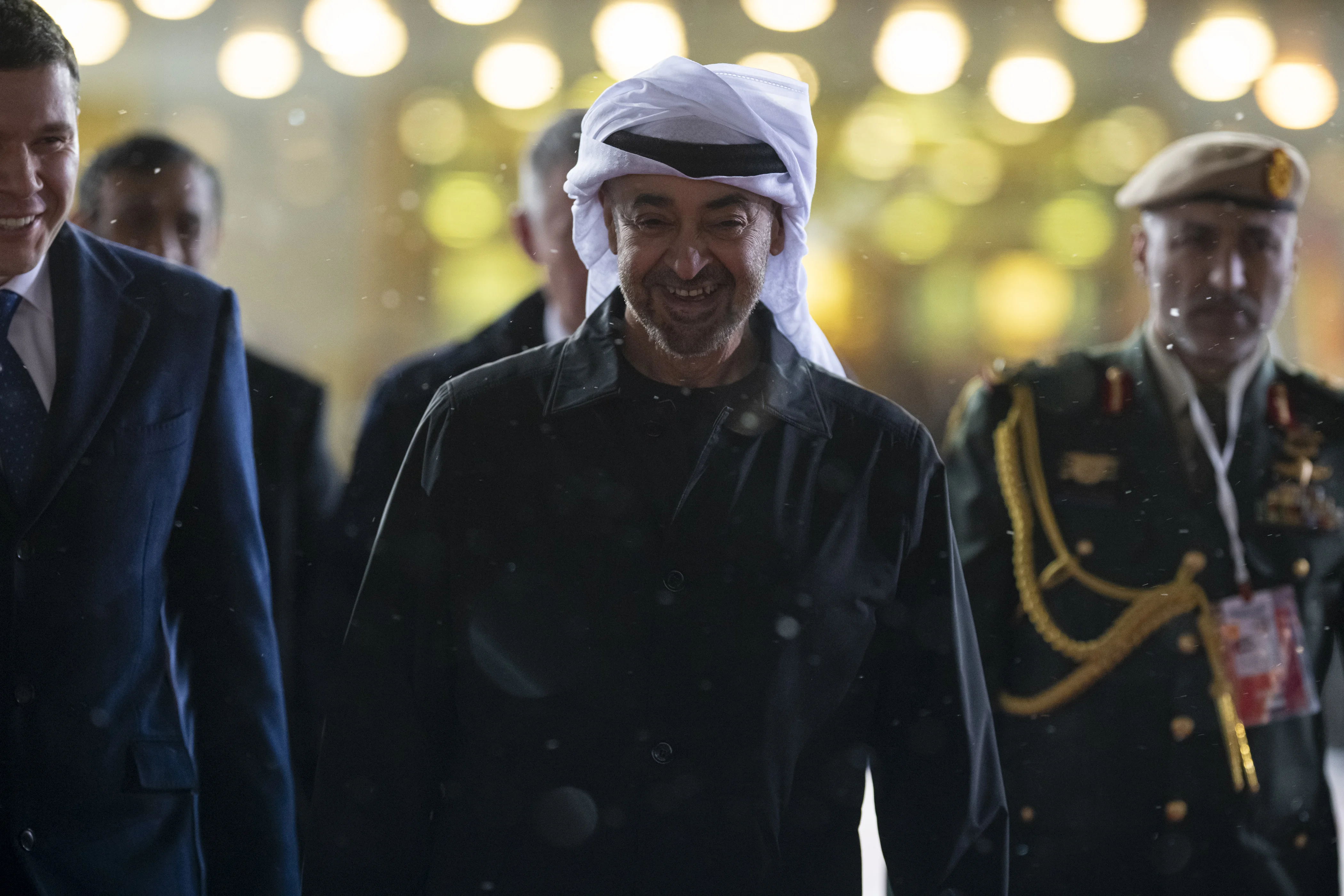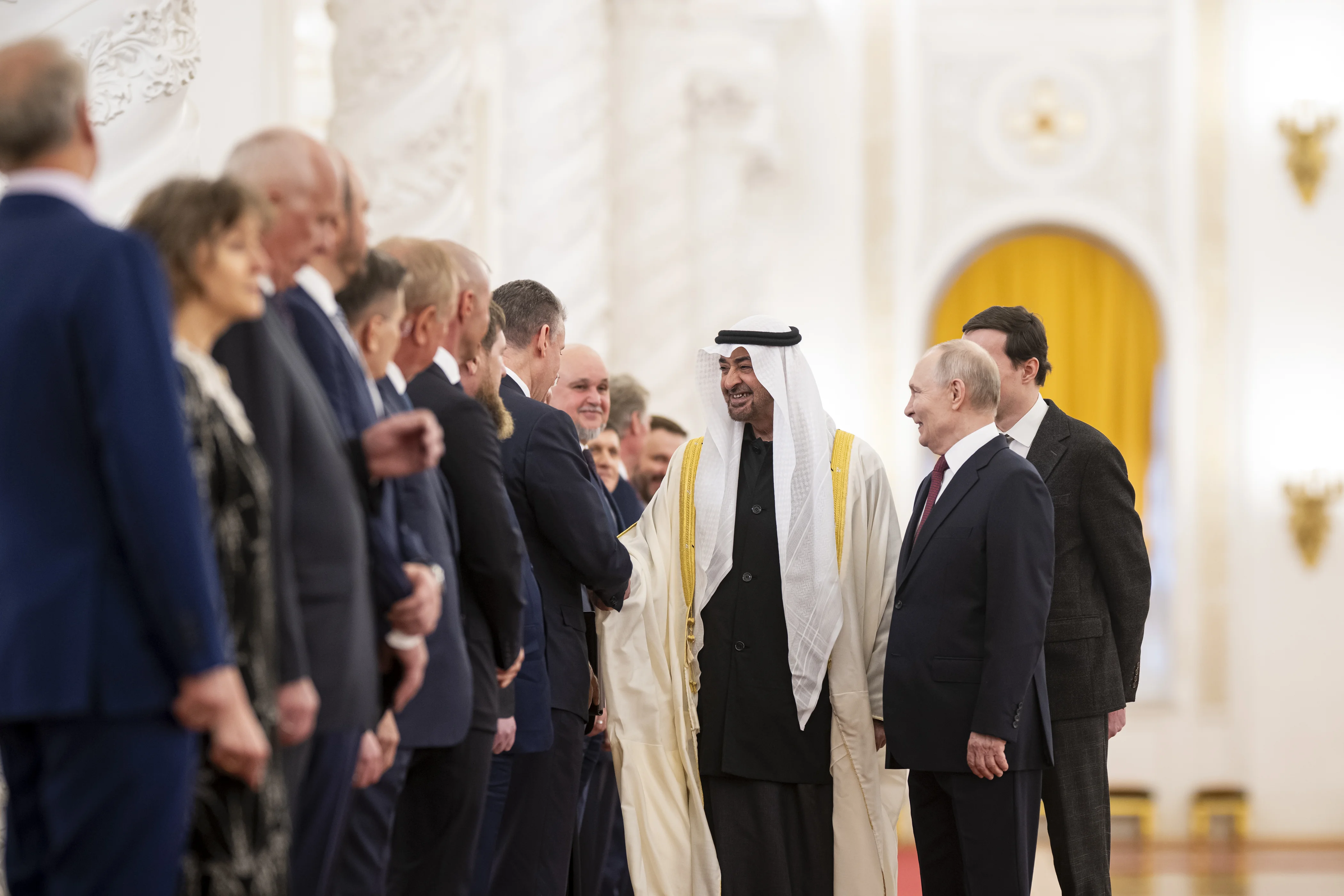 وكانت قد جرت لصاحب السمو رئيس الدولة مراسم استقبال رسمية لدى وصول موكبه إلى الكرملين حيث استقبله الرئيس الروسي وعزف السلام الوطني لكل من دولة الإمارات وروسيا فيما اصطفت مجموعة من الخيالة وثلة من حرس الشرف ترحيباً بسموه.