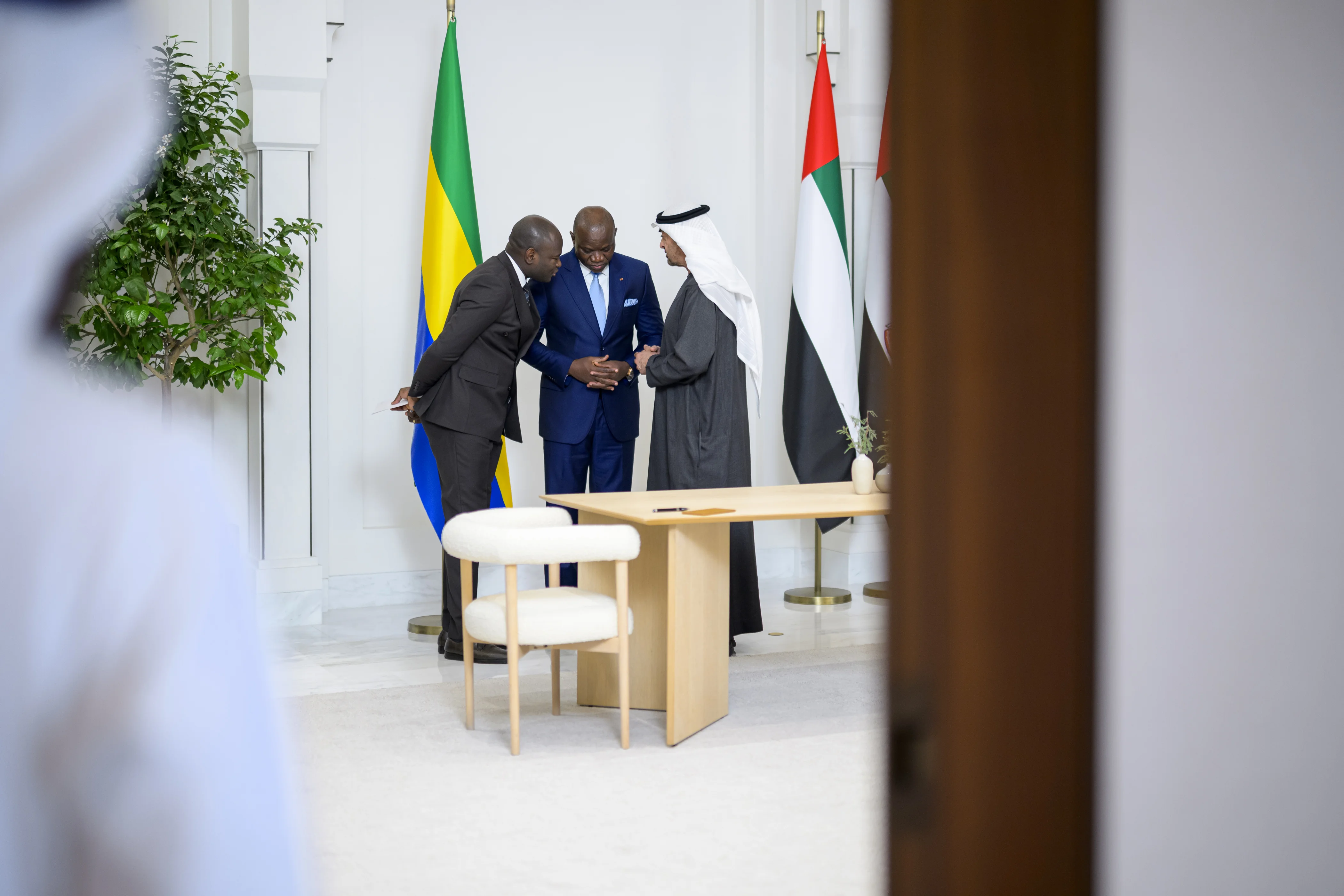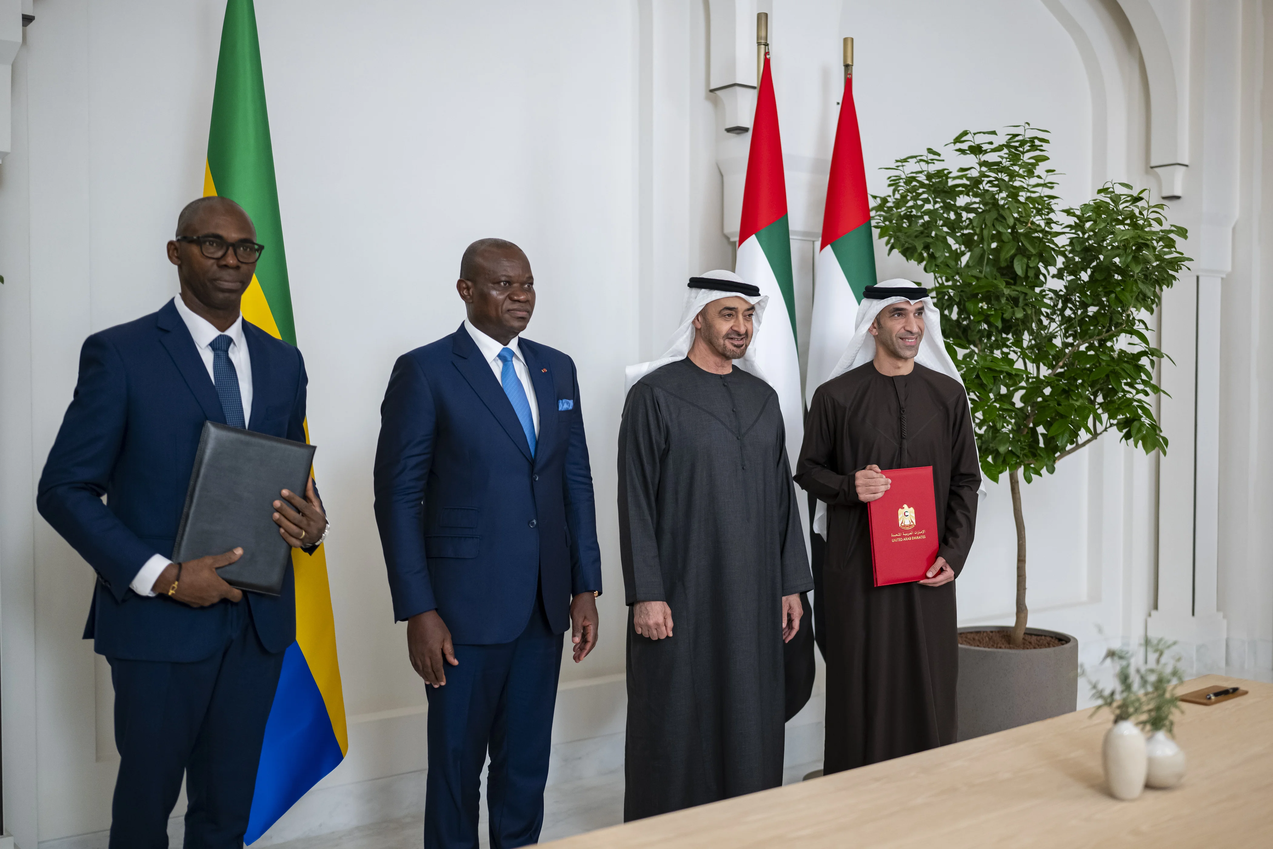 كما شهد صاحب السمو رئيس الدولة ورئيس الغابون إعلان عدد من مذكرات التفاهم بشأن التعاون في المجالات الدفاعية وإنشاء مجلس أعمال إماراتي – غابوني مشترك والتعاون بين الاتحاد النسائي العام ووزارة الشؤون الاجتماعية في الغابون بشأن برنامج تمكين المرأة.