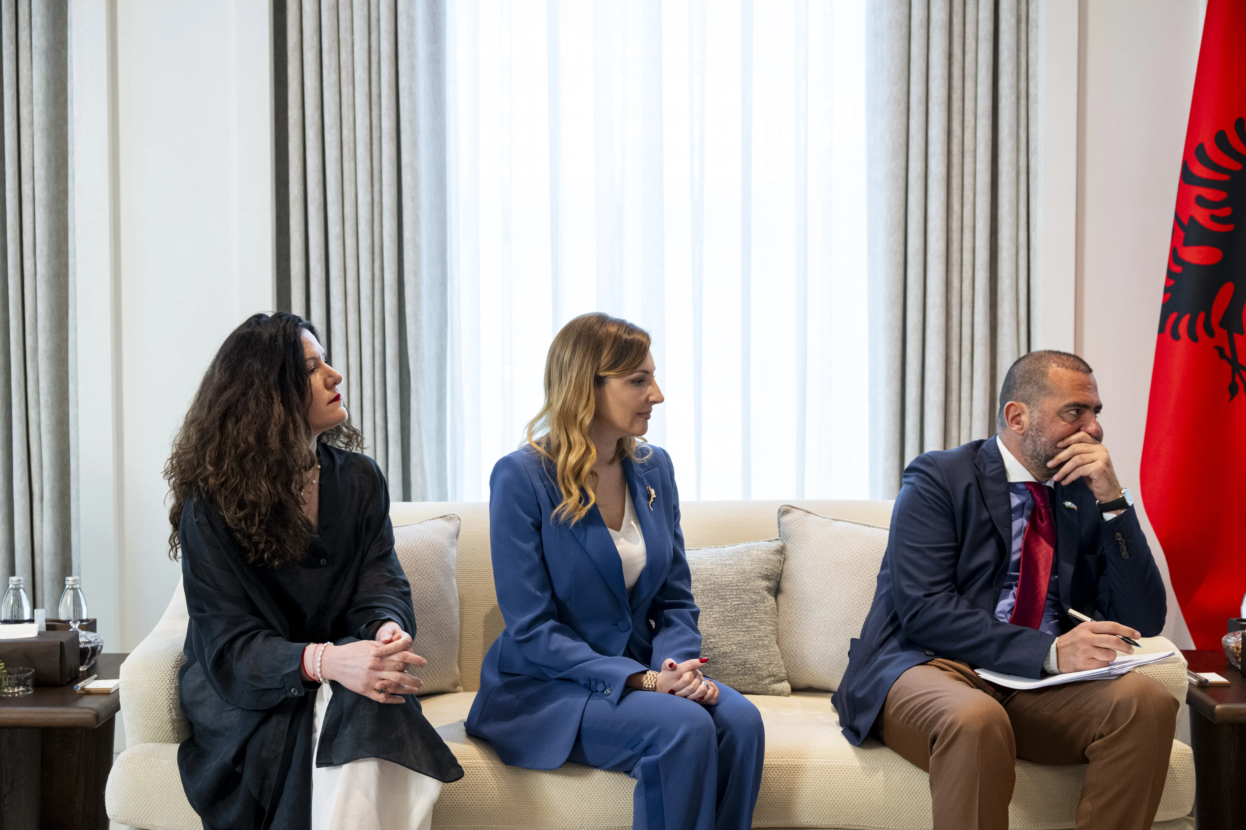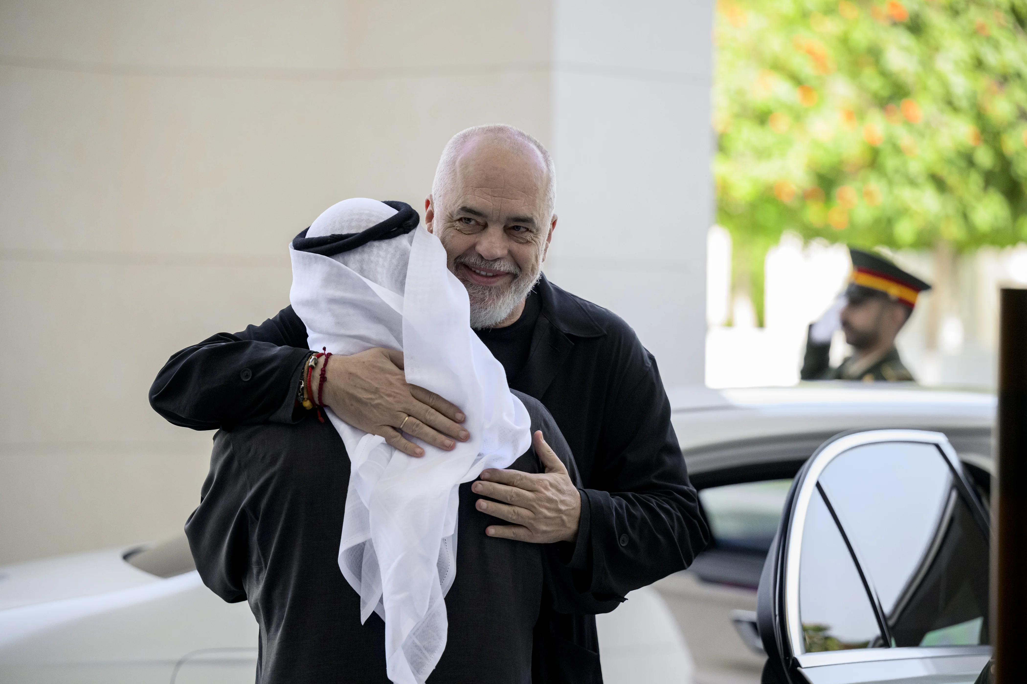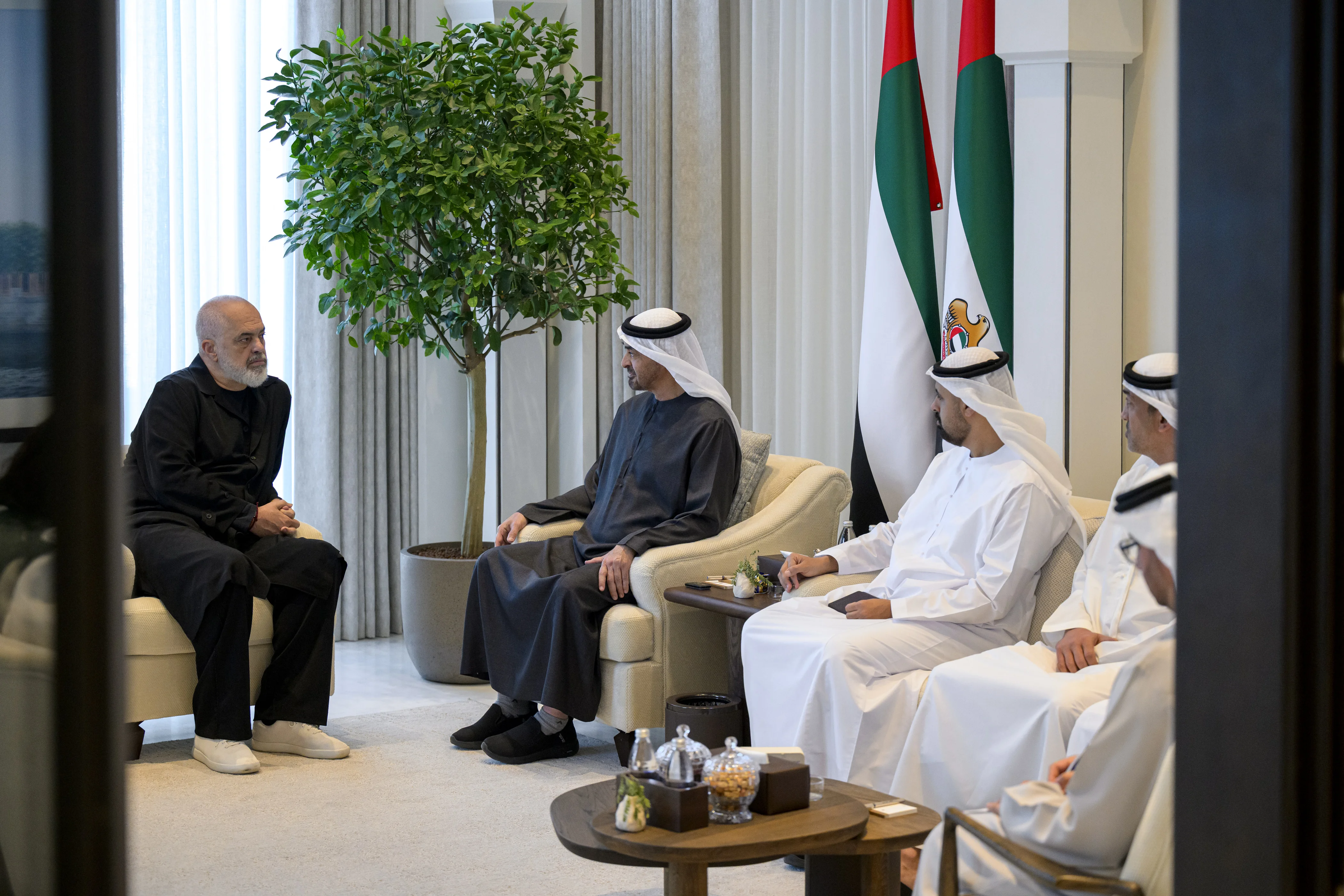 بحث صاحب السمو الشيخ محمد بن زايد آل نهيان رئيس الدولة "حفظه الله" ومعالي إيدي راما رئيس وزراء جمهورية ألبانيا، مسارات تطور العلاقات الثنائية في مختلف المجالات خاصة الاقتصادية والتجارية والطاقة المتجددة والتكنولوجيا وغيرها من المجالات التي تشكل أولوية تنموية للبلدين بما يخدم مصالحهما المتبادلة ويعود بالخير والنماء على شعبيهما.