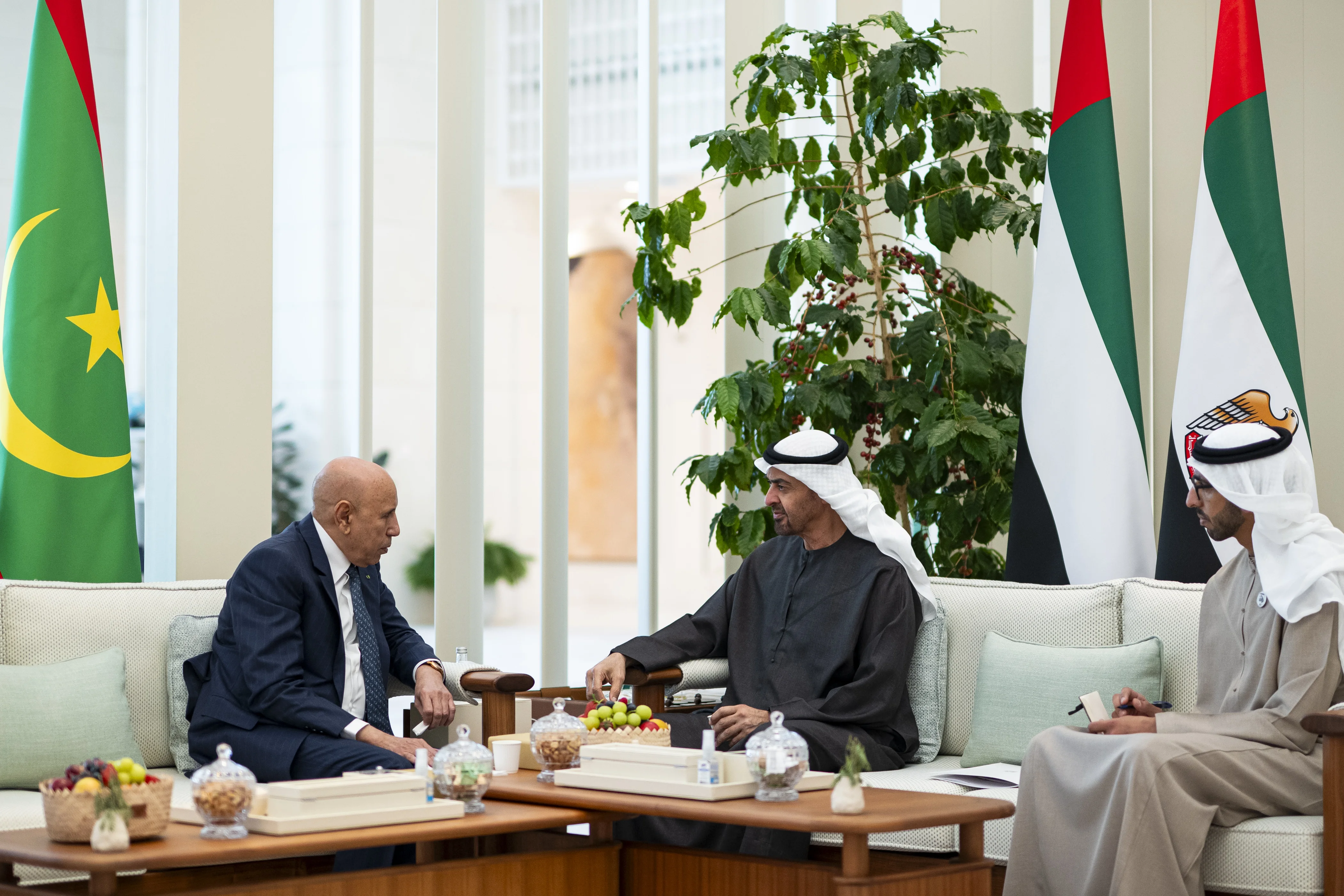 بحث صاحب السمو الشيخ محمد بن زايد آل نهيان رئيس الدولة "حفظه الله" وفخامة محمد ولد الشيخ الغزواني رئيس الجمهورية الإسلامية الموريتانية الشقيقة اليوم..مختلف جوانب التعاون بين البلدين والعمل المشترك لتعزيزها خاصة في المجالات التنموية والاقتصادية والطاقة المتجددة بما يخدم أولويات التنمية ومصالحهما المتبادلة ويسهم في تحقيق النماء والازدهار لشعبيهما.