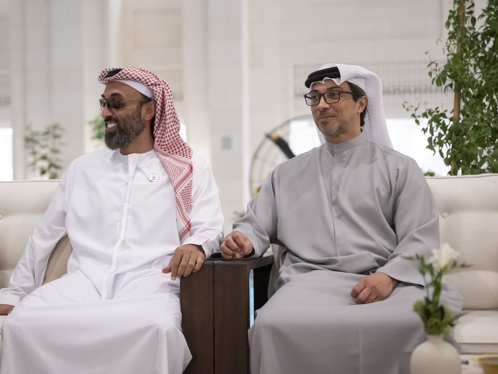 Also present at the meeting and the dinner banquet were His Highness Sheikh Mansour bin Zayed Al Nahyan, Vice President, Deputy Prime Minister and Chairman of the Presidential Court; H.H. Sheikh Khaled bin Mohamed bin Zayed Al Nahyan, Crown Prince of Abu Dhabi; H.H. Sheikh Hazza bin Zayed Al Nahyan, Deputy Ruler of Abu Dhabi; H.H. Sheikh Tahnoun bin Zayed Al Nahyan, Deputy Ruler of Abu Dhabi; H.H. Sheikh Hamdan bin Zayed Al Nahyan, Ruler's Representative in Al Dhafra Region; H.H. Sheikh Hamed bin Zayed Al Nahyan; H.H. Sheikh Abdullah bin Zayed Al Nahyan, Minister of Foreign Affairs; H.H. Sheikh Khalid bin Zayed Al Nahyan, Chairman of the Board of Zayed Higher Organisation for People of Determination; H.H. Sheikh Hamdan bin Mohamed bin Zayed; Sheikh Mohammed bin Hamad bin Tahnoun Al Nahyan, Advisor for Special Affairs at the Presidential Court; and a number of senior officials.