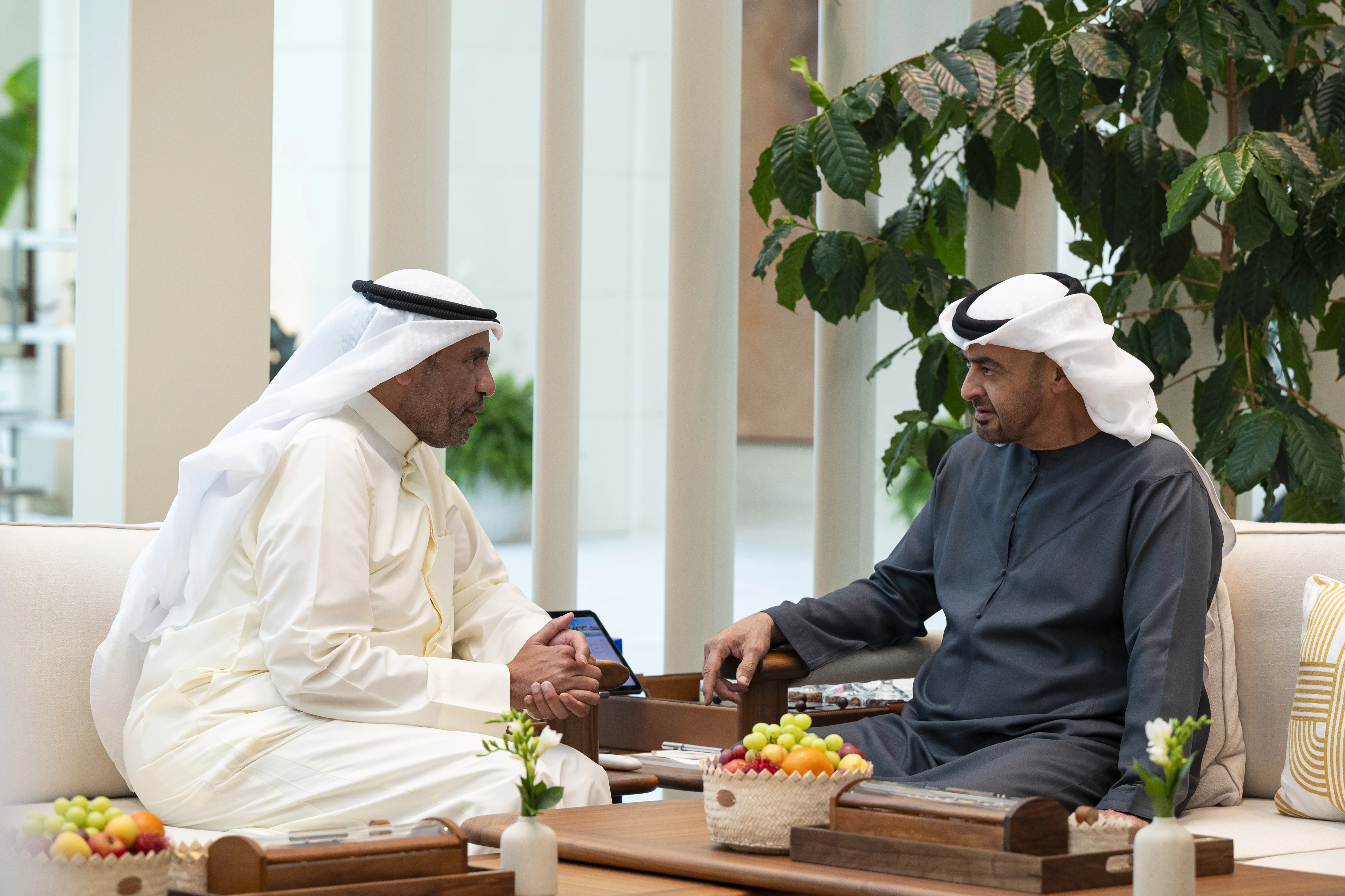 During the meeting, held at Qasr Al Shati in Abu Dhabi, His Excellency conveyed the greetings of His Highness Sheikh Meshal Al Ahmad Al Jaber Al Sabah, Emir of Kuwait, along with his best wishes for further progress and prosperity for the UAE and its people.