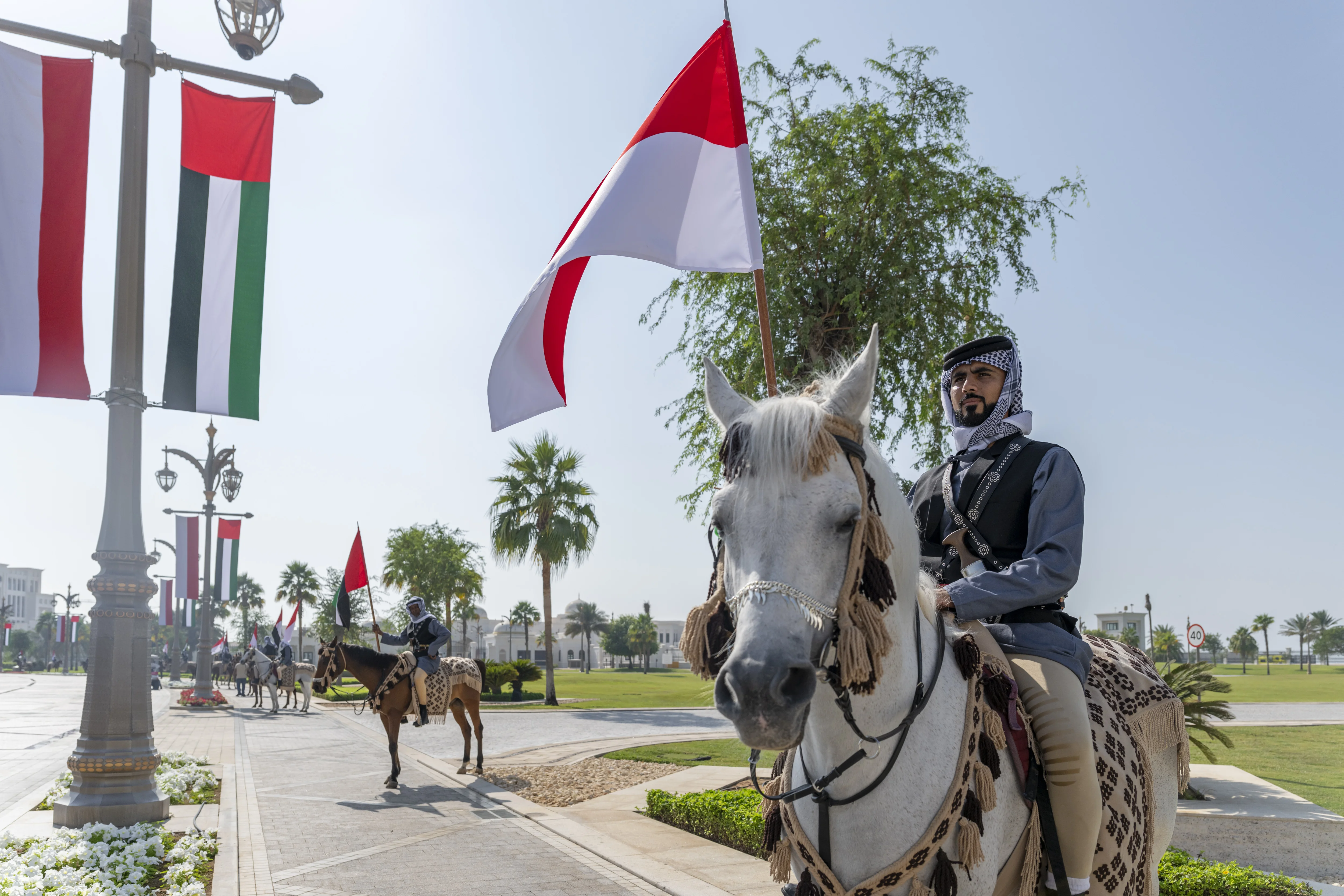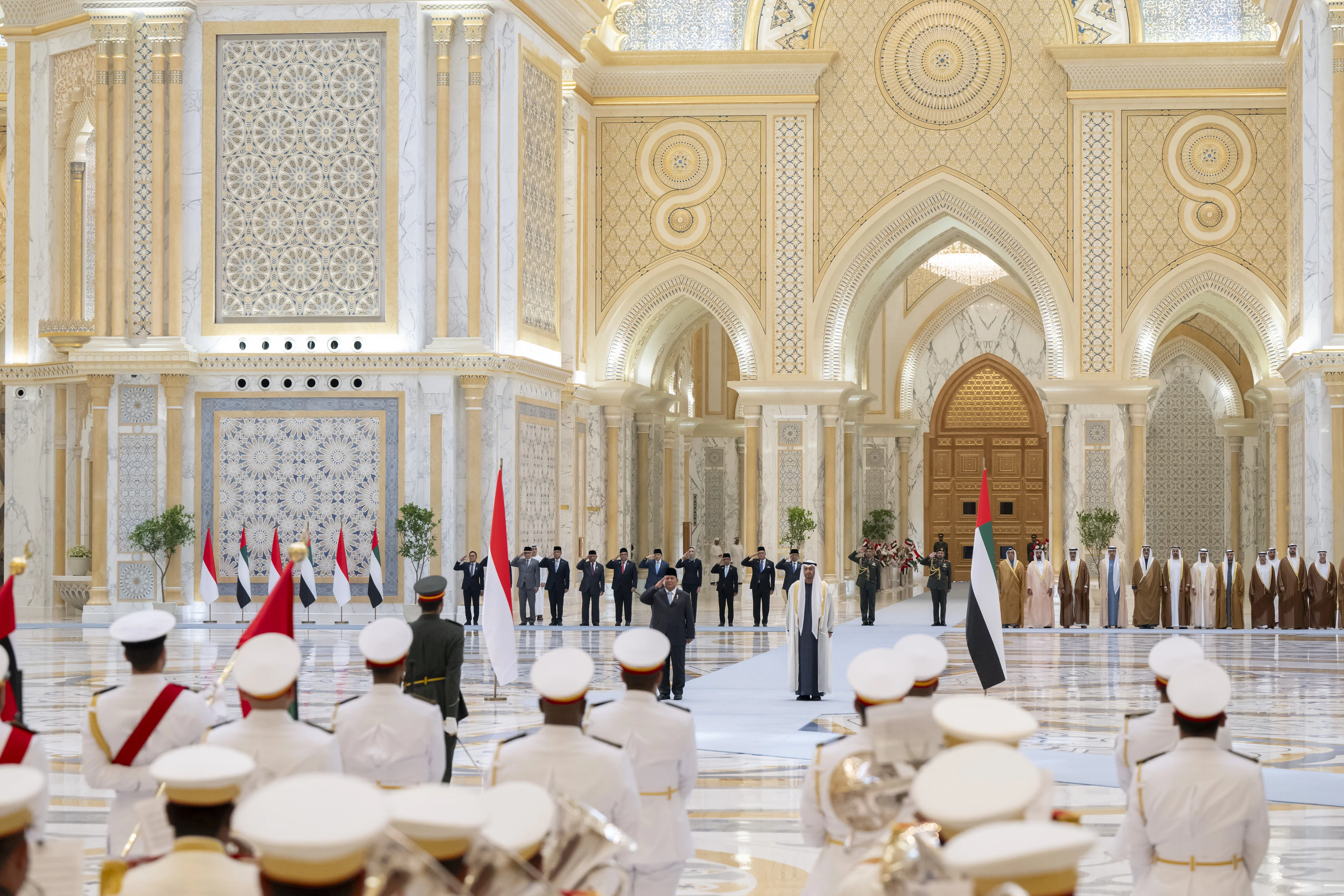 An official reception ceremony was held at Qasr Al Watan in Abu Dhabi to welcome the Indonesian President, whose motorcade was met by a procession of riders on camels and Arabian horses, alongside traditional Emirati cultural performances in celebration of the visit.
