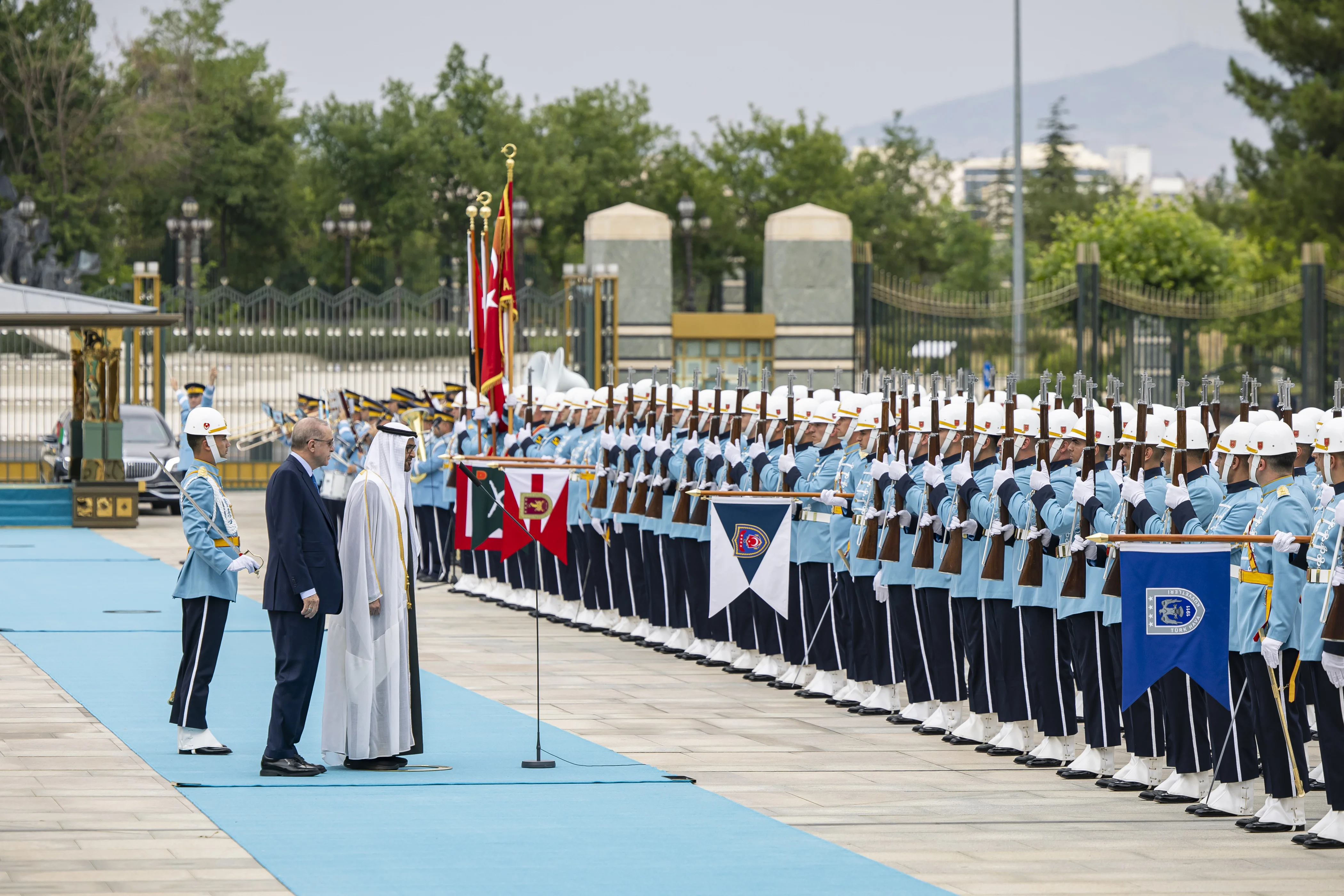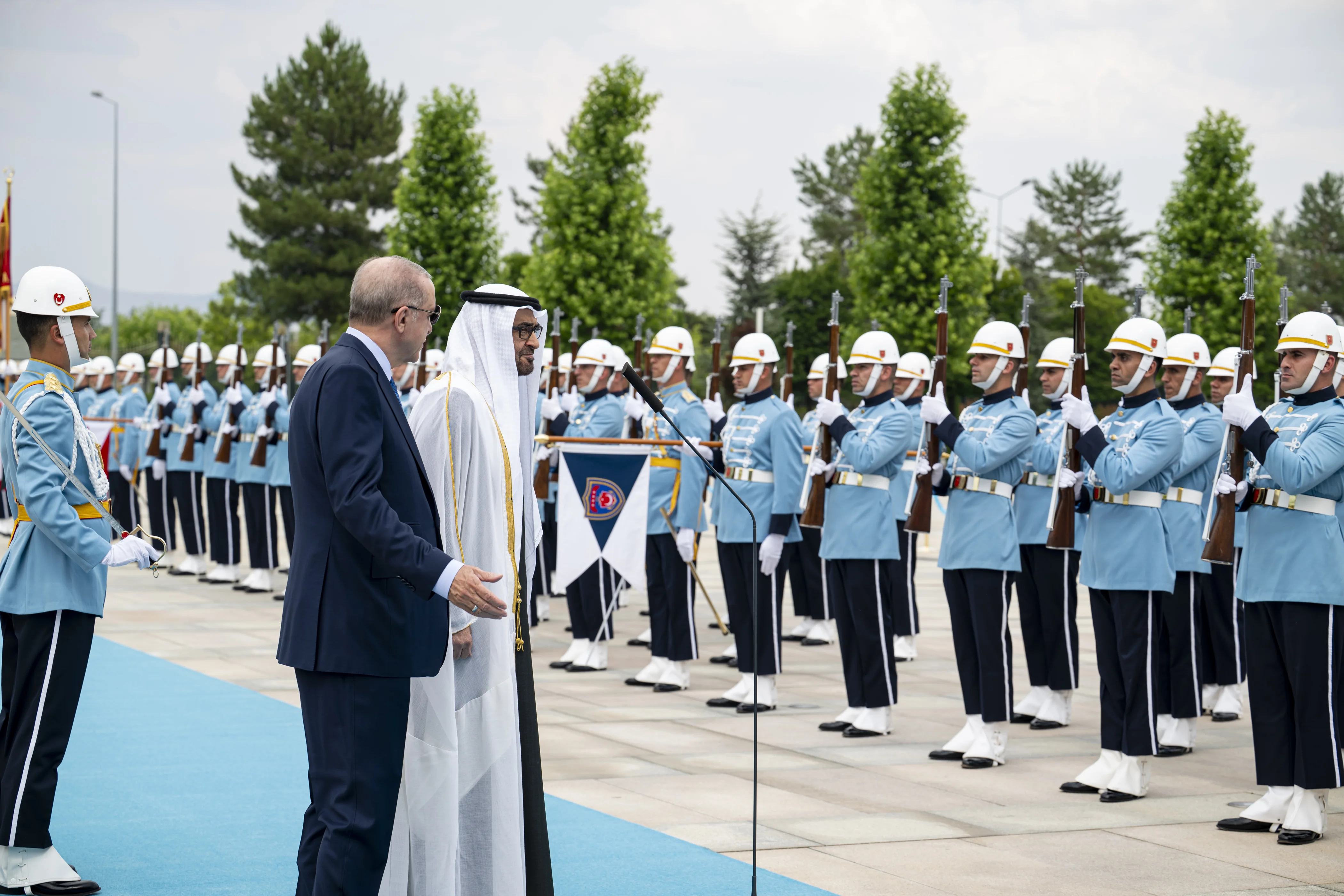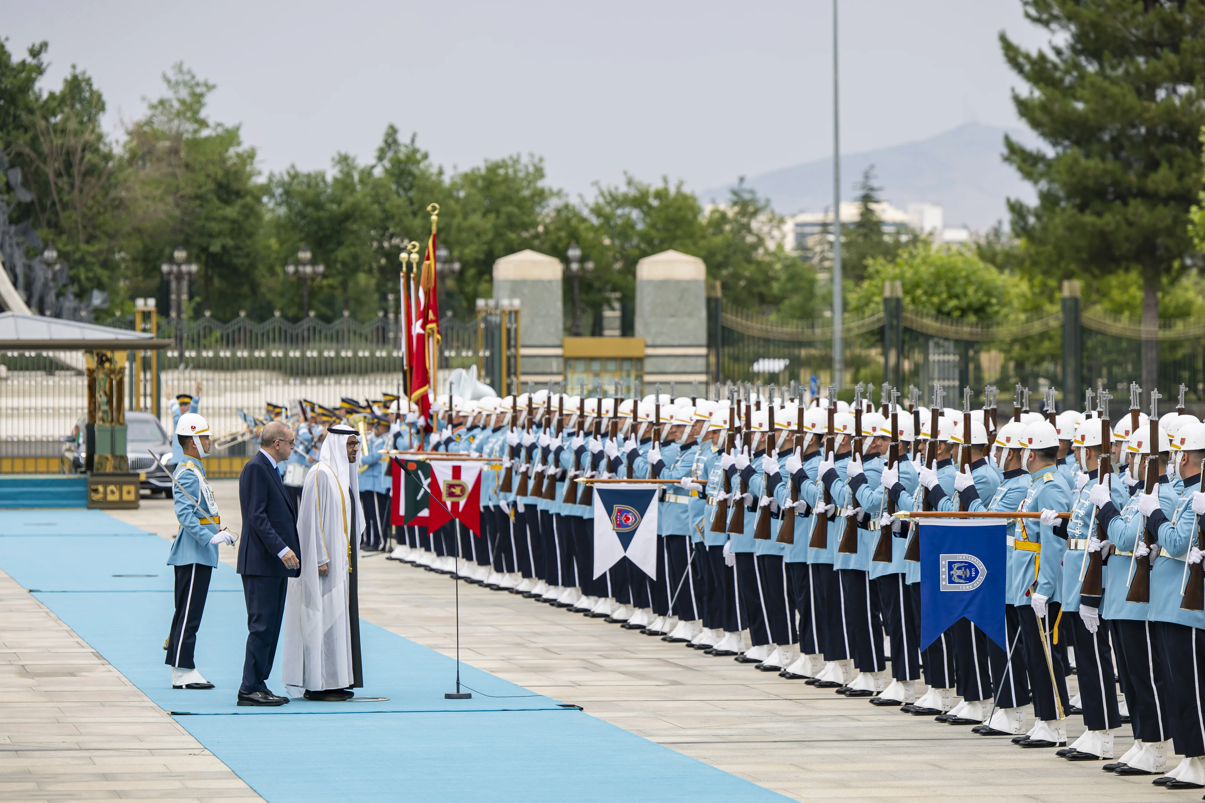 UAE President His Highness Sheikh Mohamed bin Zayed Al Nahyan arrived at the Presidential Palace in Ankara as part of his state visit to the Republic of Türkiye.