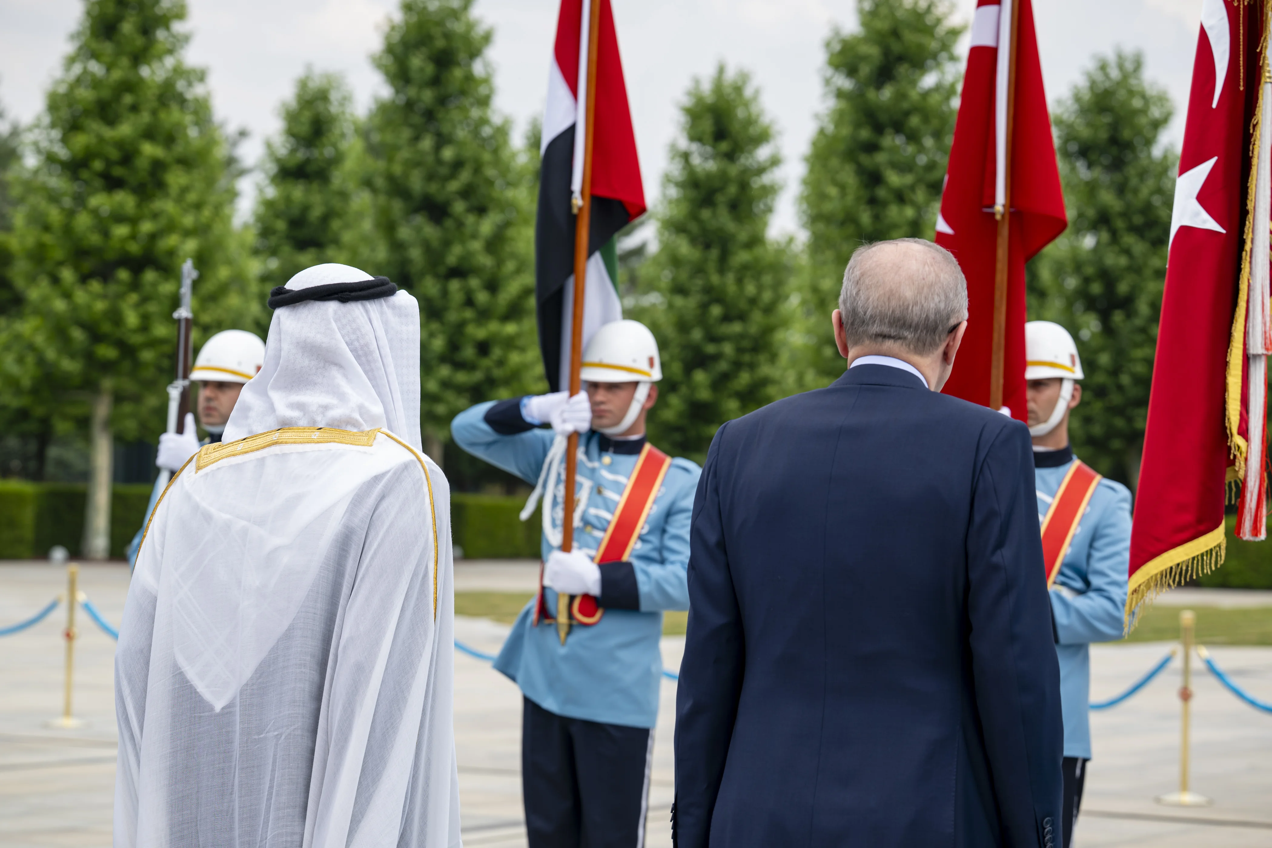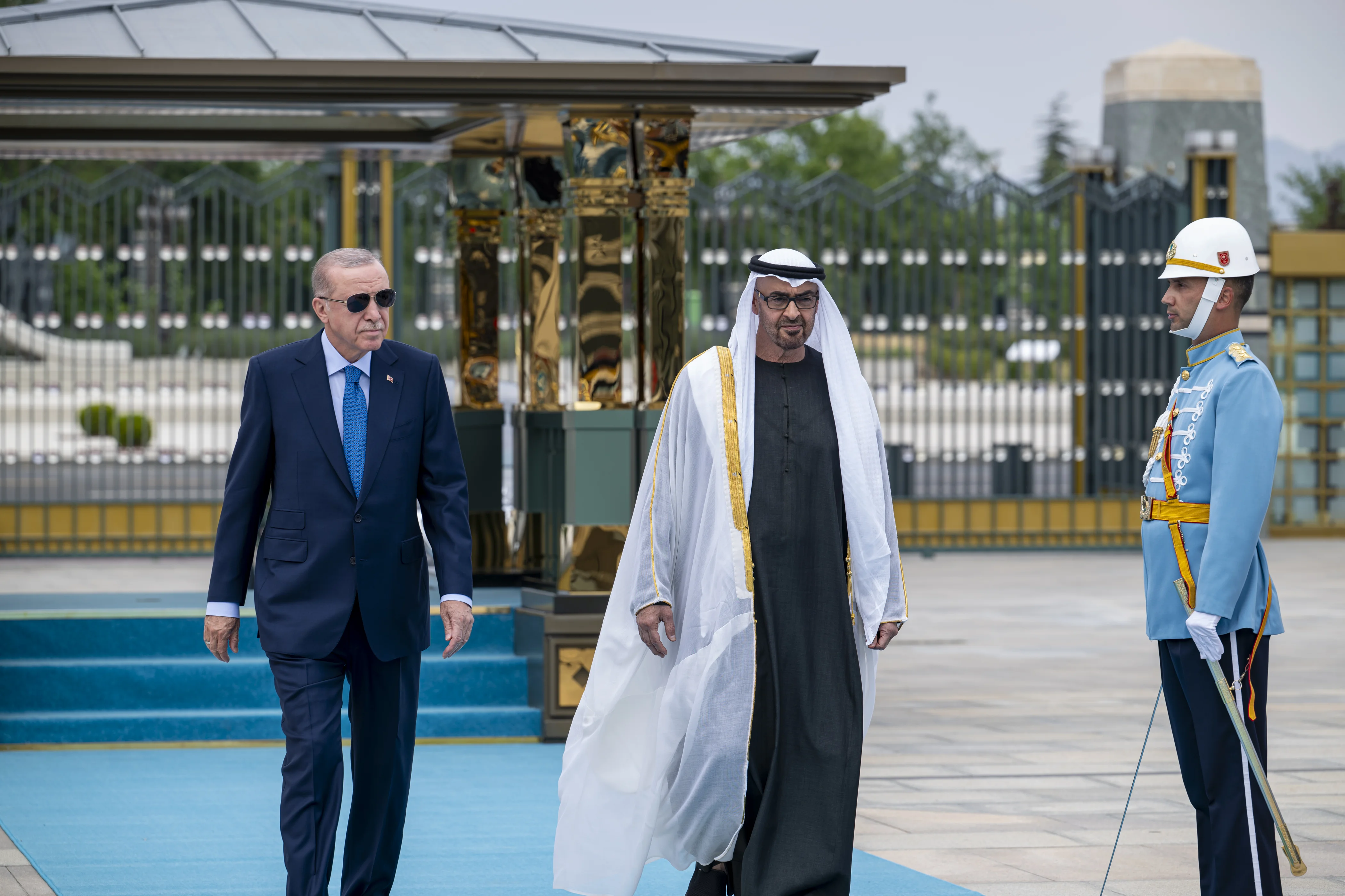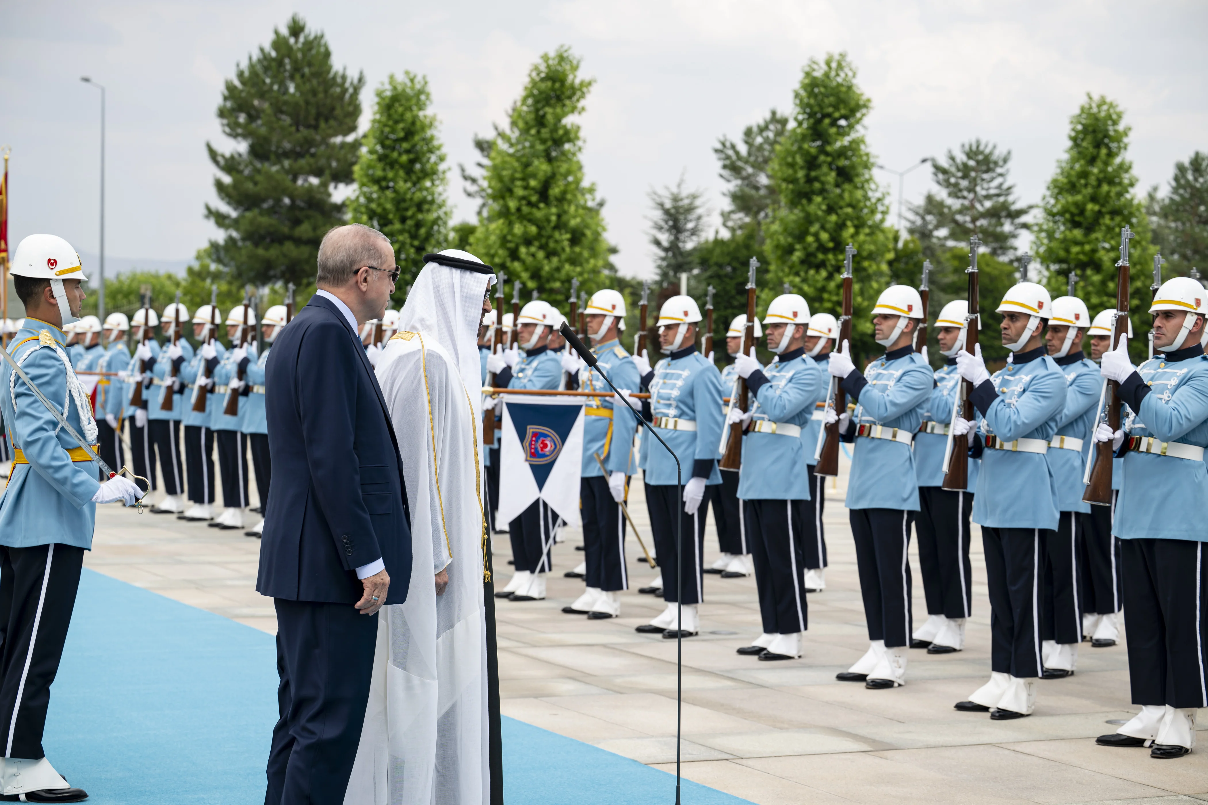 UAE President His Highness Sheikh Mohamed bin Zayed Al Nahyan arrived at the Presidential Palace in Ankara as part of his state visit to the Republic of Türkiye.