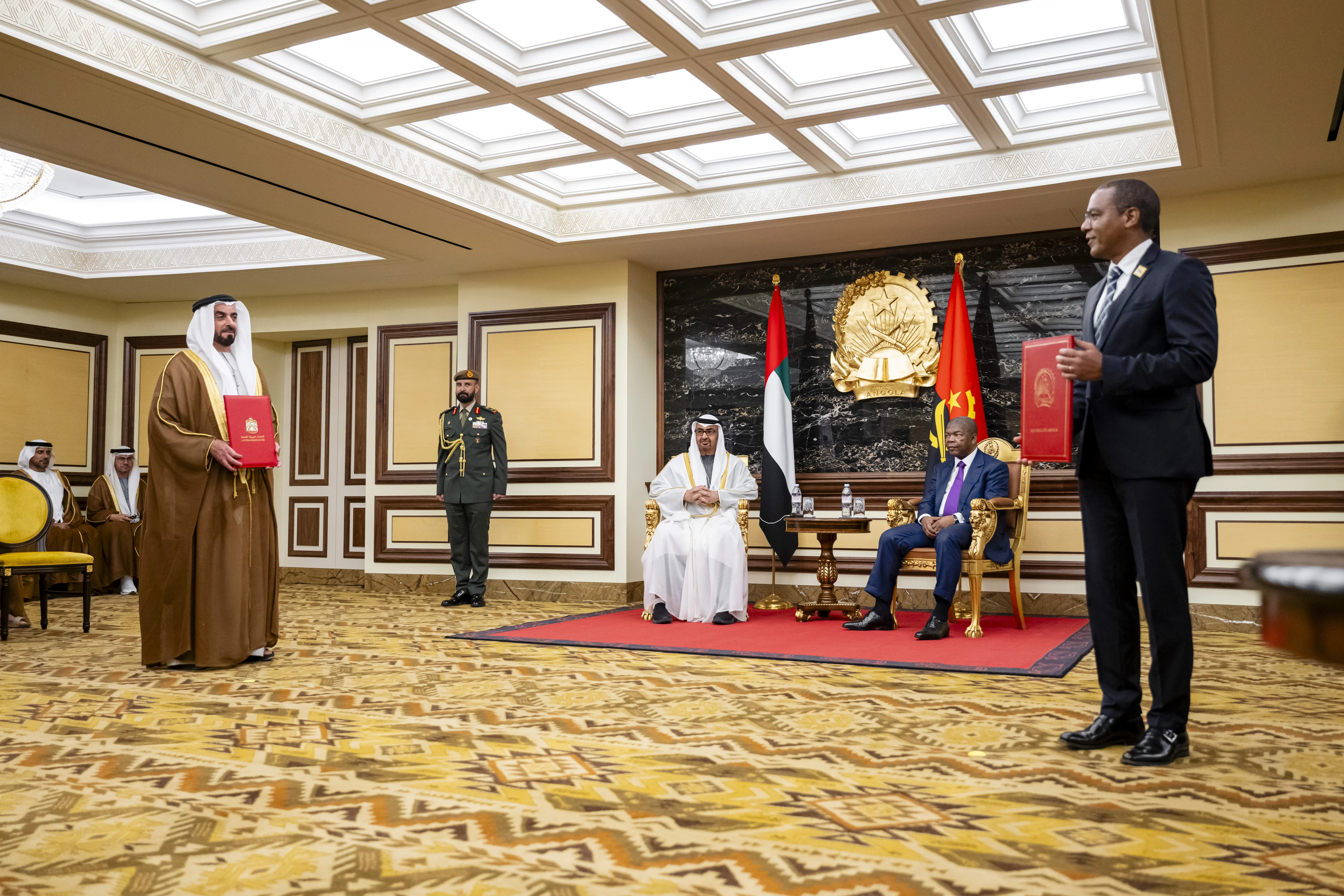 His Highness Sheikh Mohamed bin Zayed and His Excellency João Lourenço also witnessed the exchange of several memoranda of understanding between the UAE and Angola, including an MoU in the field of artificial intelligence, an MoU between the Central Bank of the UAE and the National Bank of Angola, and an MoU between Al Dahra and the Angolan Ministry of Agriculture and Forestry.