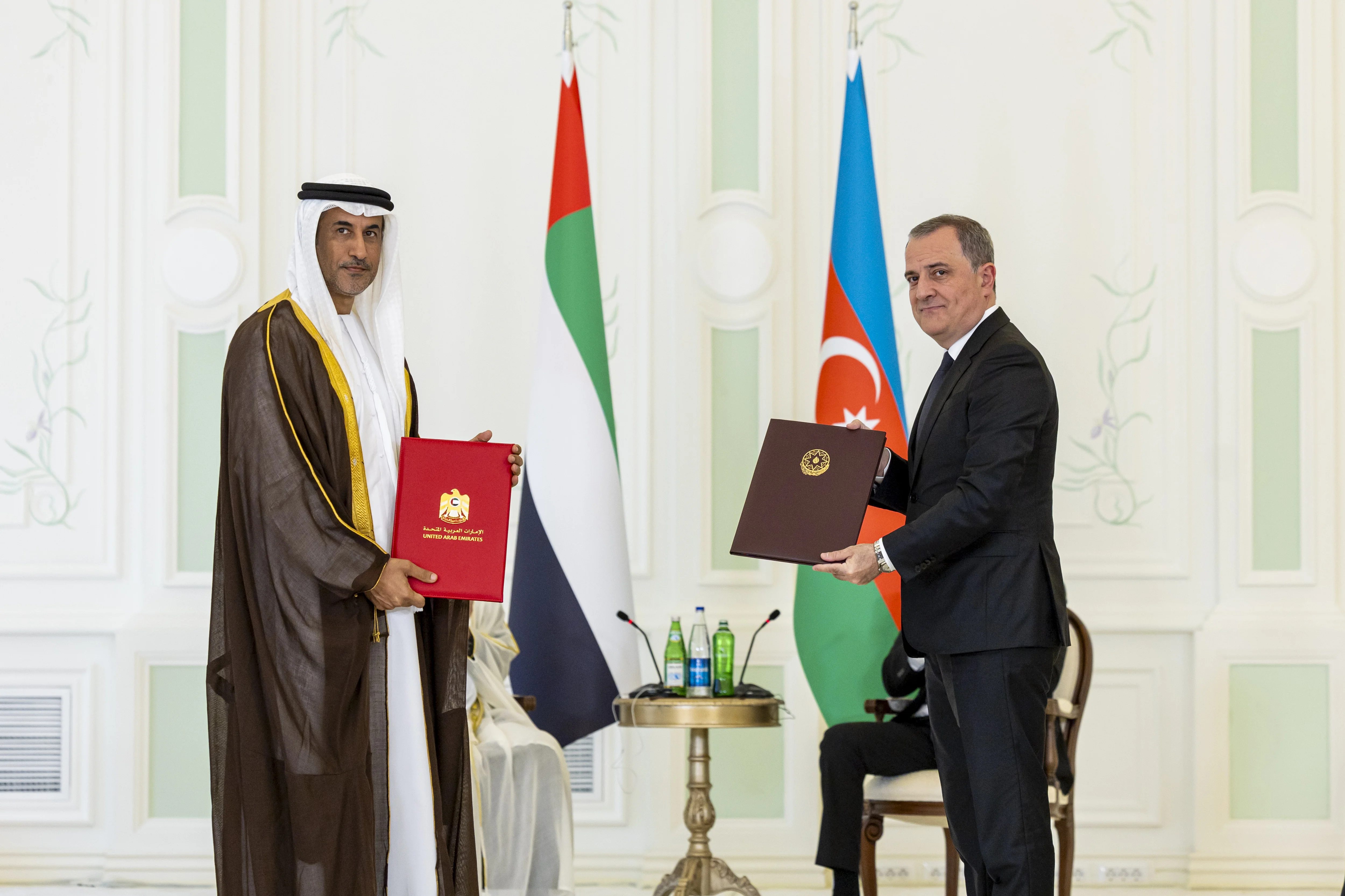 The MoUs were exchanged by His Excellency Saeed Mubarak Al Hajeri, Minister of State, on behalf of the UAE, and His Excellency Jeyhun Bayramov, Minister of Foreign Affairs, on behalf of Azerbaijan, in the presence of members of the delegation accompanying His Highness the UAE President, alongside ministers and senior Azerbaijani officials.
