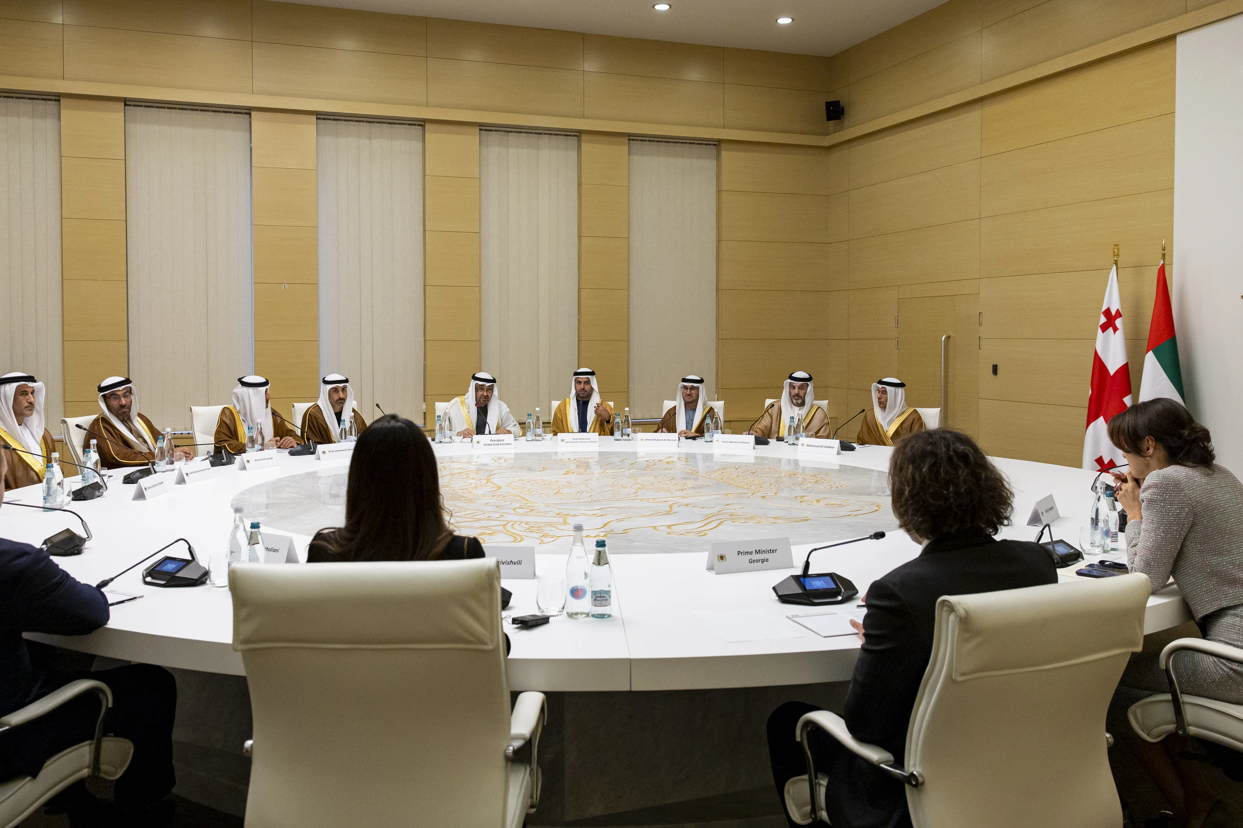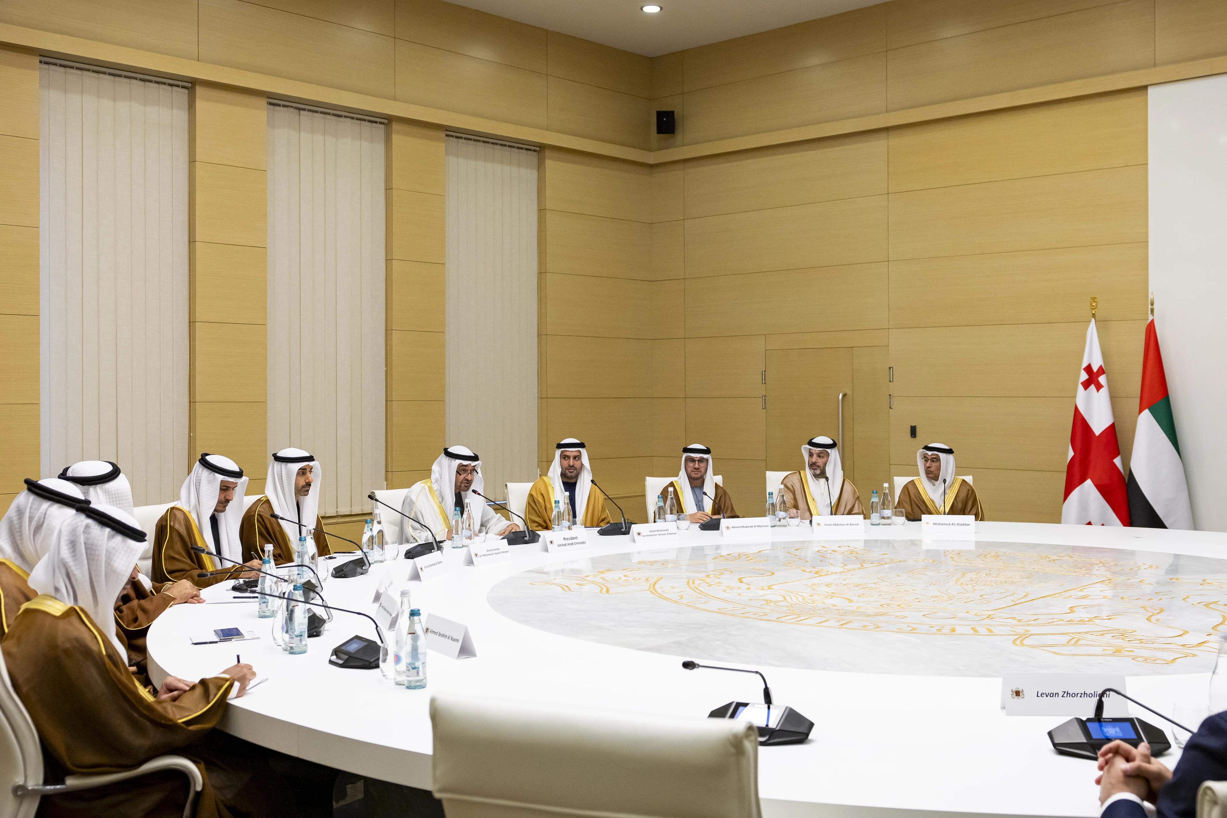 The talks were attended by H.H. Sheikh Hamdan bin Mohamed bin Zayed Al Nahyan, Deputy Chairman of the Presidential Court for Special Affairs; Sheikh Mohamed bin Hamad bin Tahnoon Al Nahyan, Advisor to the UAE President; several UAE ministers and senior officials, along a number of Georgian ministers and senior officials.