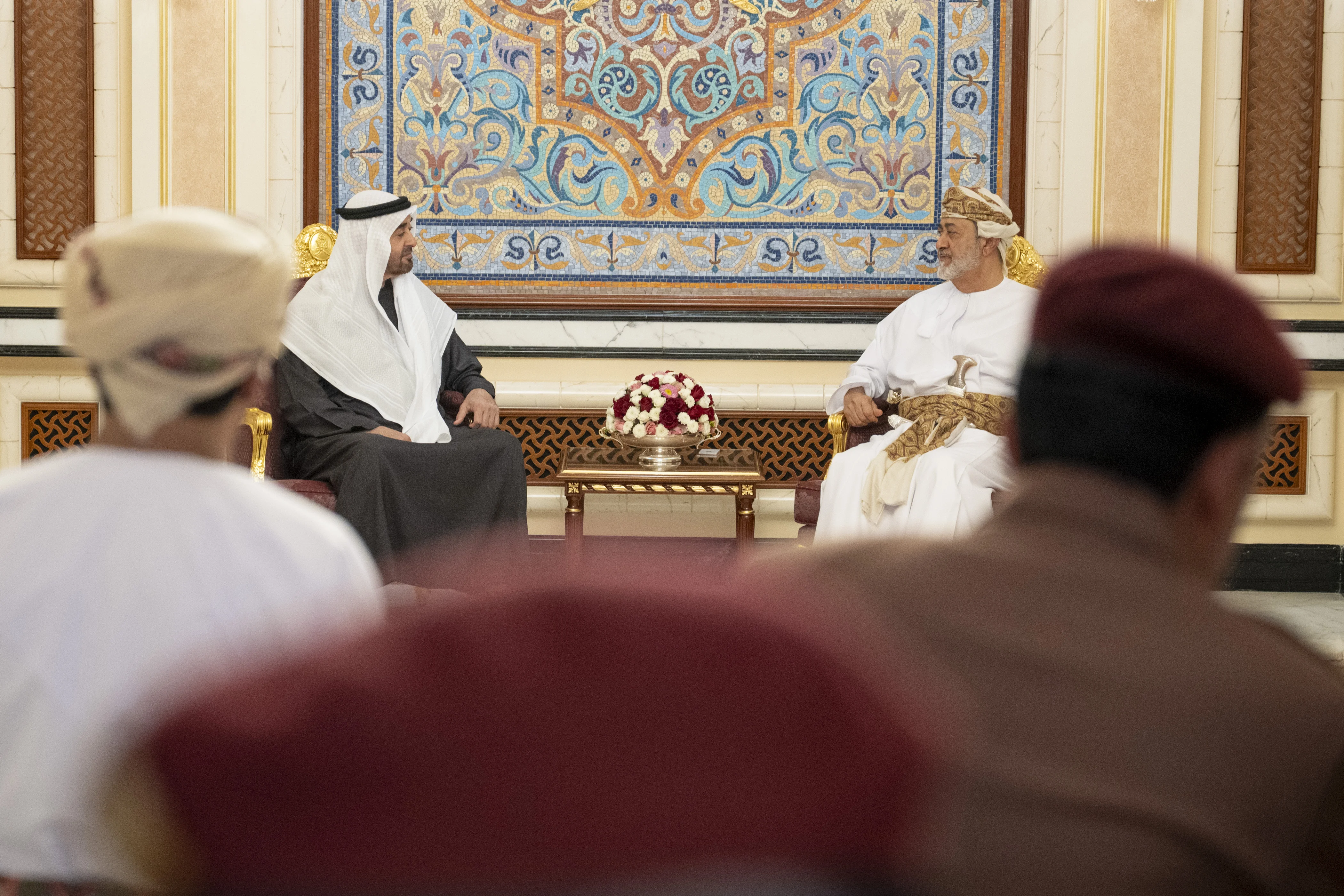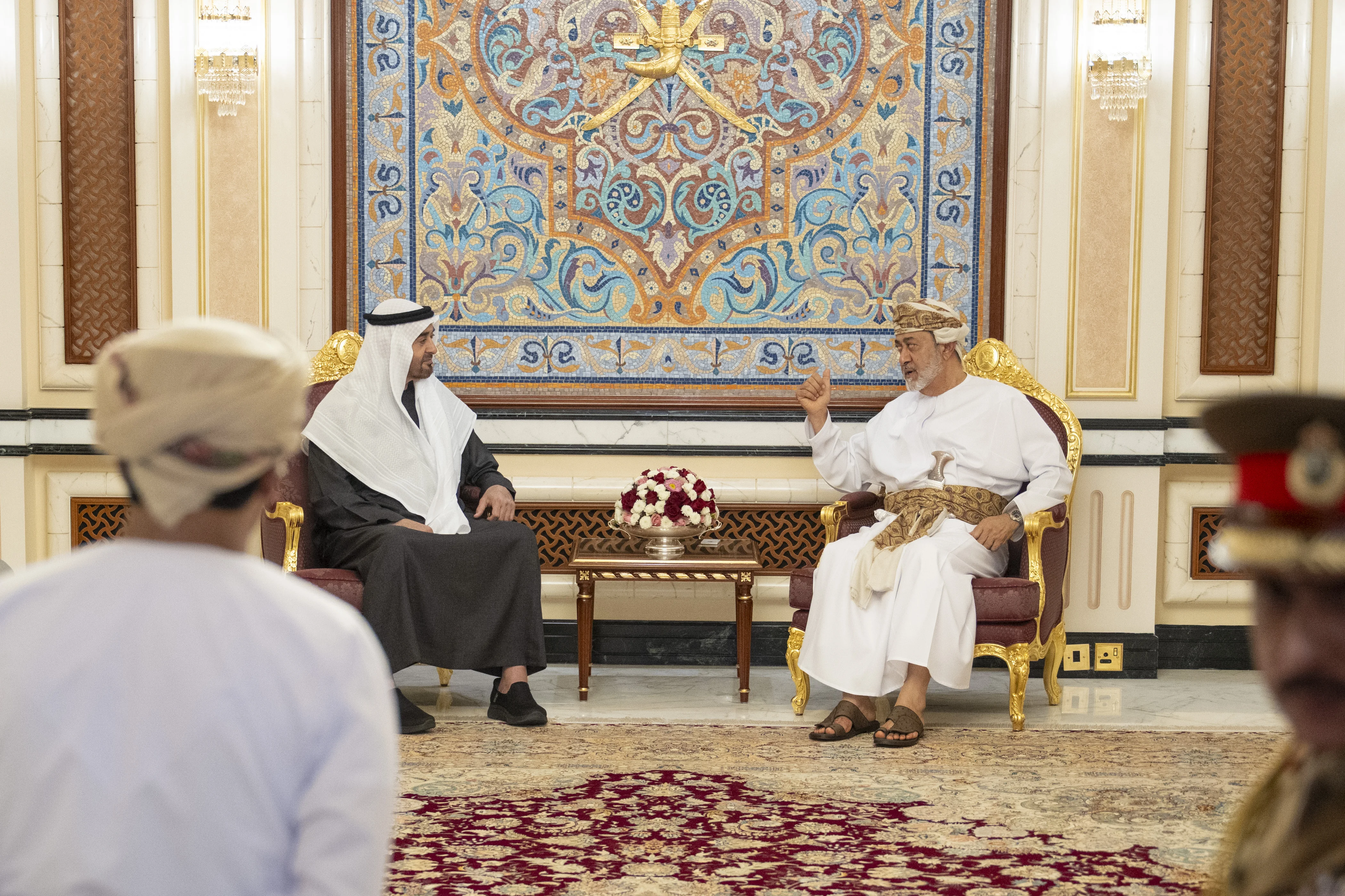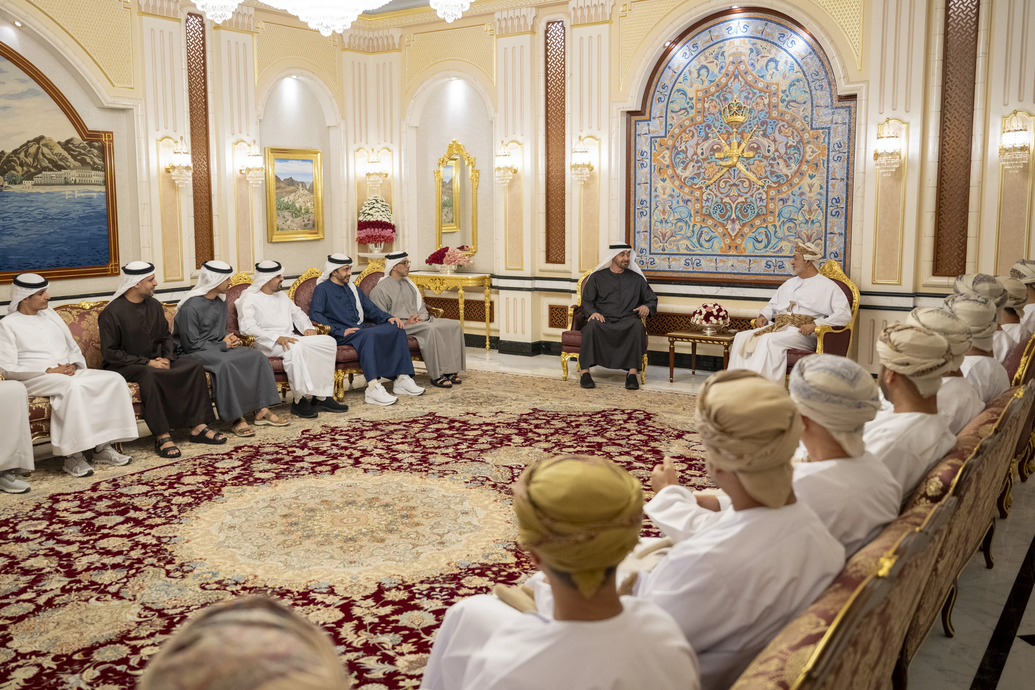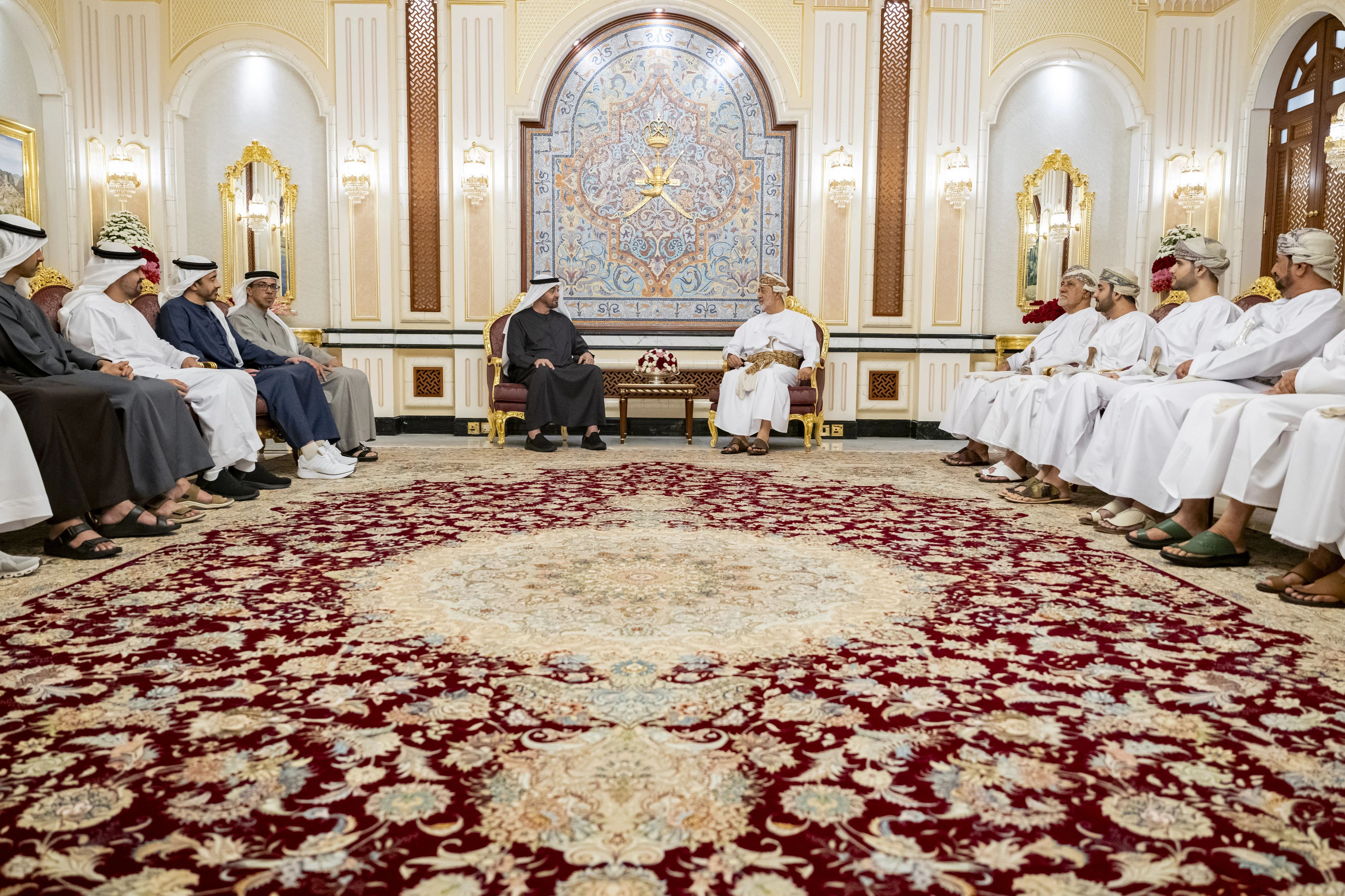 During their meeting at Al Hosn Palace in Salalah, His Majesty Sultan Haitham bin Tariq welcomed His Highness Sheikh Mohamed bin Zayed Al Nahyan. The two leaders exchanged warm and cordial remarks that reflected the depth of the historic ties and enduring bonds between their countries and peoples.