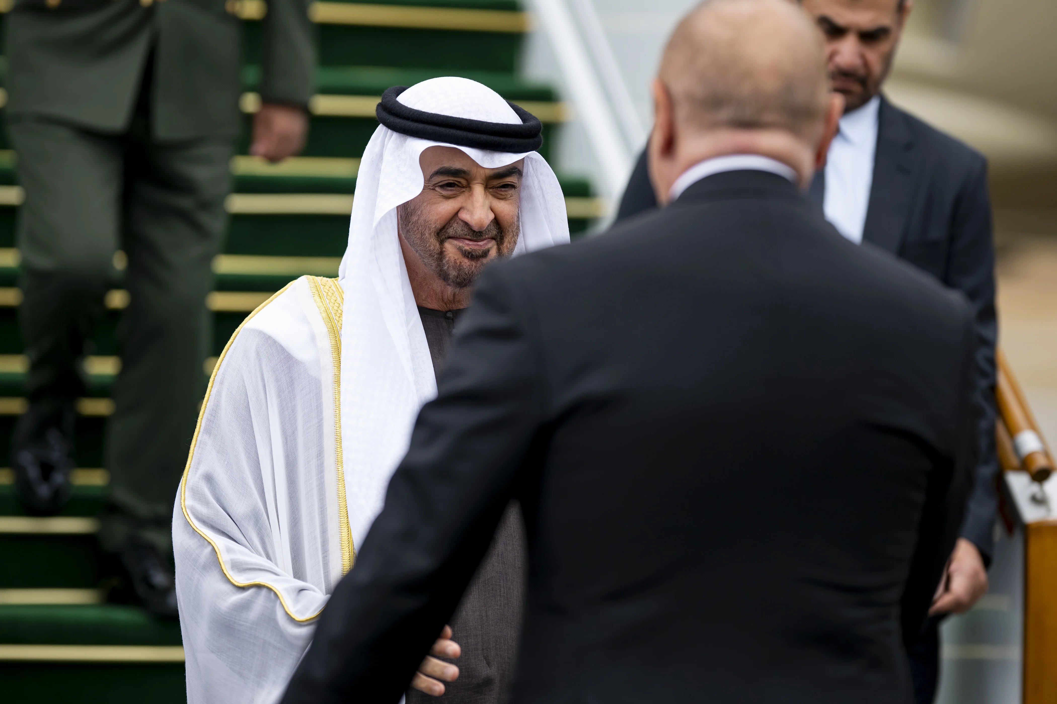 His Highness is accompanied on the visit by a delegation that includes H.H. Sheikh Hamdan bin Mohamed bin Zayed Al Nahyan, Deputy Chairman of the Presidential Court for Special Affairs, Sheikh Mohammed bin Hamad bin Tahnoun Al Nahyan, Adviser to the UAE President, along with a number of ministers and senior officials.