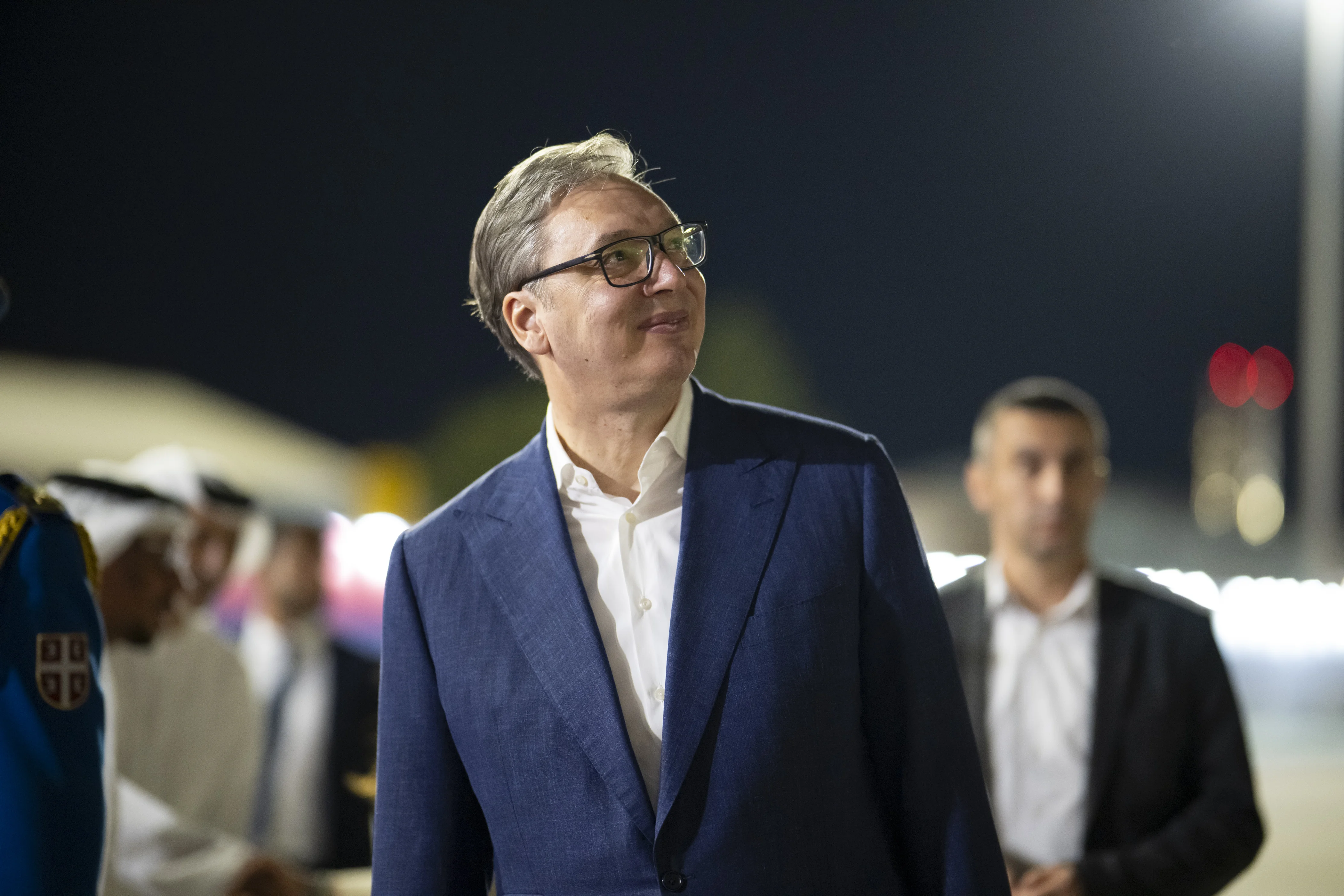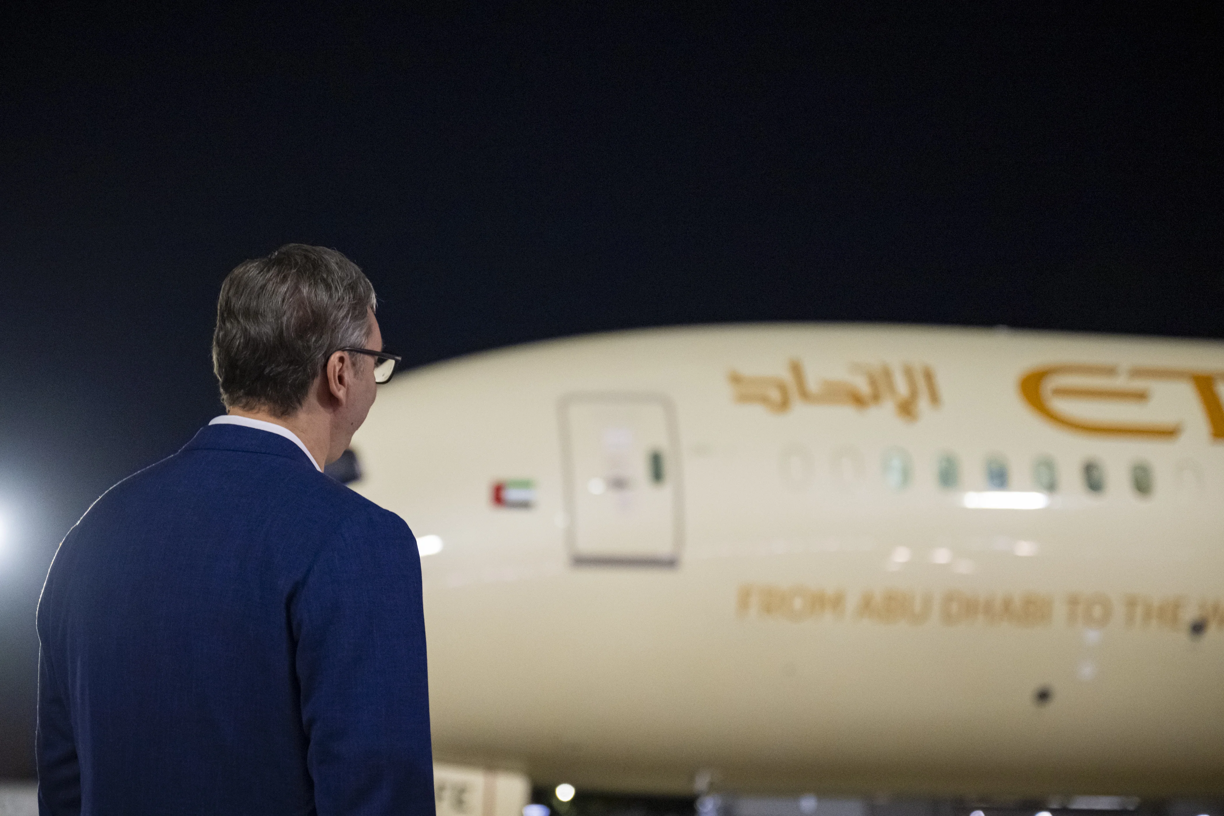 His Excellency Aleksandar Vučić, President of Serbia, welcomed His Highness and the accompanying delegation upon their arrival at Belgrade Nikola Tesla Airport.