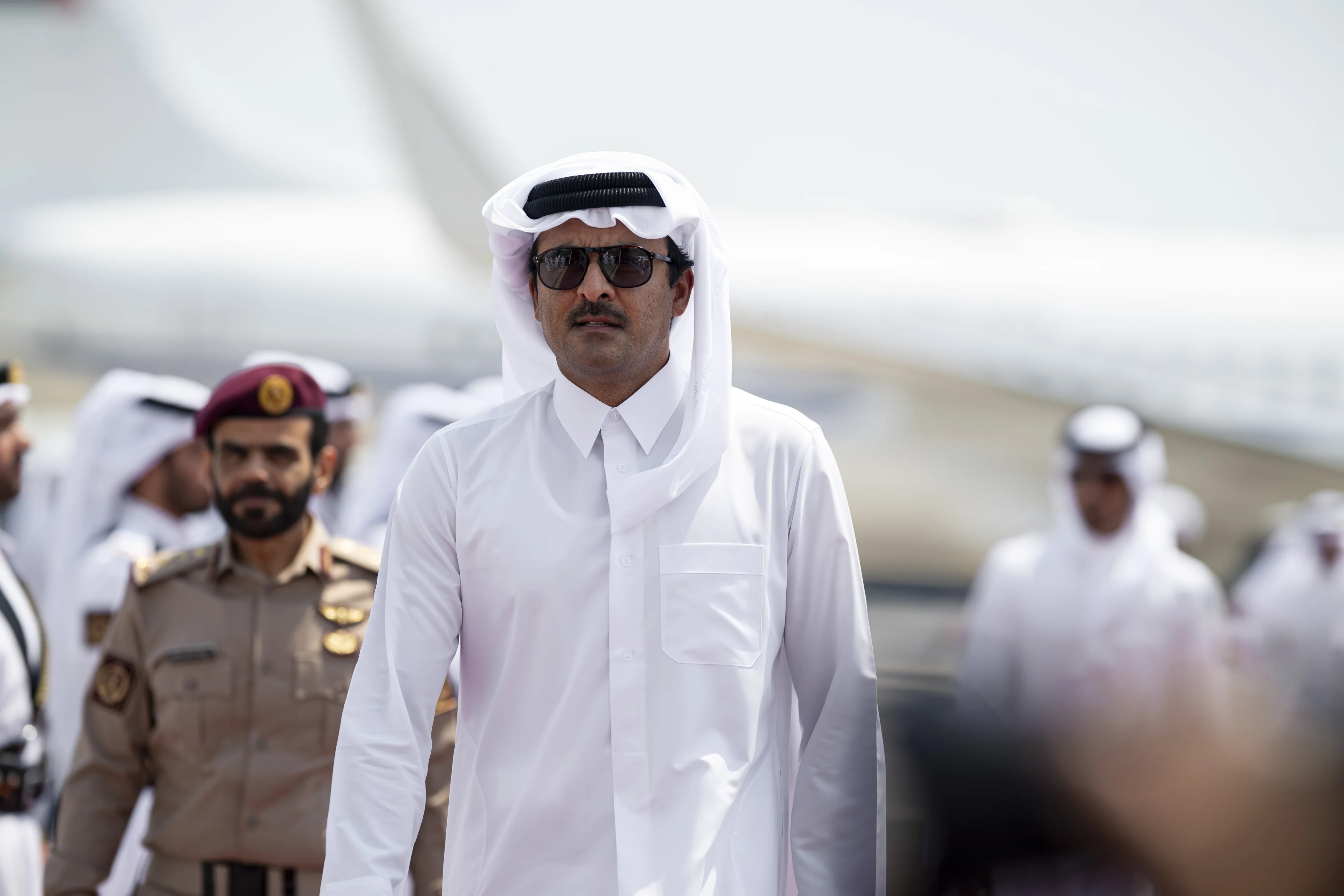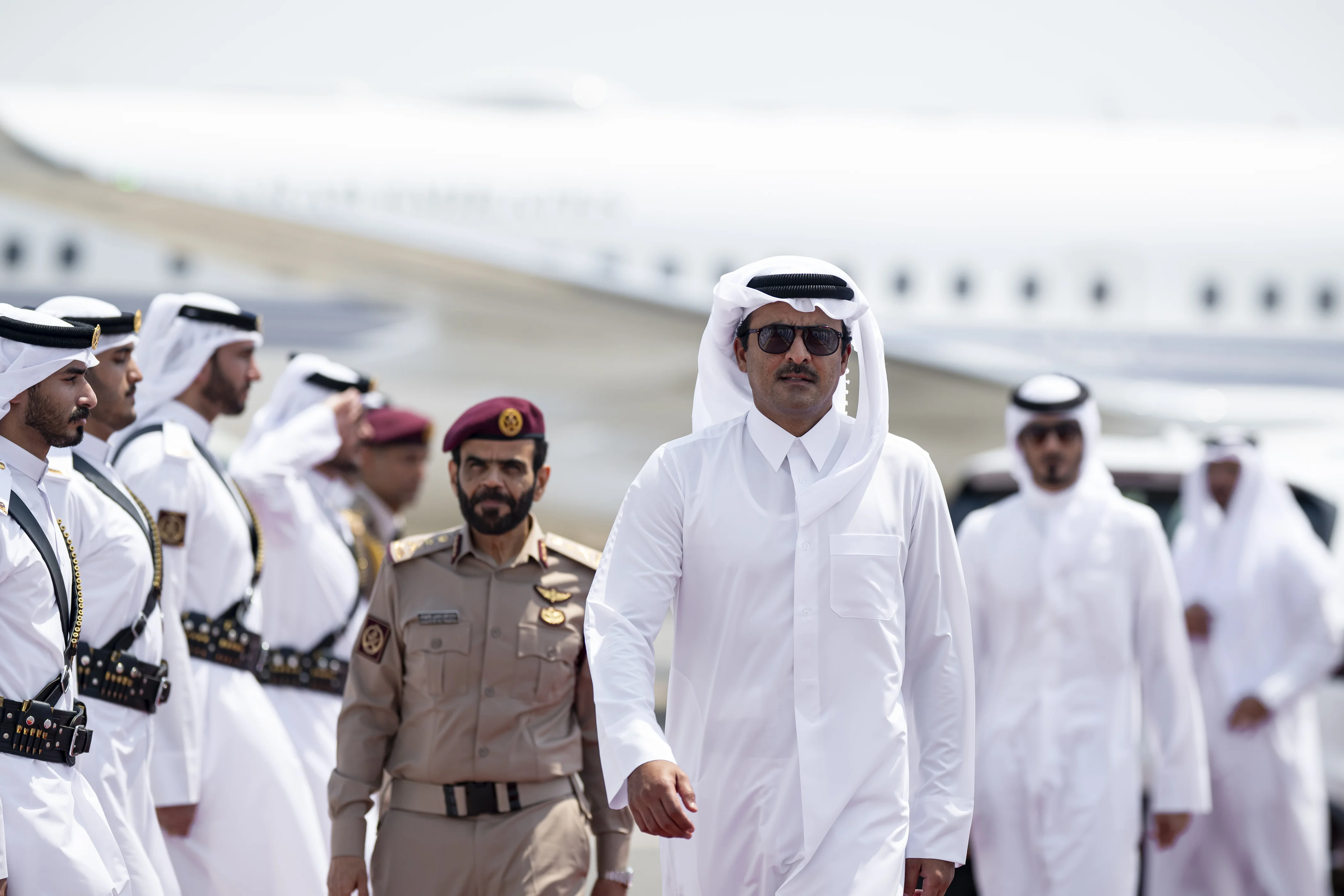 His Highness Sheikh Tamim bin Hamad Al Thani, Emir of the State of Qatar, welcomed His Highness and his accompanying delegation on their arrival at Hamad International Airport.