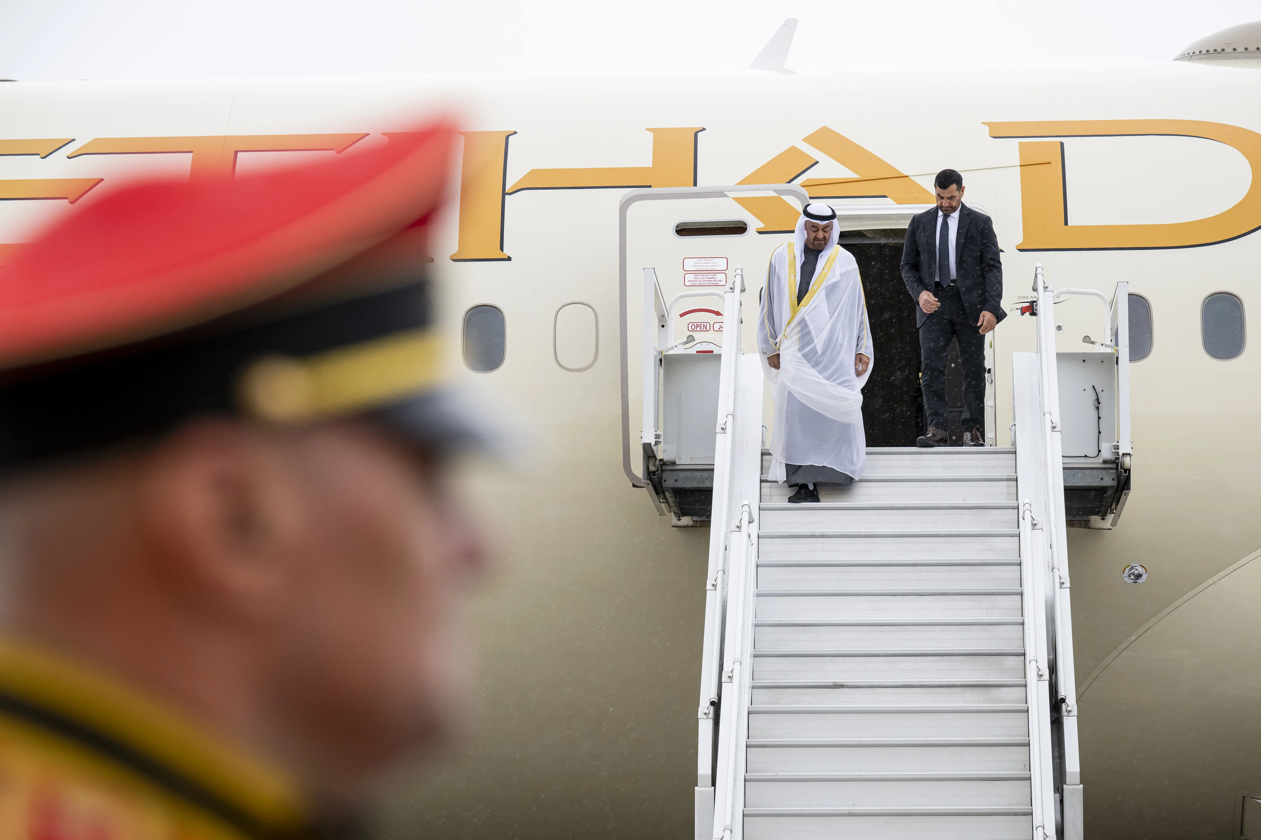 Accompanying His Highness is a delegation including H.H. Sheikh Hamdan bin Mohamed bin Zayed Al Nahyan, Deputy Chairman of the Presidential Court for Special Affairs; His Excellency Sheikh Mohamed bin Hamad bin Tahnoon Al Nahyan, Advisor to the UAE President; and a number of ministers and senior officials.