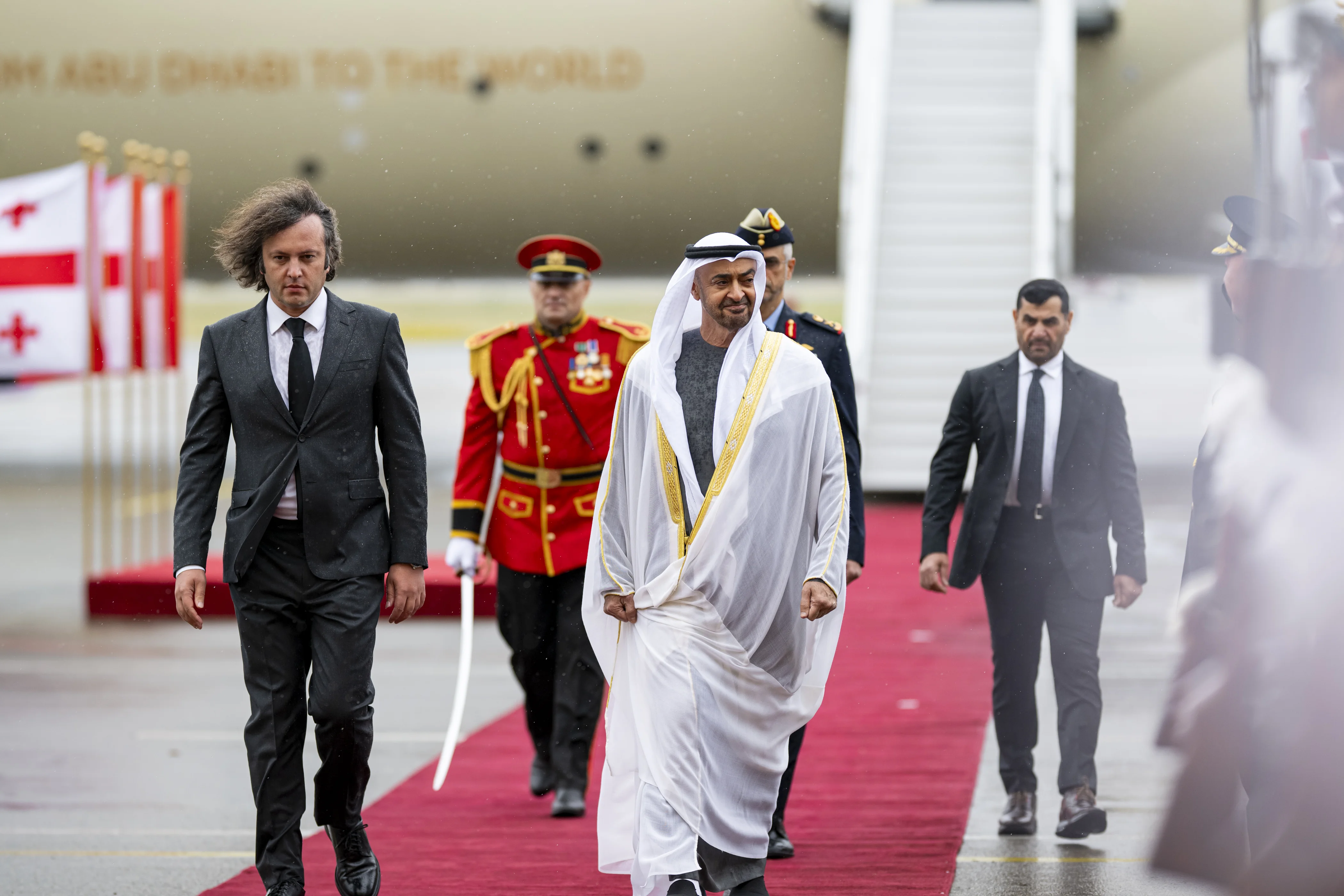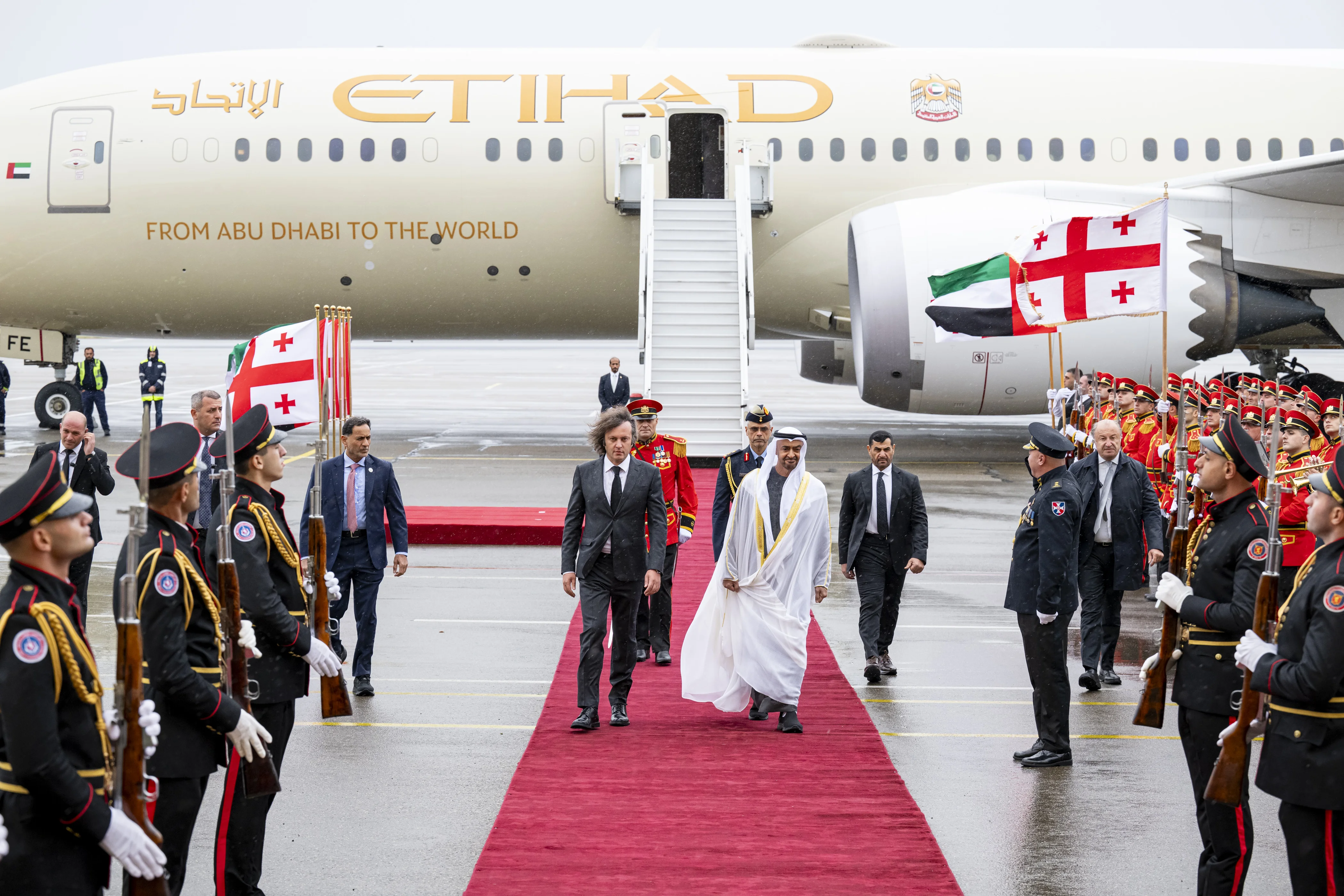 An official welcome ceremony was held at the airport, during which the national anthems of the UAE and Georgia were played.