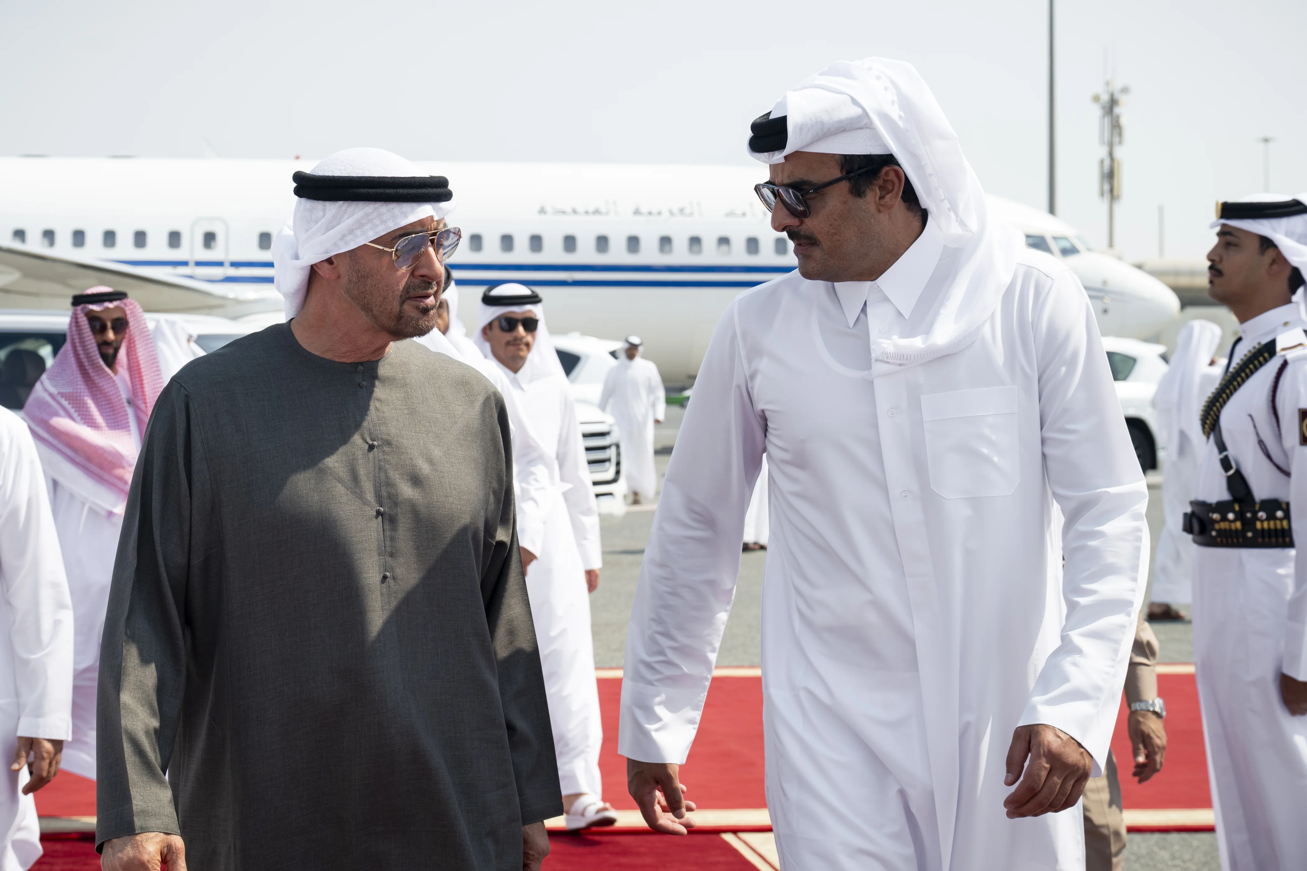 At the conclusion of the visit, His Highness Sheikh Mohamed bin Zayed departed from Hamad International Airport, where he was bid farewell by His Highness Sheikh Tamim bin Hamad Al Thani and a number of sheikhs and senior officials.