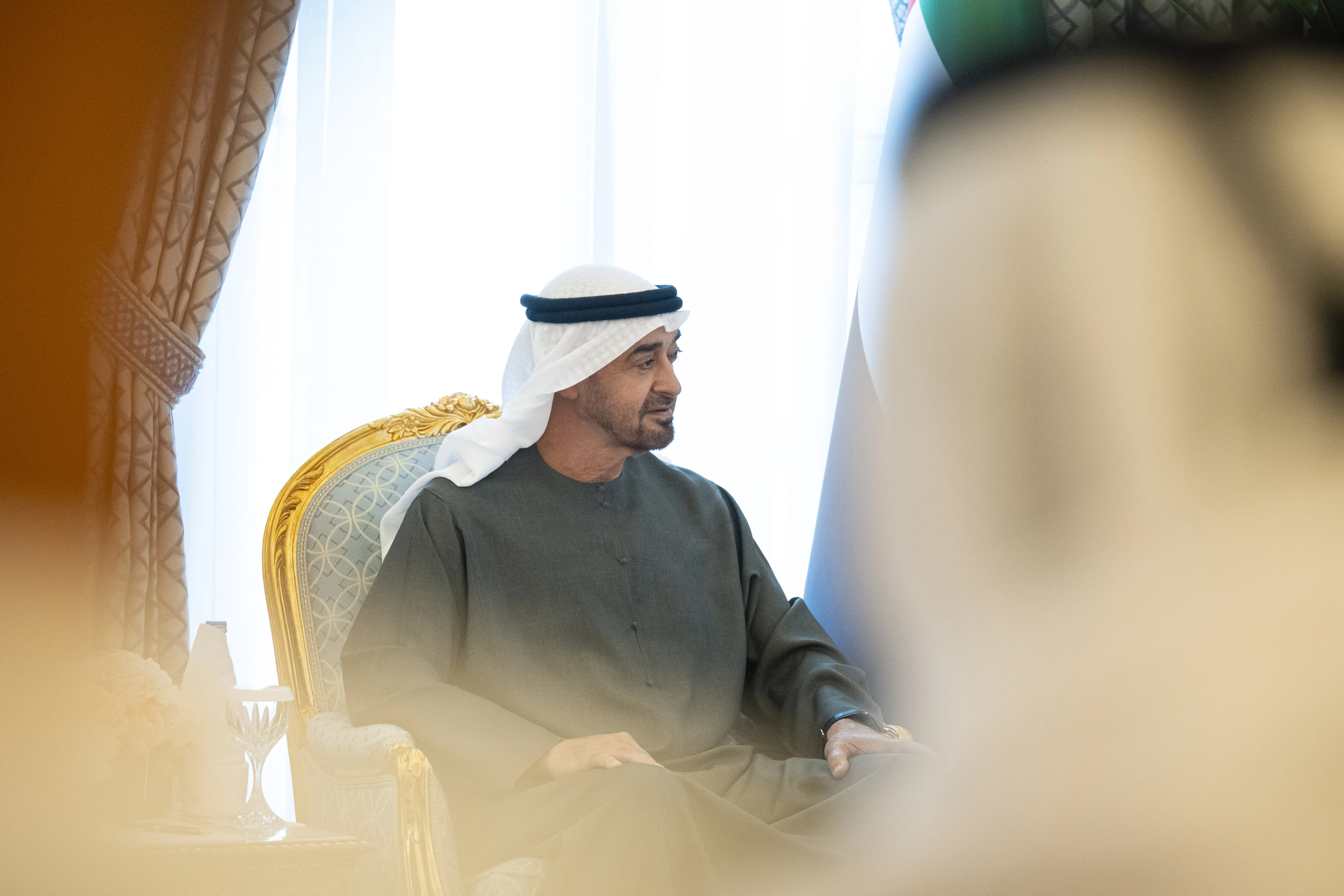 The UAE President was accompanied by a delegation that included H.H. Sheikh Hamdan bin Mohammed bin Rashid Al Maktoum, Crown Prince of Dubai, Deputy Prime Minister, Minister of Defence; H.H. Sheikh Tahnoon bin Zayed Al Nahyan, Deputy Ruler of Abu Dhabi and National Security Adviser; H.H. Lt. General Sheikh Saif bin Zayed Al Nahyan, Deputy Prime Minister and Minister of the Interior; H.H. Sheikh Theyab bin Mohamed bin Zayed Al Nahyan, Deputy Chairman of the Presidential Court for Development and Fallen Heroes' Affairs; H.H. Sheikh Hamdan bin Mohamed bin Zayed Al Nahyan, Deputy Chairman of the Presidential Court for Special Affairs; Sheikh Mohammed bin Hamad bin Tahnoon Al Nahyan, Advisor to the UAE President; Ali bin Hammad Al Shamsi, Secretary-General of the Supreme Council for National Security; Dr. Ahmed Mubarak Ali Al Mazrouei, Chairman of the President’s Office for Strategic Affairs and Chairman of the Abu Dhabi Executive Office; Dr. Sultan bin Ahmed Al Jaber, Minister of Industry and Advanced Technology; and a number of senior officials.