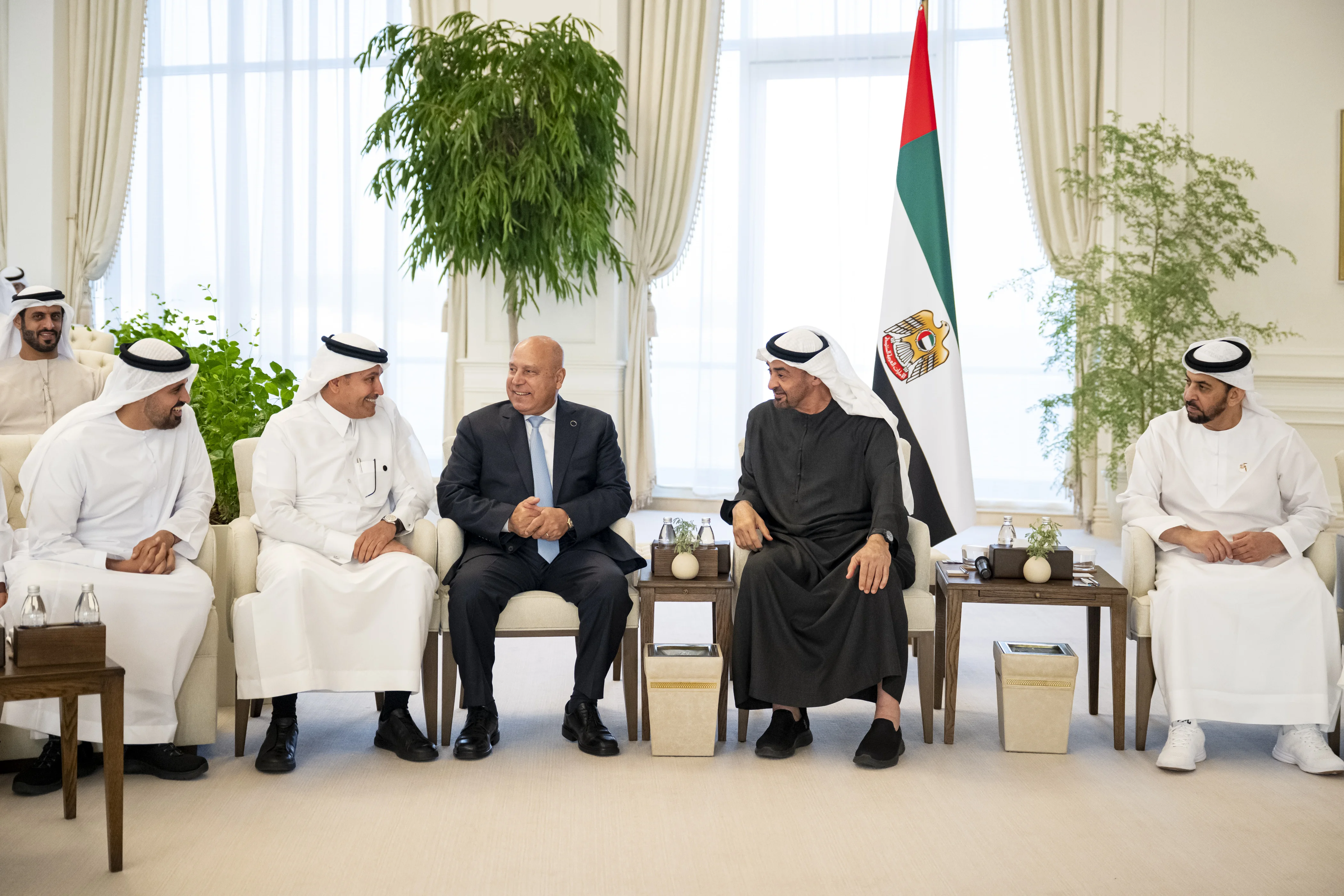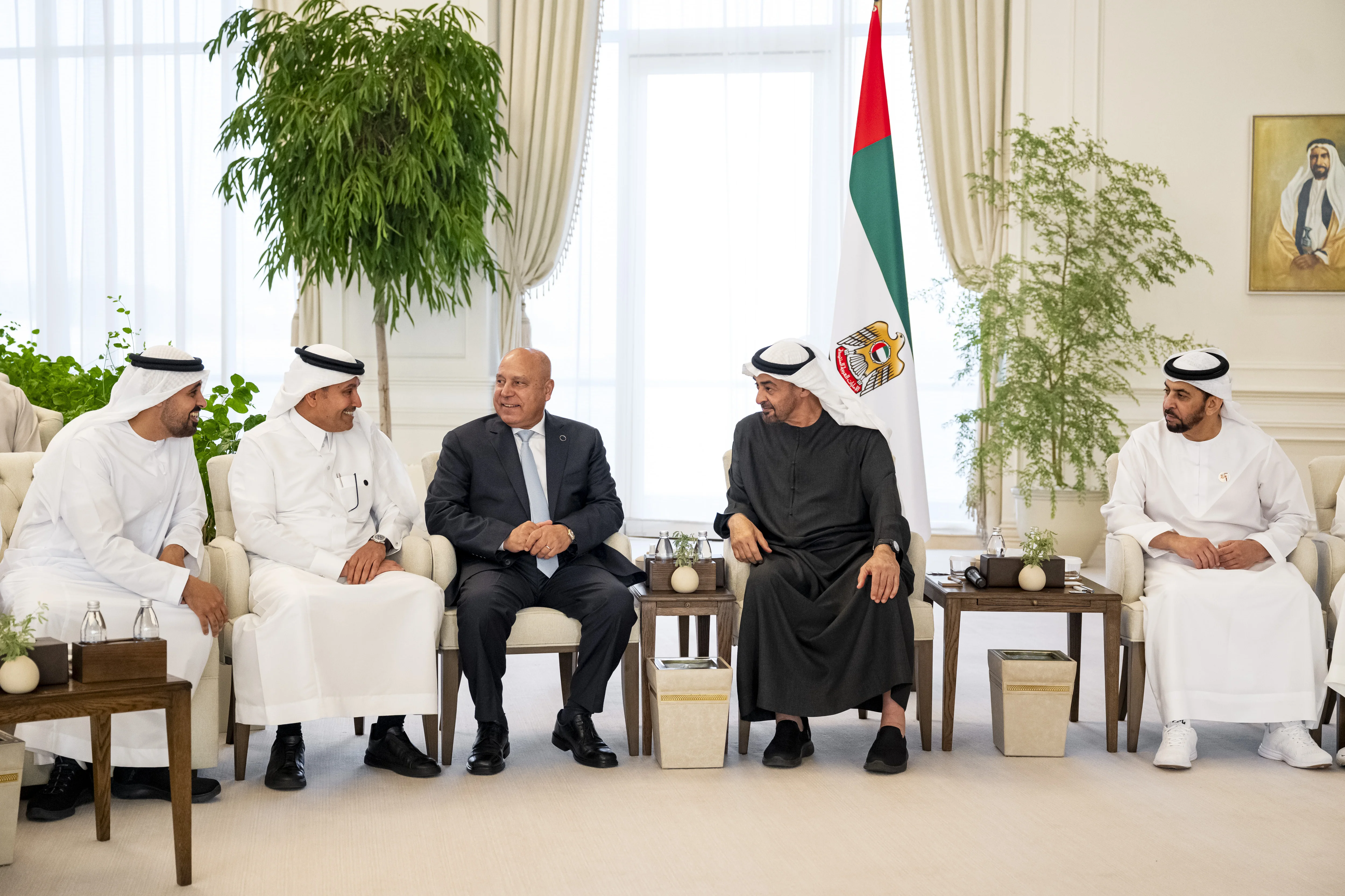President His Highness Sheikh Mohamed bin Zayed Al Nahyan today welcomed participants from the Global Rail and Transport Infrastructure Exhibition and Conference, currently taking place at ADNEC in Abu Dhabi.