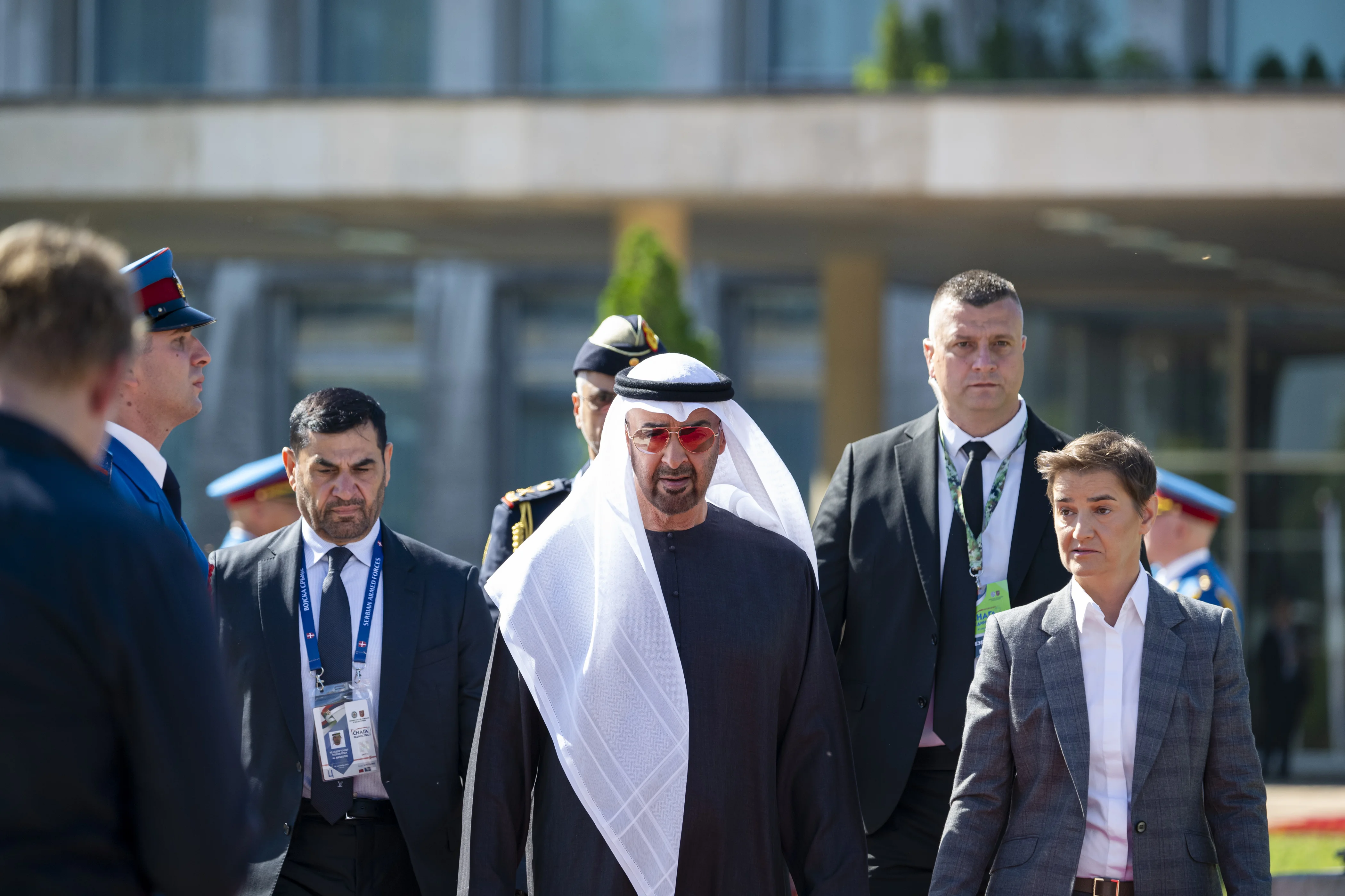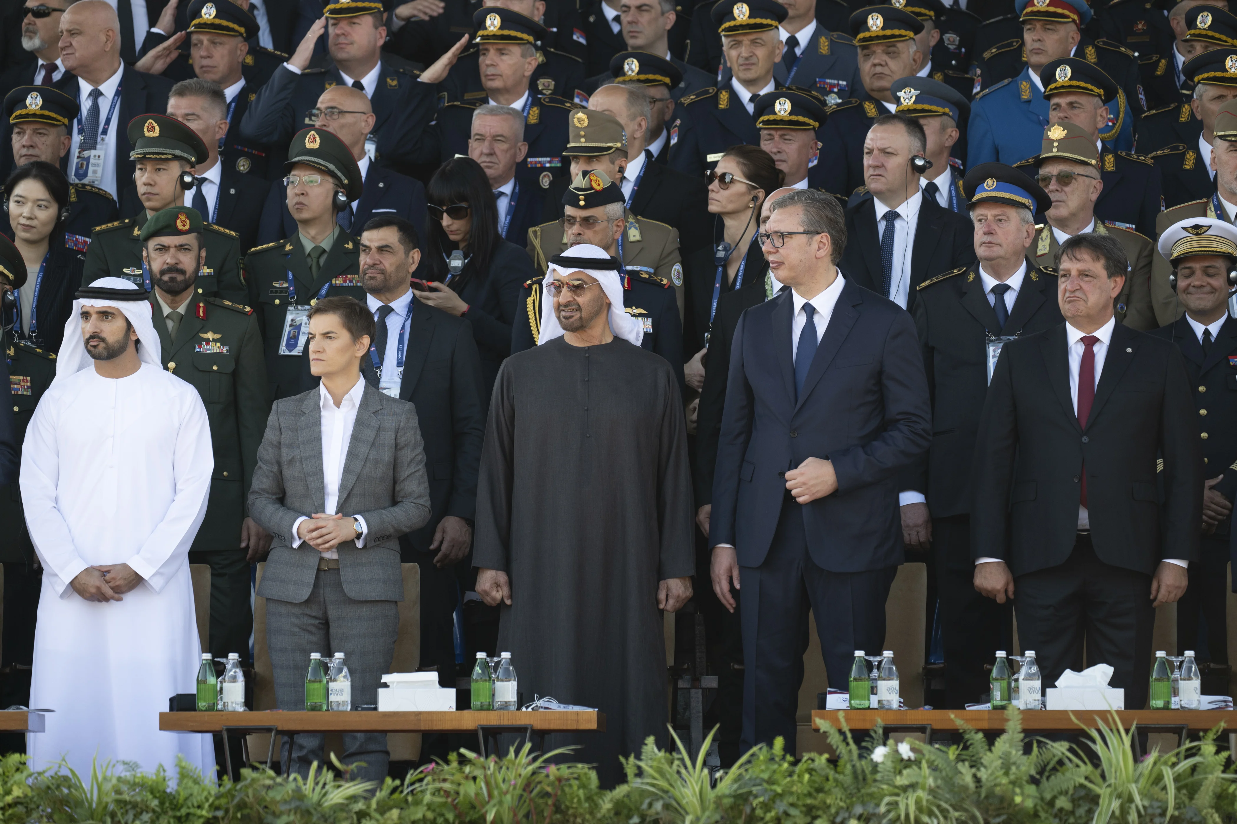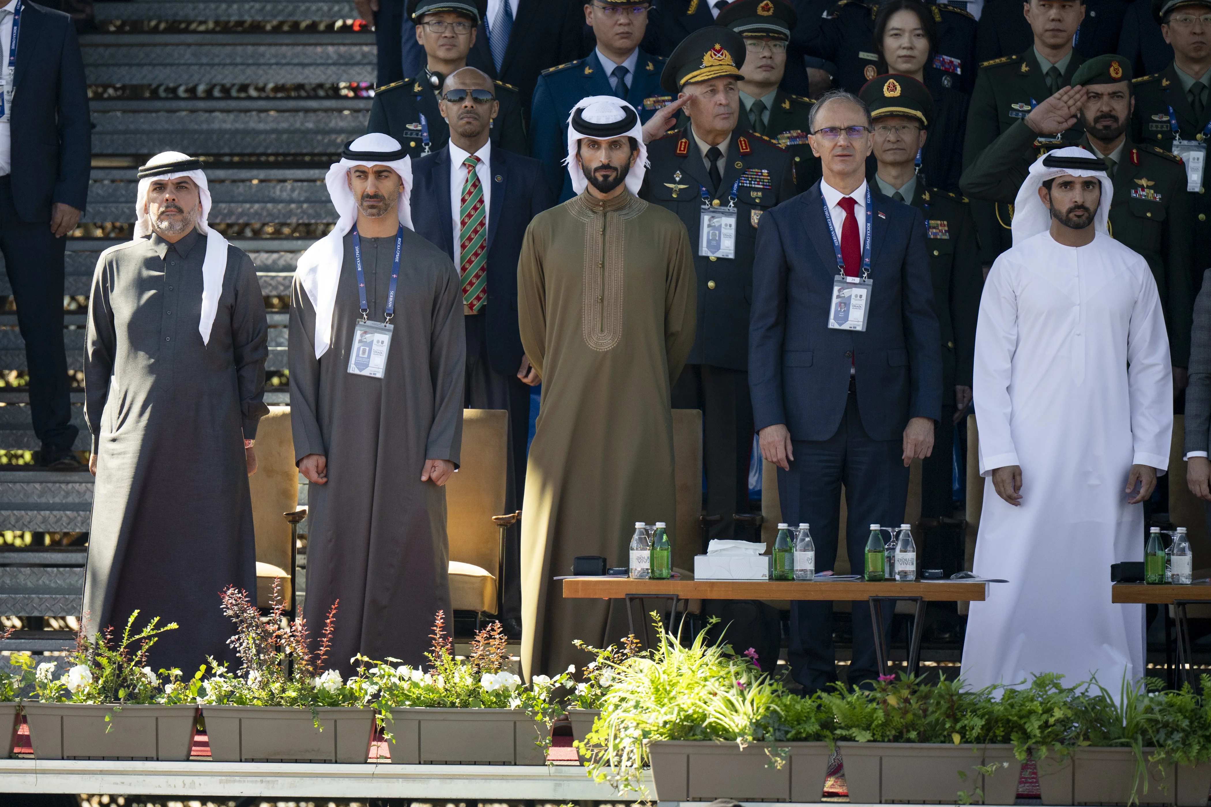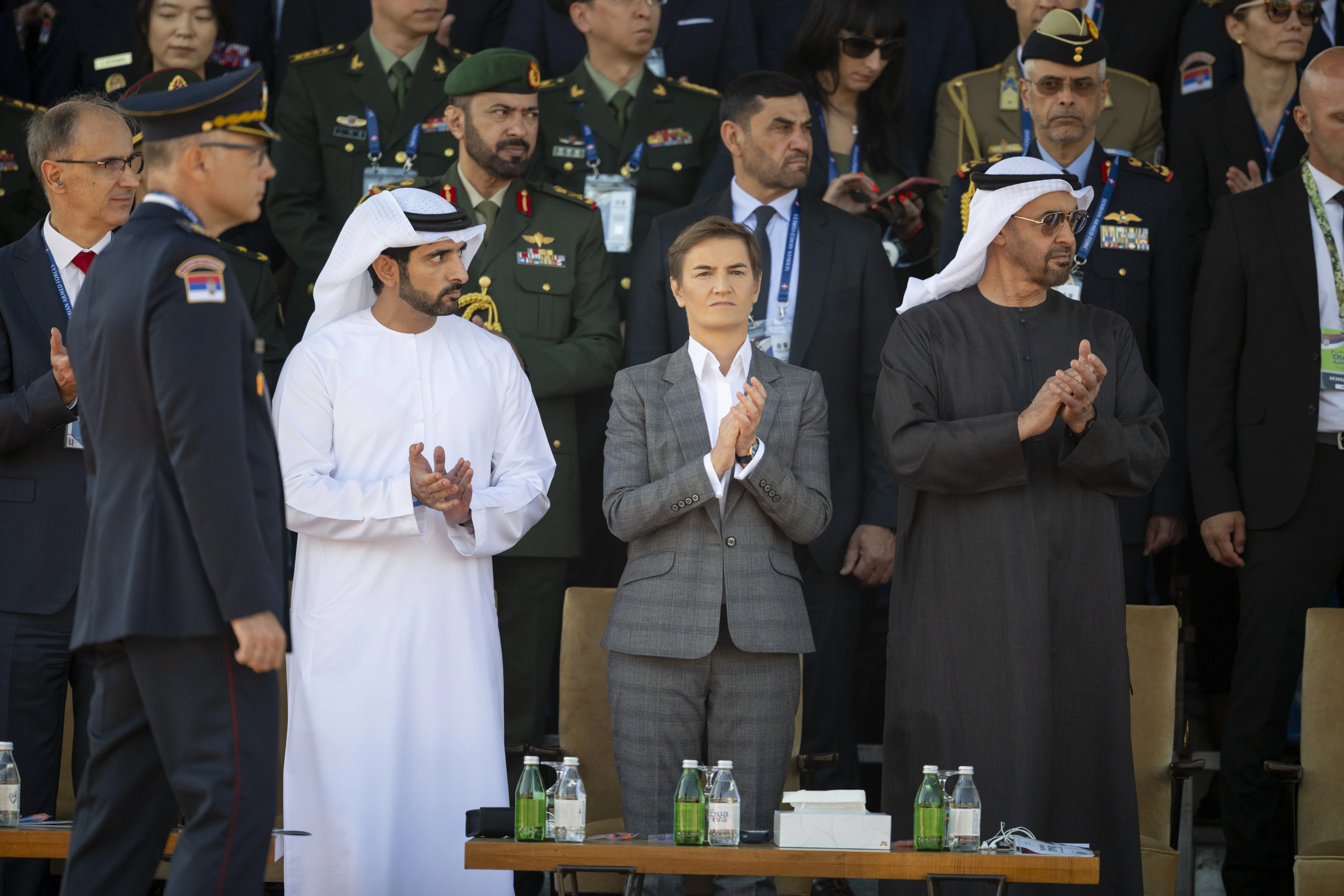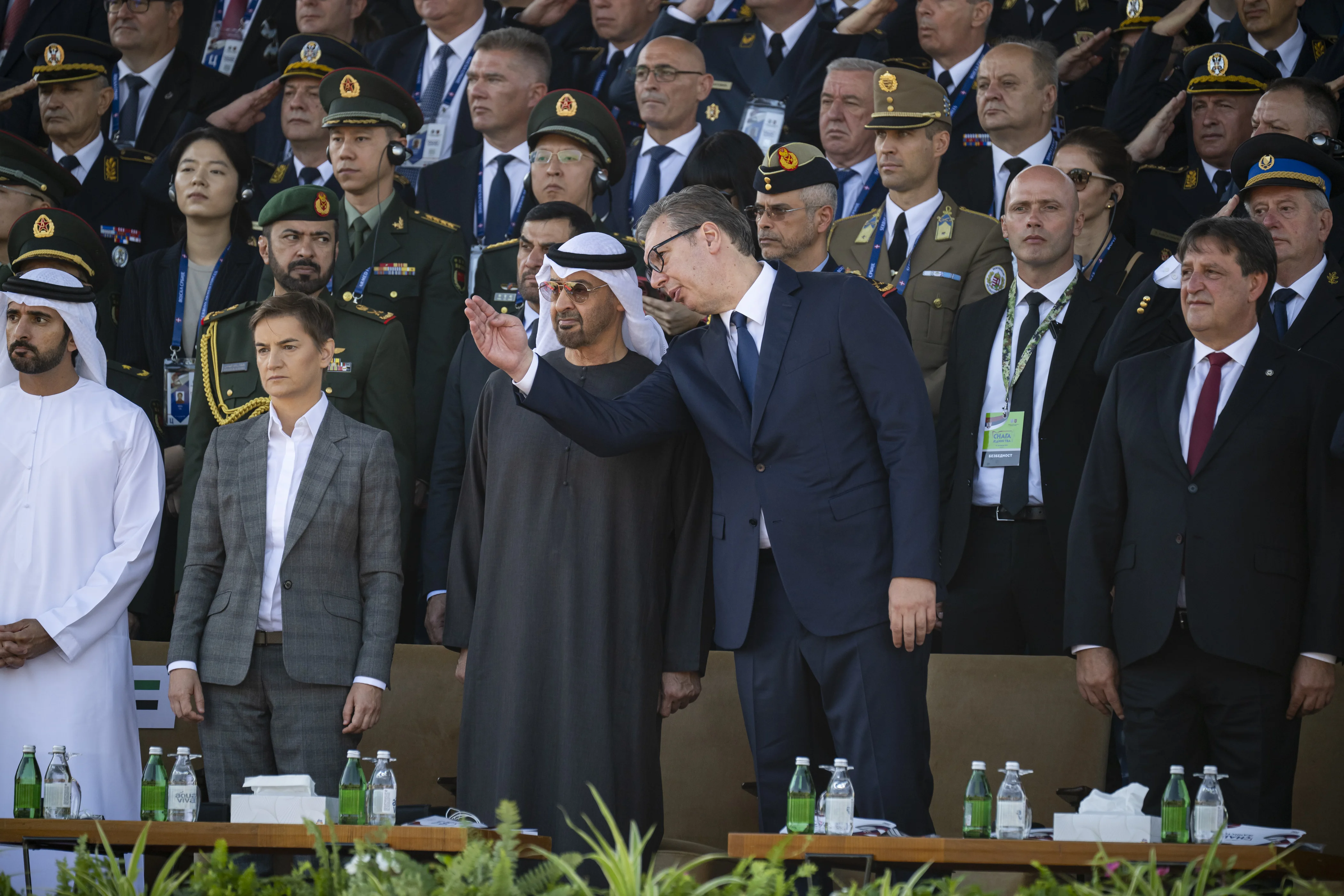 UAE President His Highness Sheikh Mohamed bin Zayed Al Nahyan and His Excellency Aleksandar Vučić, President of the Republic of Serbia, today attended a military parade held as part of celebrations marking the Day of Serbian Unity, Freedom and the National Flag. The event took place during His Highness’ working visit to Serbia.