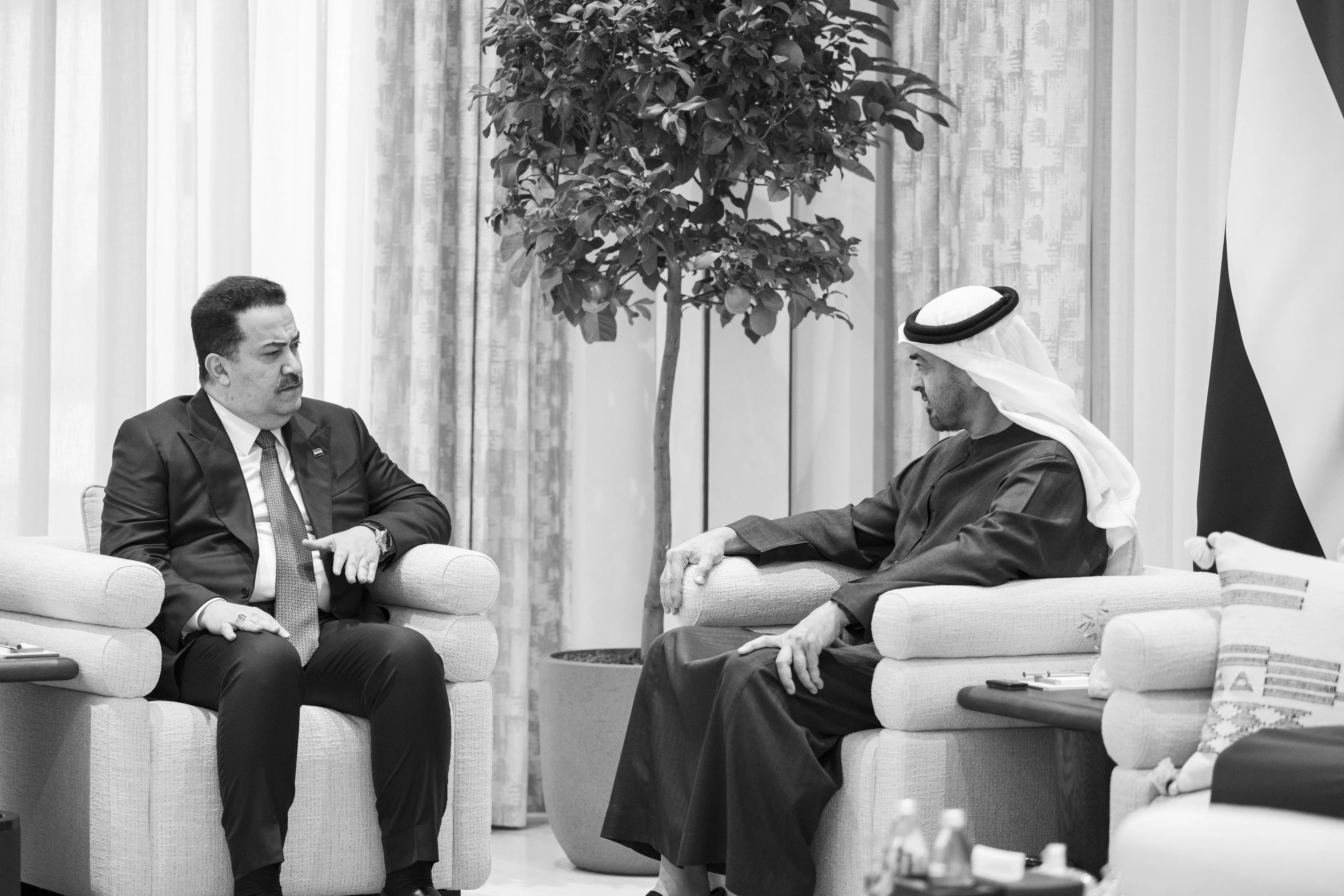 Upon his arrival at Abu Dhabi’s Presidential Flight earlier in the day, His Excellency Mohammed Shia' Al Sudani was welcomed by H.H. Sheikh Khaled bin Mohamed bin Zayed Al Nahyan, Crown Prince of Abu Dhabi, along with several ministers and senior officials.