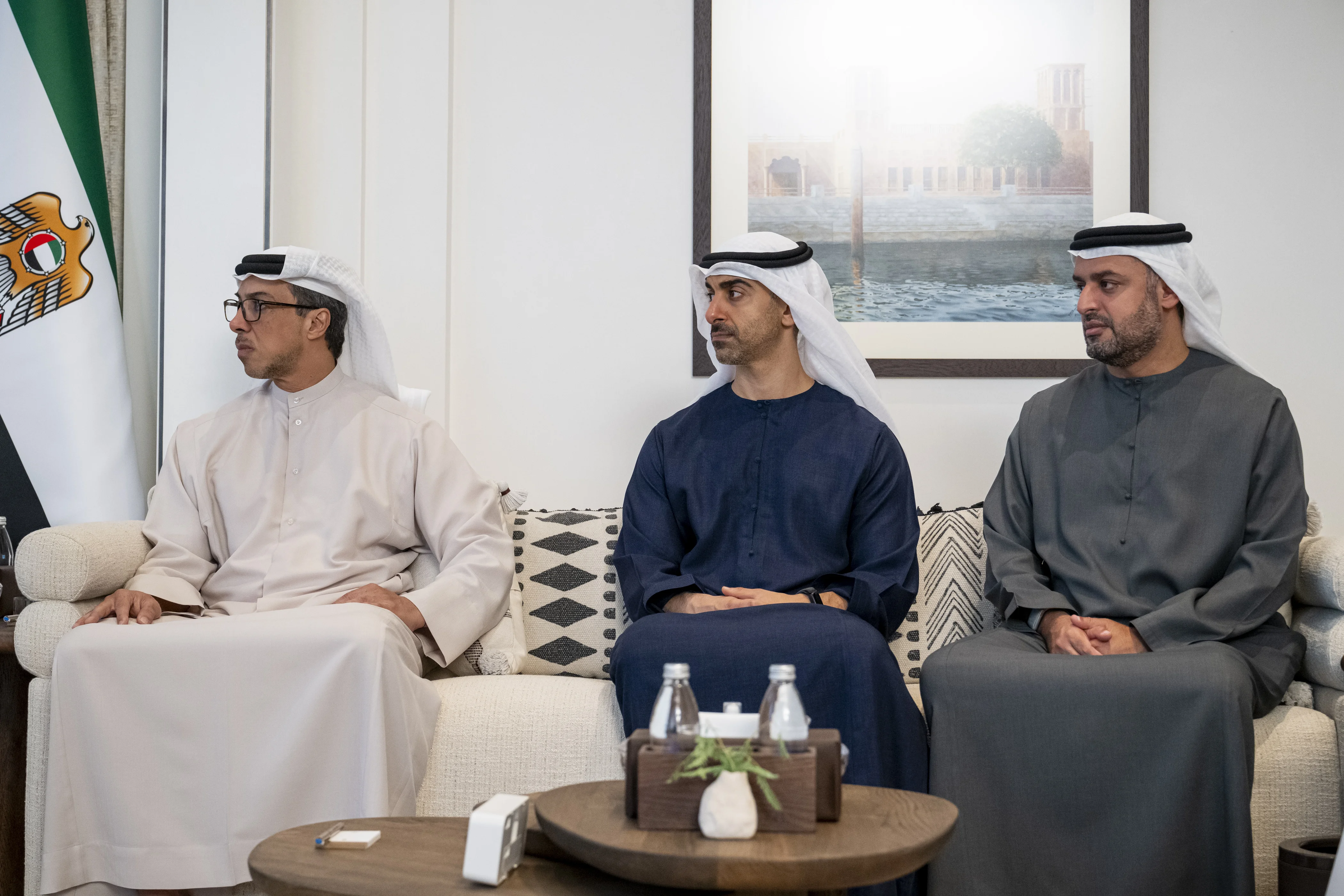 The meeting was attended by His Highness Sheikh Mansour bin Zayed Al Nahyan, Vice President, Deputy Prime Minister, and Chairman of the Presidential Court; H.H. Sheikh Hamdan bin Mohammed bin Zayed Al Nahyan, Deputy Chairman of the Presidential Court for Special Affairs, Sheikh Mohamed bin Hamad bin Tahnoun Al Nahyan, Adviser to the UAE President; Ali bin Hammad Al Shamsi, Secretary-General of the Supreme Council for National Security; Dr. Ahmed Mubarak Al Mazrouei, Chairman of the President’s Office for Strategic Affairs and Chairman of the Abu Dhabi Executive Office; along with a number of senior officials.