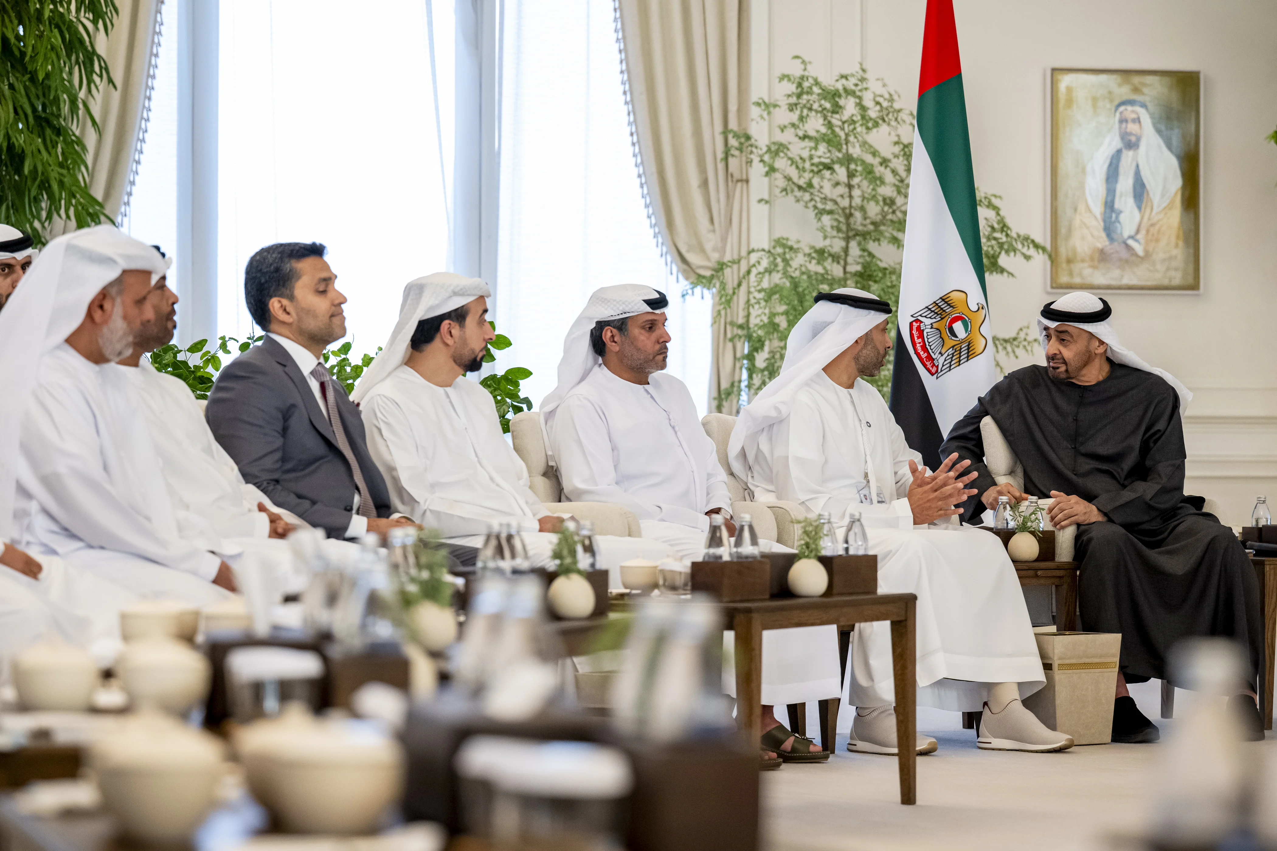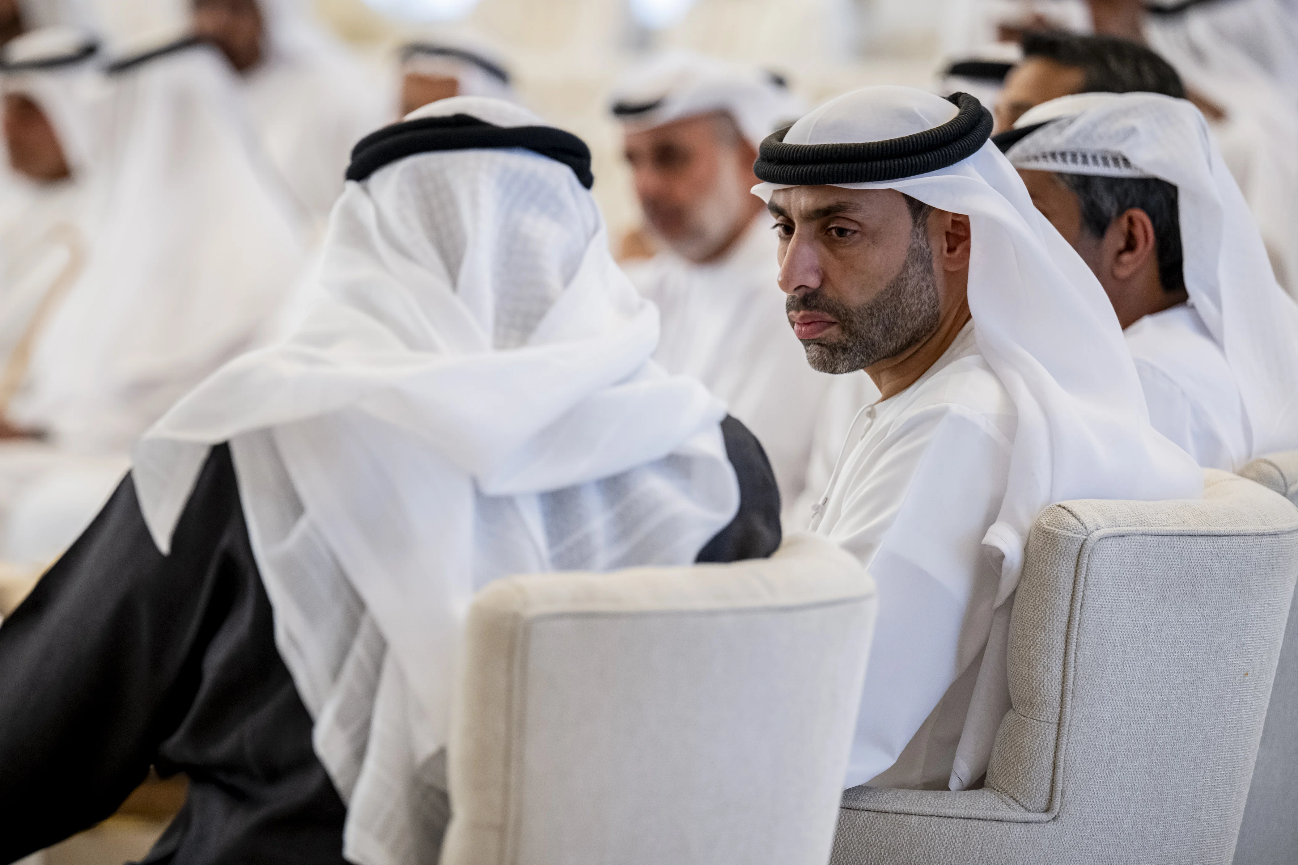 The meeting was attended by H.H. Sheikh Khaled bin Mohamed bin Zayed Al Nahyan, Crown Prince of Abu Dhabi; H.H. Sheikh Hamdan bin Zayed Al Nahyan, Ruler's Representative in Al Dhafra Region; H.H. Sheikh Nahyan bin Zayed Al Nahyan, Chairman of the Board of Trustees of Zayed bin Sultan Al Nahyan Charitable and Humanitarian Foundation; Lt. General Sheikh Saif bin Zayed Al Nahyan, Deputy Prime Minister and Minister of the Interior; H.H. Sheikh Khalid bin Zayed Al Nahyan, Chairman of the Board of Trustees of Zayed Authority for People of Determination; H.H. Sheikh Theyab bin Mohamed bin Zayed Al Nahyan, Deputy Chairman of the Presidential Court for Development and Fallen Heroes' Affairs; H.H. Sheikh Hamdan bin Mohamed bin Zayed Al Nahyan, Deputy Chairman of the Presidential Court for Special Affairs; Sheikh Mohamed bin Hamad bin Tahnoun Al Nahyan, Adviser to the UAE President; and a number of Sheikhs, ministers, senior officials, citizens and guests.
