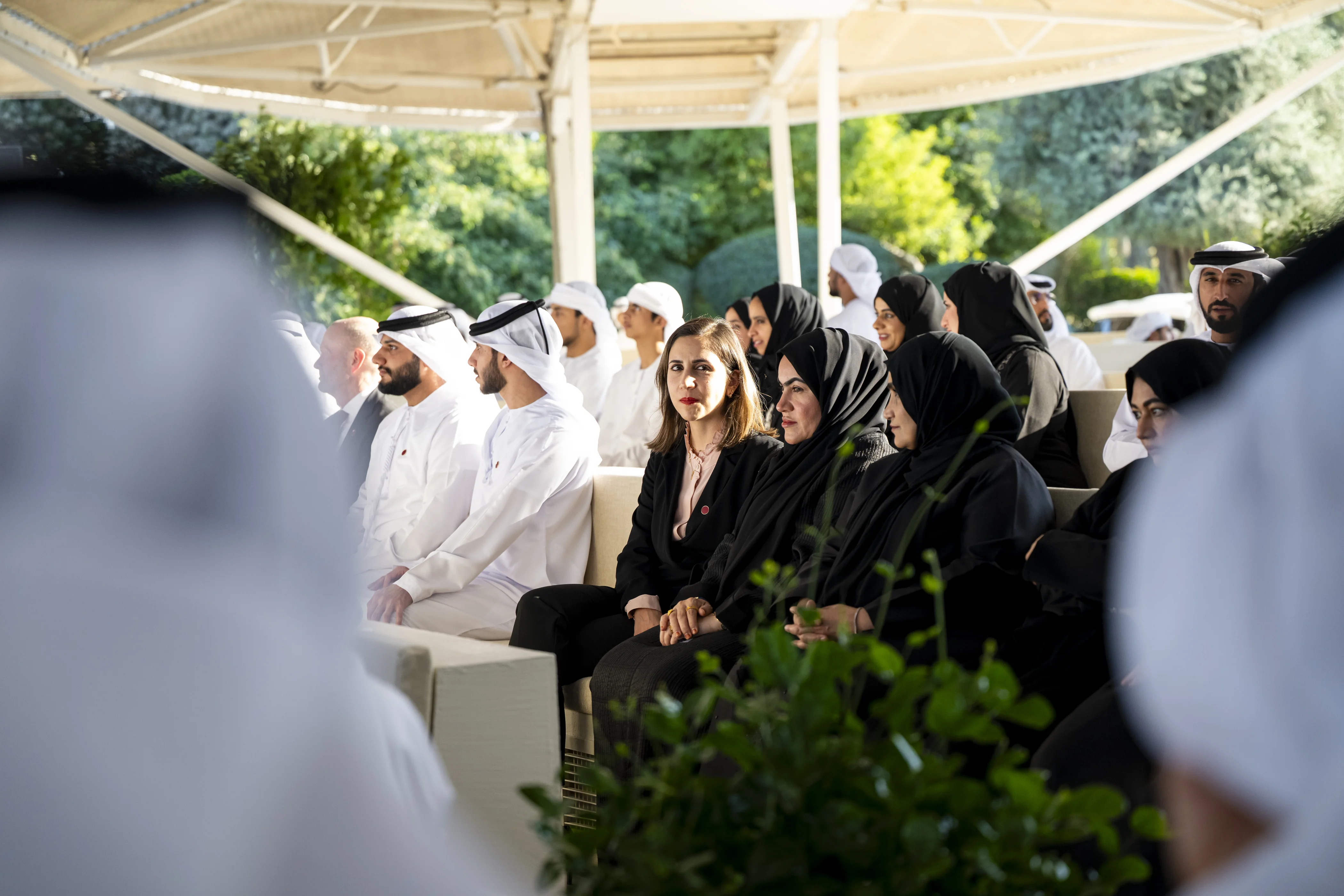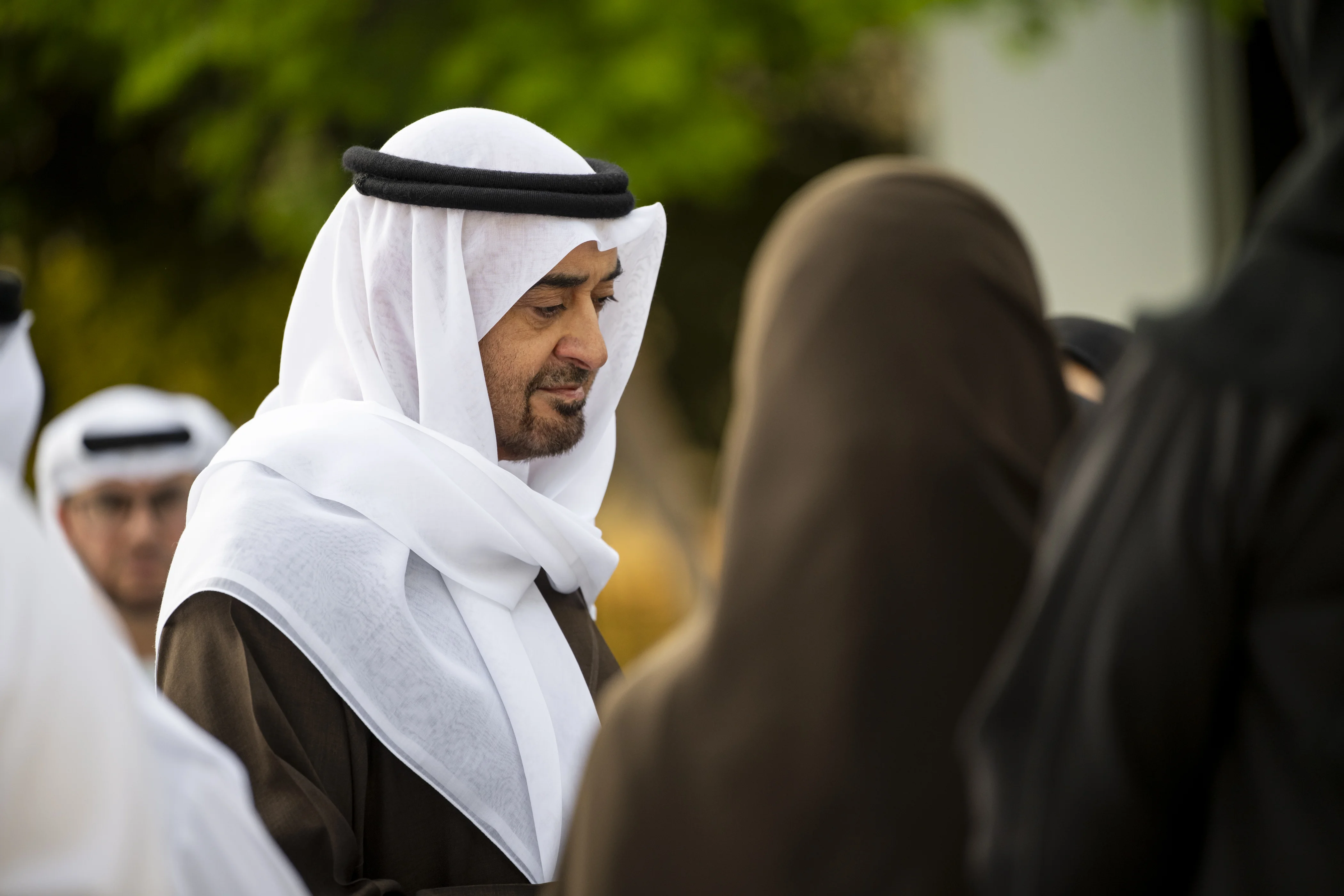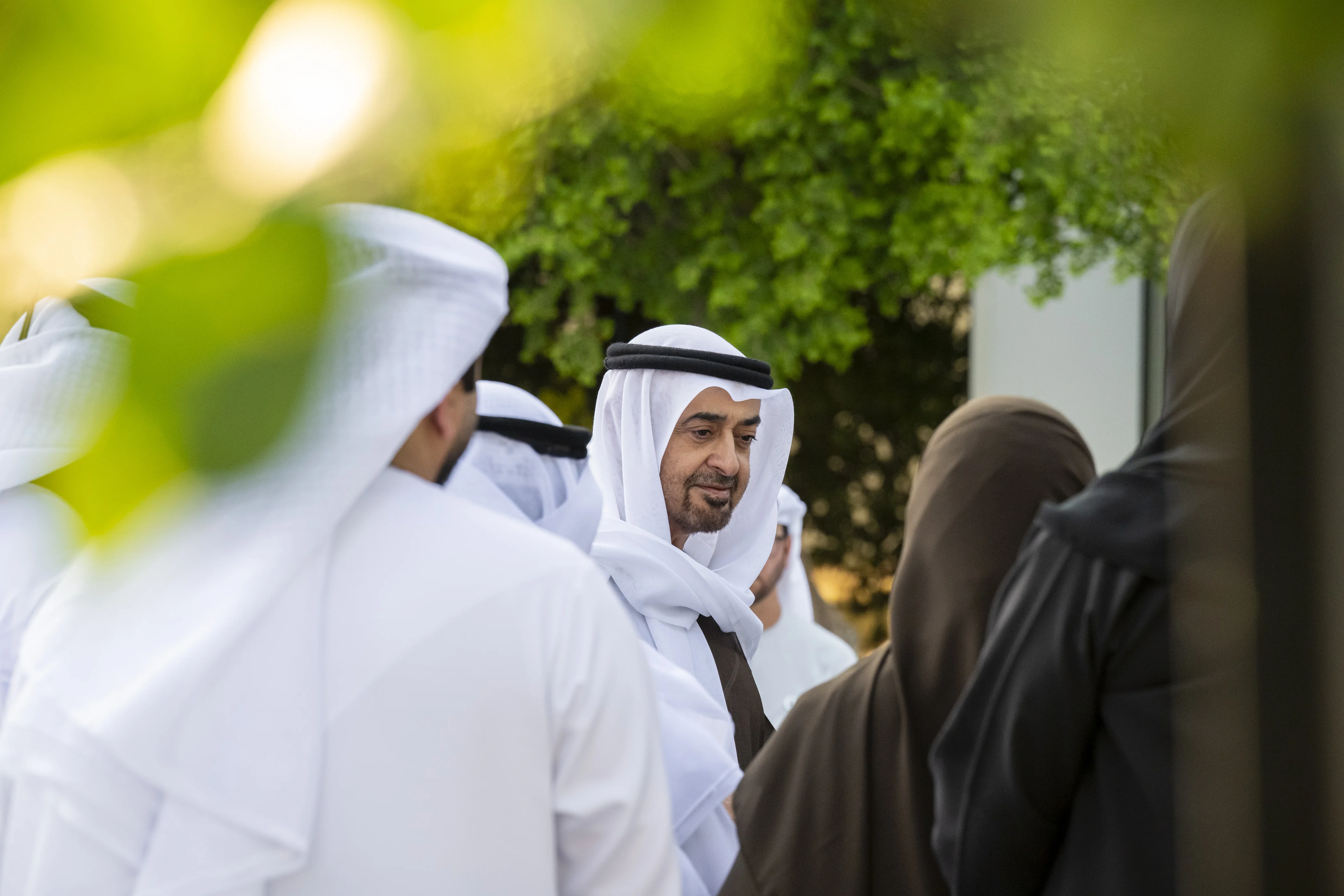 The meeting was also attended by H.H. Sheikh Khaled bin Mohamed bin Zayed Al Nahyan, Crown Prince of Abu Dhabi; H.H. Sheikh Hamdan bin Zayed Al Nahyan, Ruler’s Representative in Al Dhafra Region; H.H. Sheikh Suroor bin Mohammed Al Nahyan; H.H. Sheikh Nahyan bin Zayed Al Nahyan, Chairman of the Board of Trustees of the Zayed bin Sultan Al Nahyan Charitable and Humanitarian Foundation; H.H. Lt. General Sheikh Saif bin Zayed Al Nahyan, Deputy Prime Minister and Minister of the Interior; H.H. Sheikh Hamed bin Zayed Al Nahyan; H.H. Sheikh Khalid bin Zayed Al Nahyan, Chairman of the Board of Trustees of the Zayed Higher Organisation for People of Determination; H.H. Sheikh Dr Sultan bin Khalifa Al Nahyan, Adviser to the UAE President; H.H. Sheikh Theyab bin Mohamed bin Zayed Al Nahyan, Deputy Chairman of the Presidential Court for Development and Fallen Heroes' Affairs; H.H. Sheikh Hamdan bin Mohamed bin Zayed Al Nahyan, Deputy Chairman of the Presidential Court for Special Affairs; H.H. Sheikh Zayed bin Mohamed bin Zayed Al Nahyan; Sheikh Nahyan bin Mubarak Al Nahyan, Minister of Tolerance and Coexistence; and Sheikh Mohammed bin Hamad bin Tahnoun Al Nahyan, Adviser to the UAE President, along with a number of sheikhs, ministers, senior officials, UAE citizens and guests.