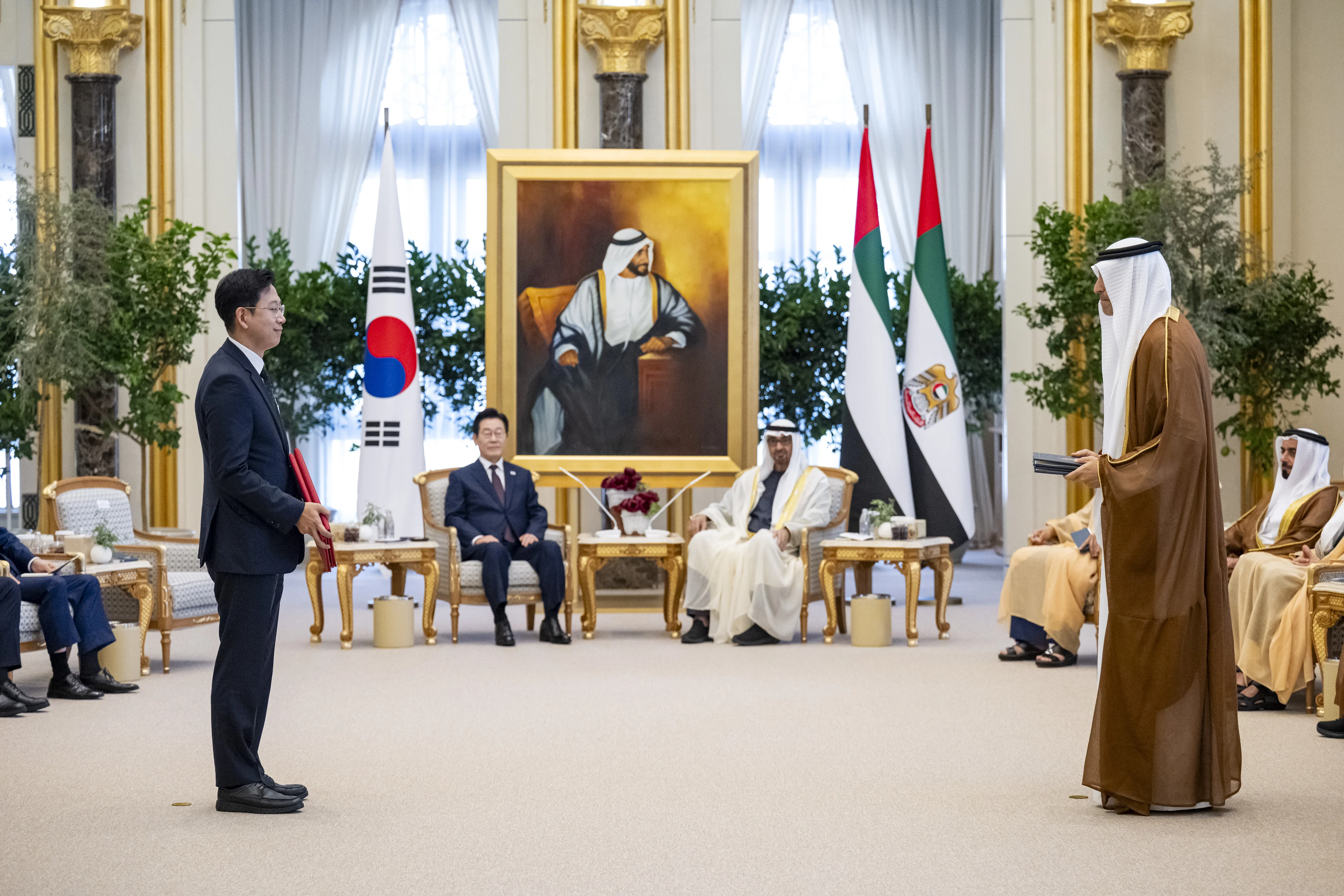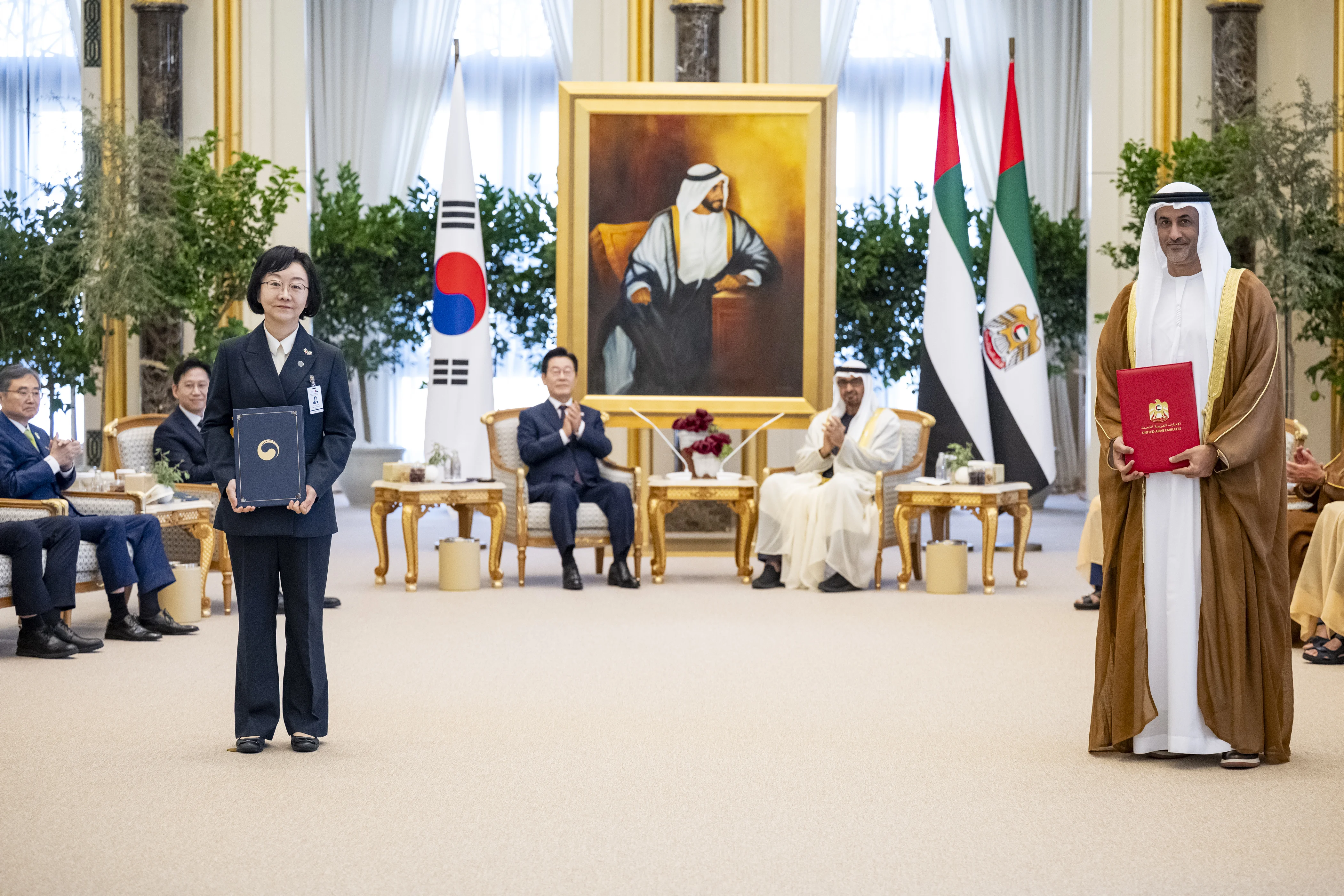 UAE President His Highness Sheikh Mohamed bin Zayed Al Nahyan and His Excellency Lee Jae-myung, President of the Republic of Korea, today witnessed the exchange of several memoranda of understanding and agreements aimed at strengthening the Special Strategic Partnership between the two countries.