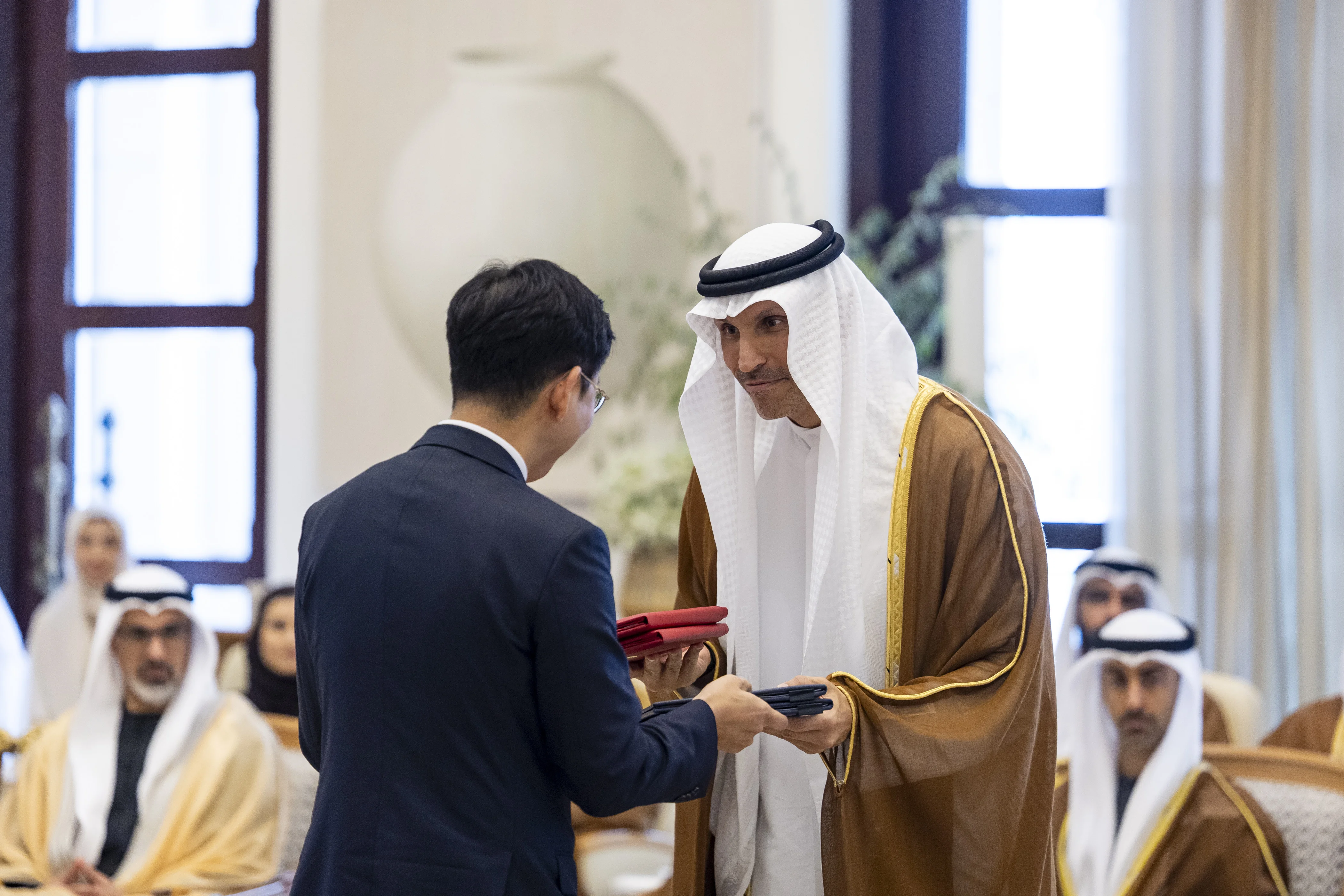 6- Cooperation arrangement in the field of intellectual property: Exchanged by His Excellency Abdulla Bin Touq Al Marri, UAE Minister of Economy and Tourism, and His Excellency Kim Yong-sun, Minister of Intellectual Property of the Republic of Korea.