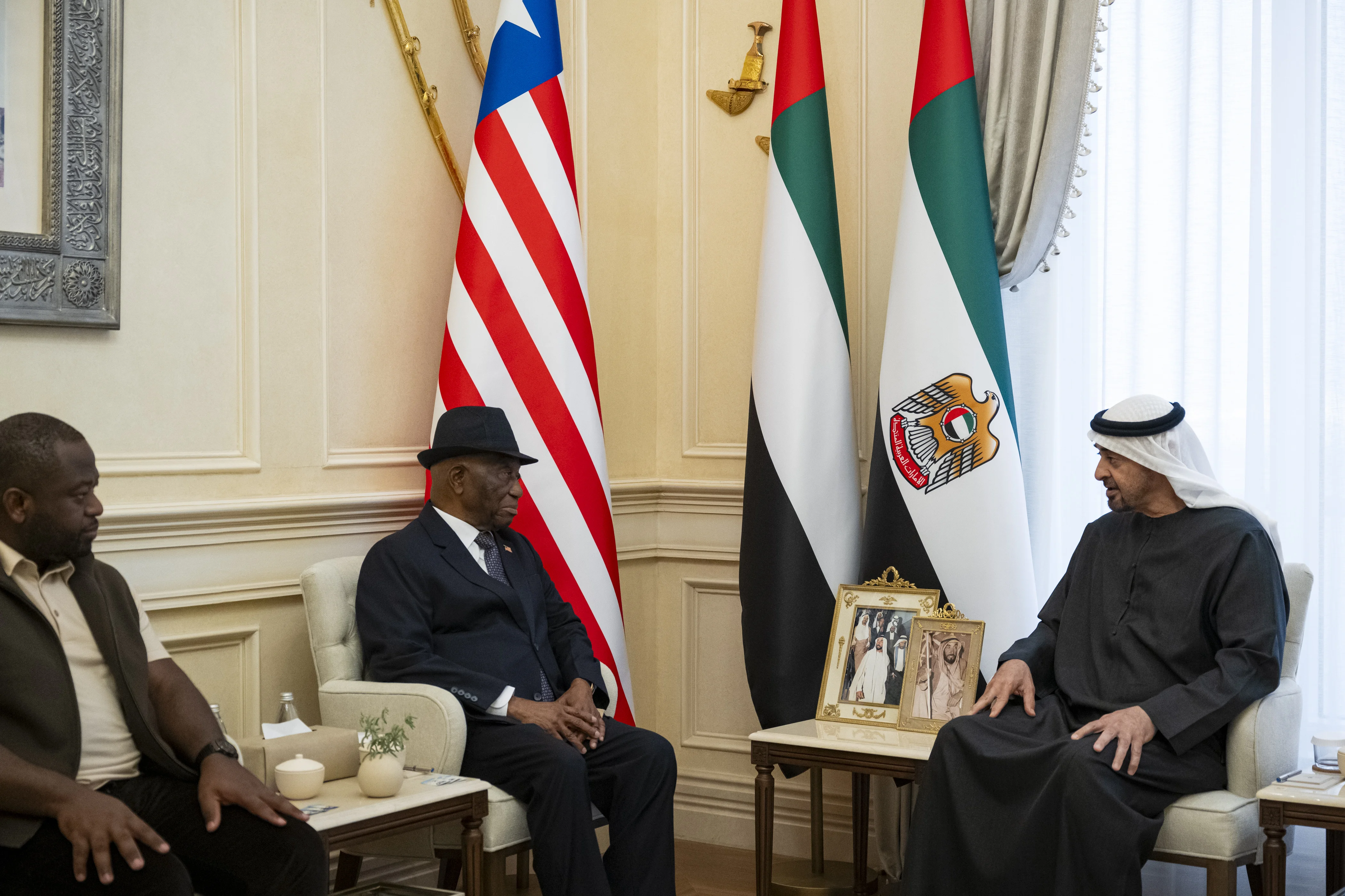 President His Highness Sheikh Mohamed bin Zayed Al Nahyan held talks today with His Excellency Joseph Nyuma Boakai, President of the Republic of Liberia, to explore ways of enhancing bilateral relations and expanding cooperation, particularly in areas that support the shared development goals of both nations. The two leaders also exchanged views on a number of regional and international issues of mutual interest.