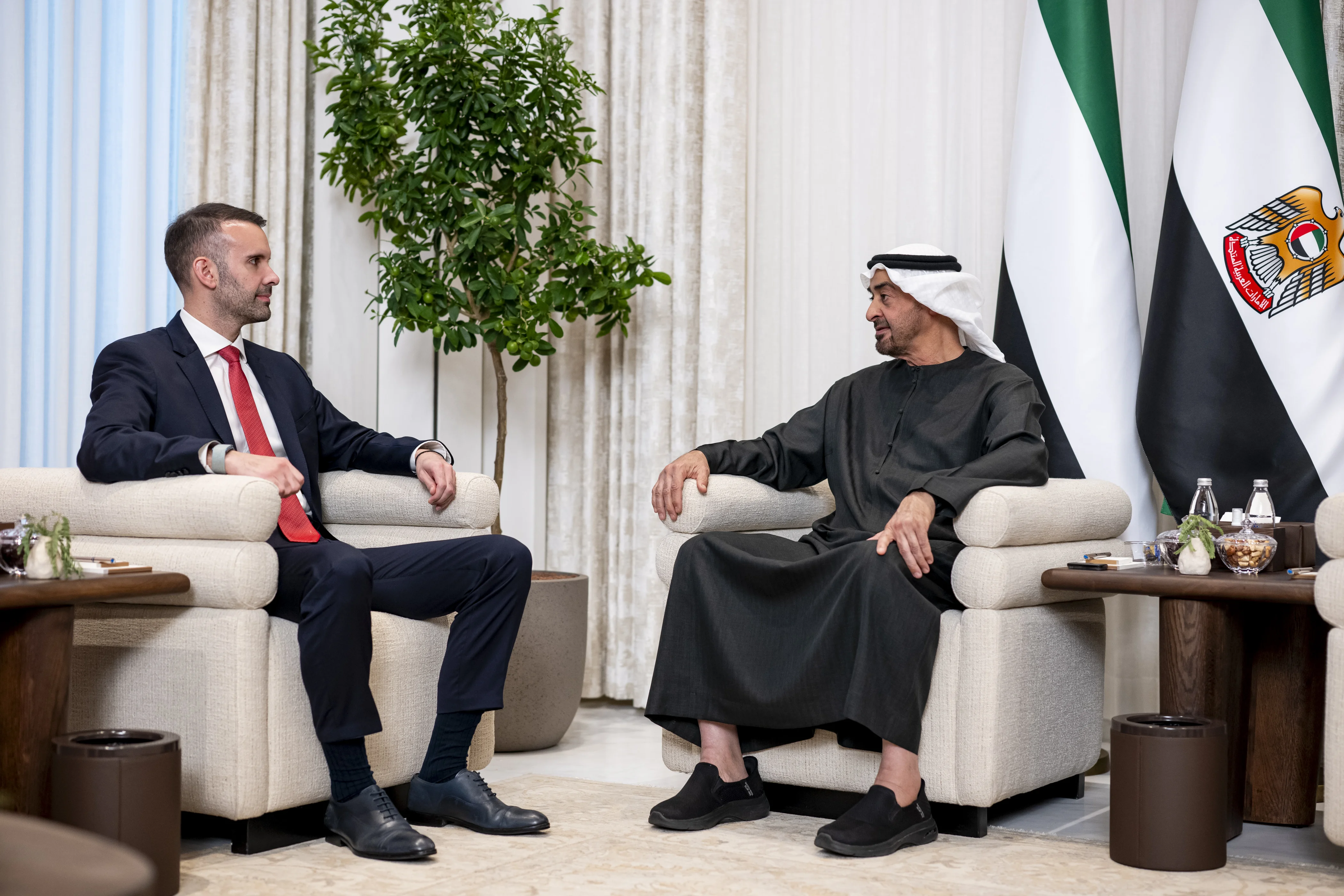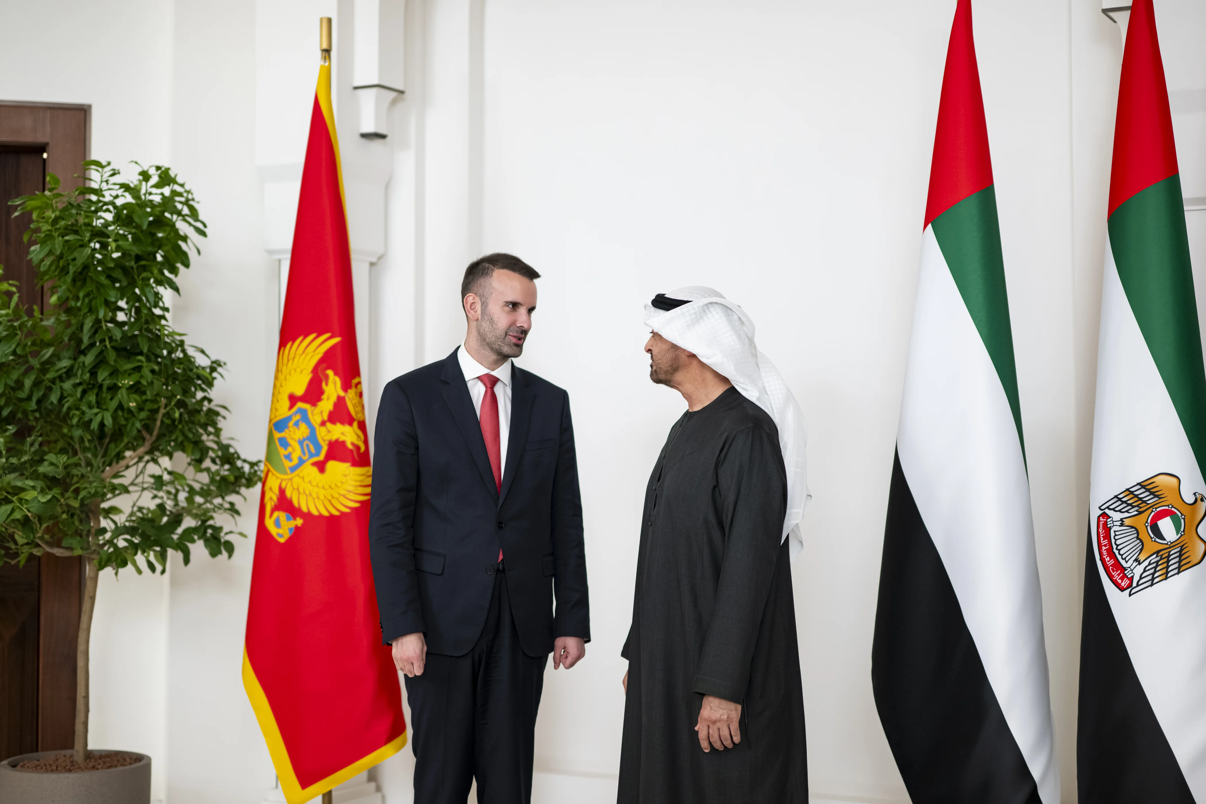 President His Highness Sheikh Mohamed bin Zayed Al Nahyan and His Excellency Milojko Spajić, Prime Minister of Montenegro, today discussed cooperation between the two countries and explored opportunities to expand ties, particularly in the economic, developmental, educational, cultural, and renewable energy sectors, in a way that supports both countries’ growth-focused priorities and serves their mutual interests.