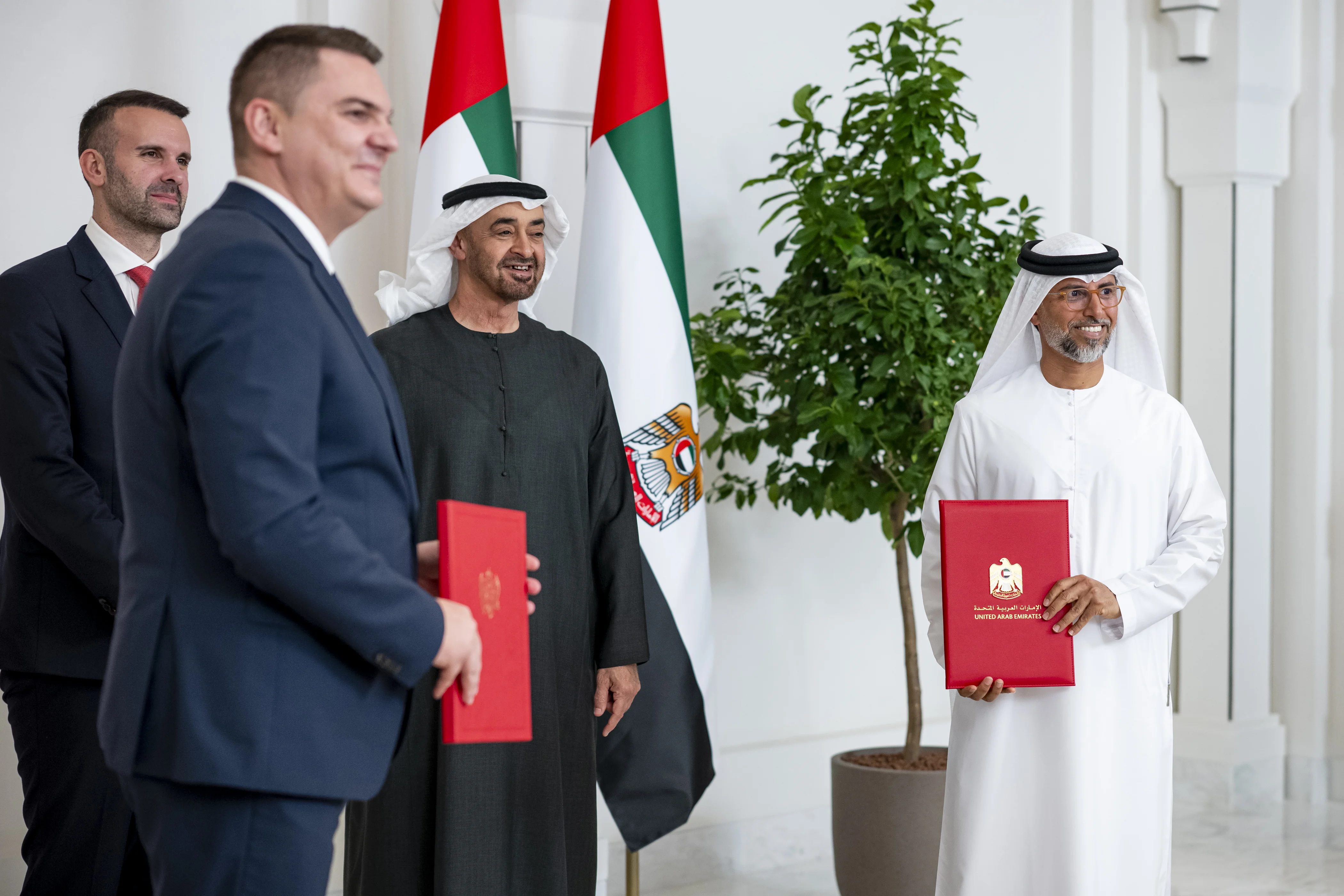 His Highness and His Excellency Spajić also witnessed the exchange of a memorandum of understanding in the field of energy between the governments of the UAE and Montenegro. The MoU was exchanged by His Excellency Suhail Mohamed Al Mazrouei, UAE Minister of Energy and Infrastructure, and His Excellency Admir Šahmanović, Montenegrin Minister of Energy and Mining.