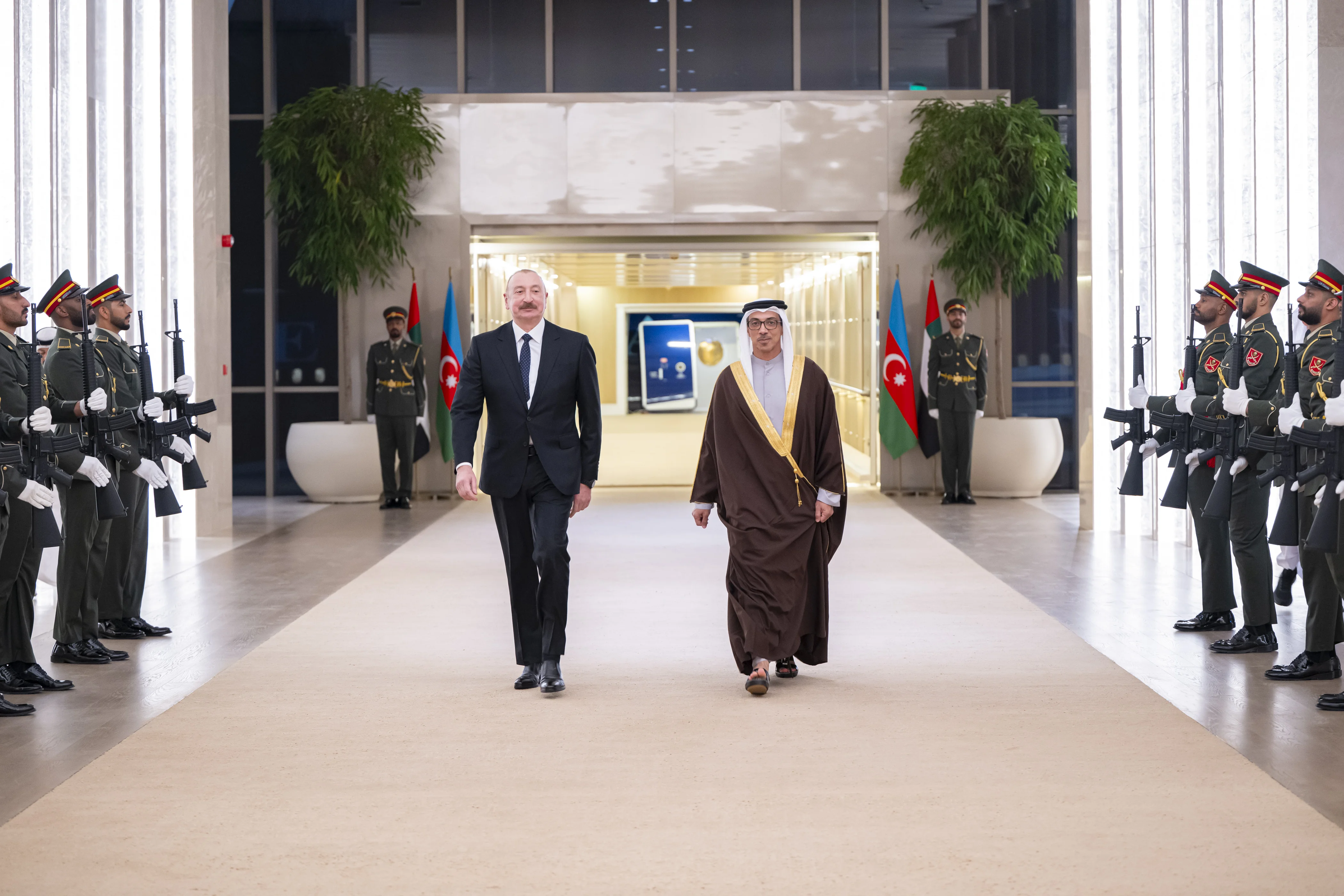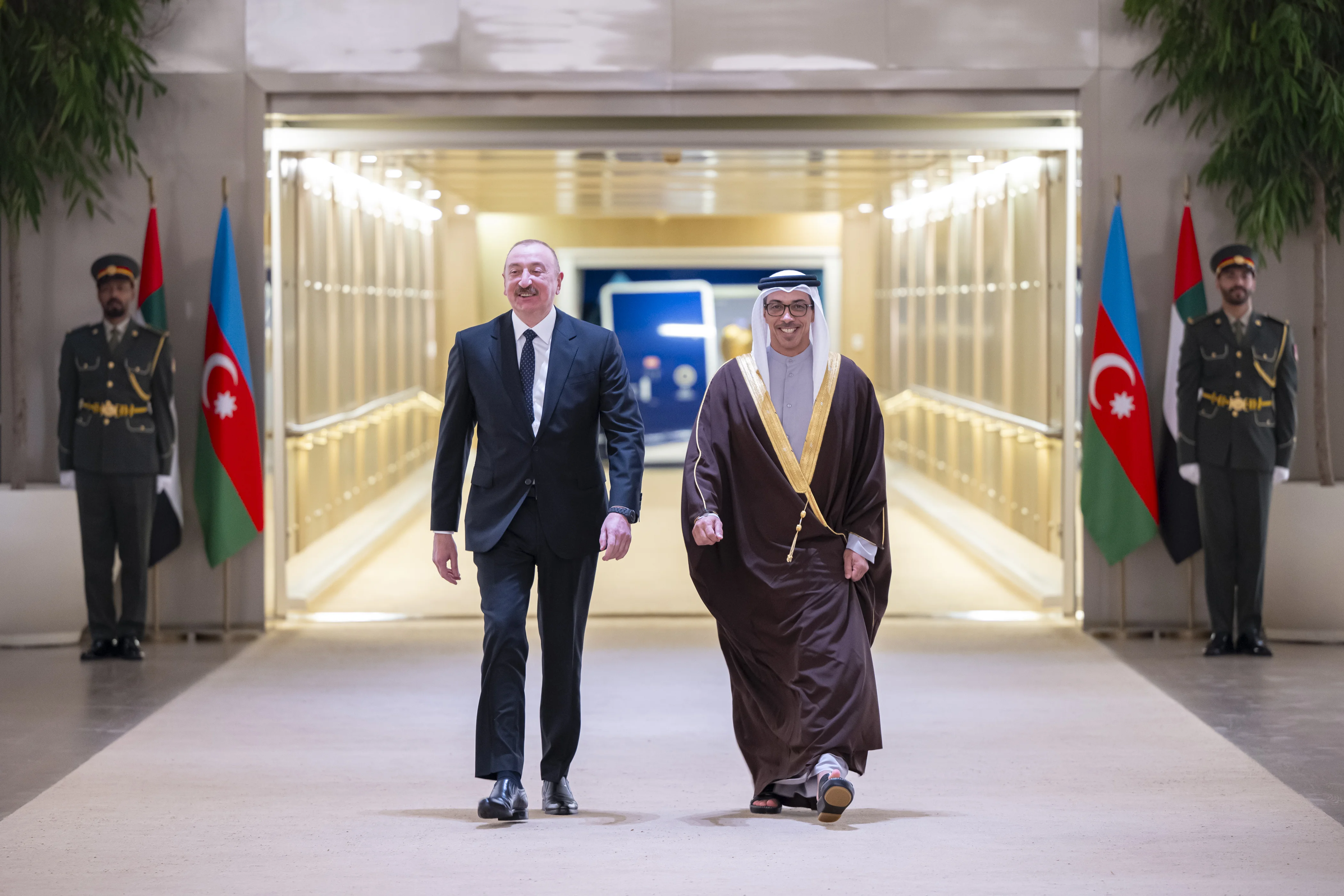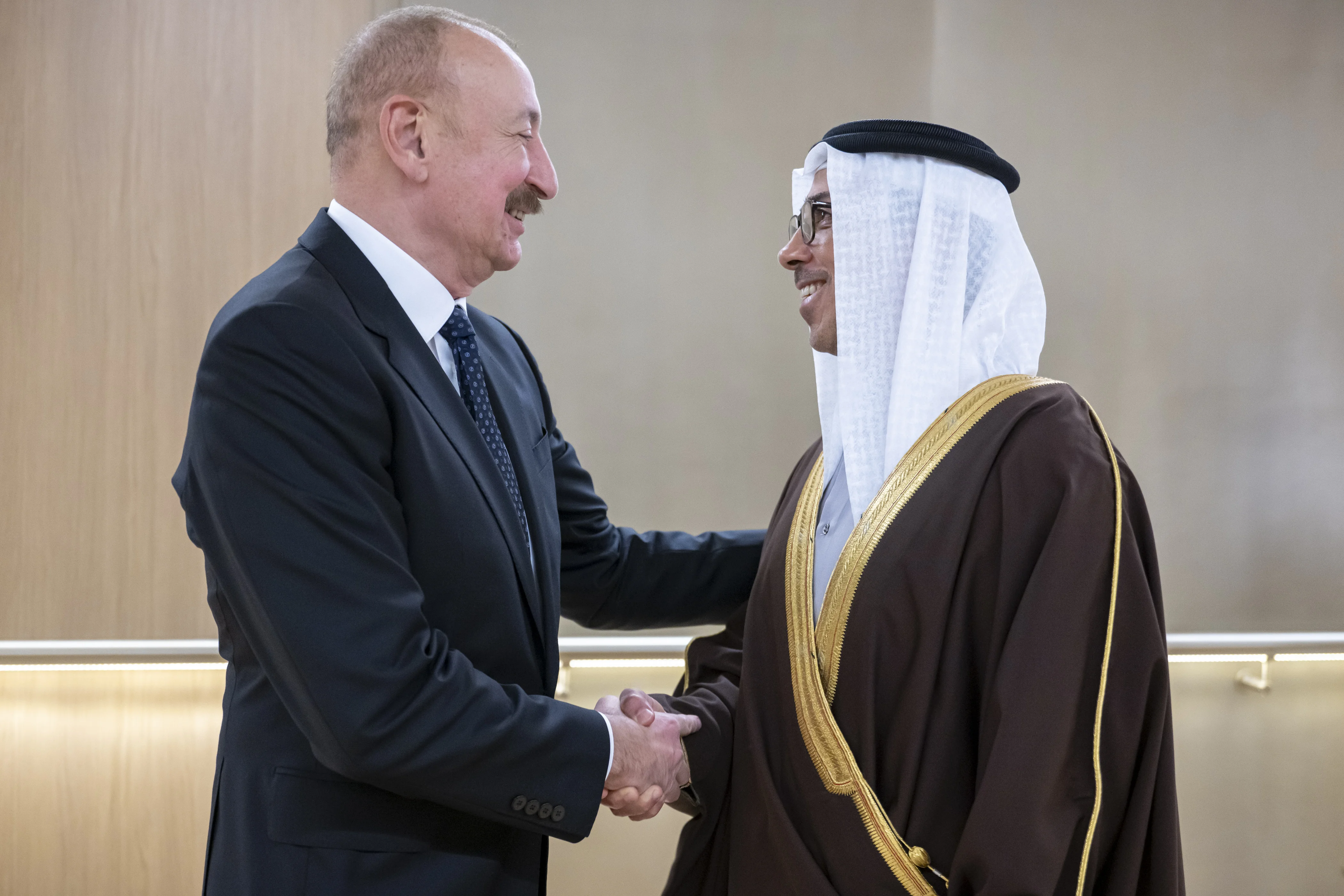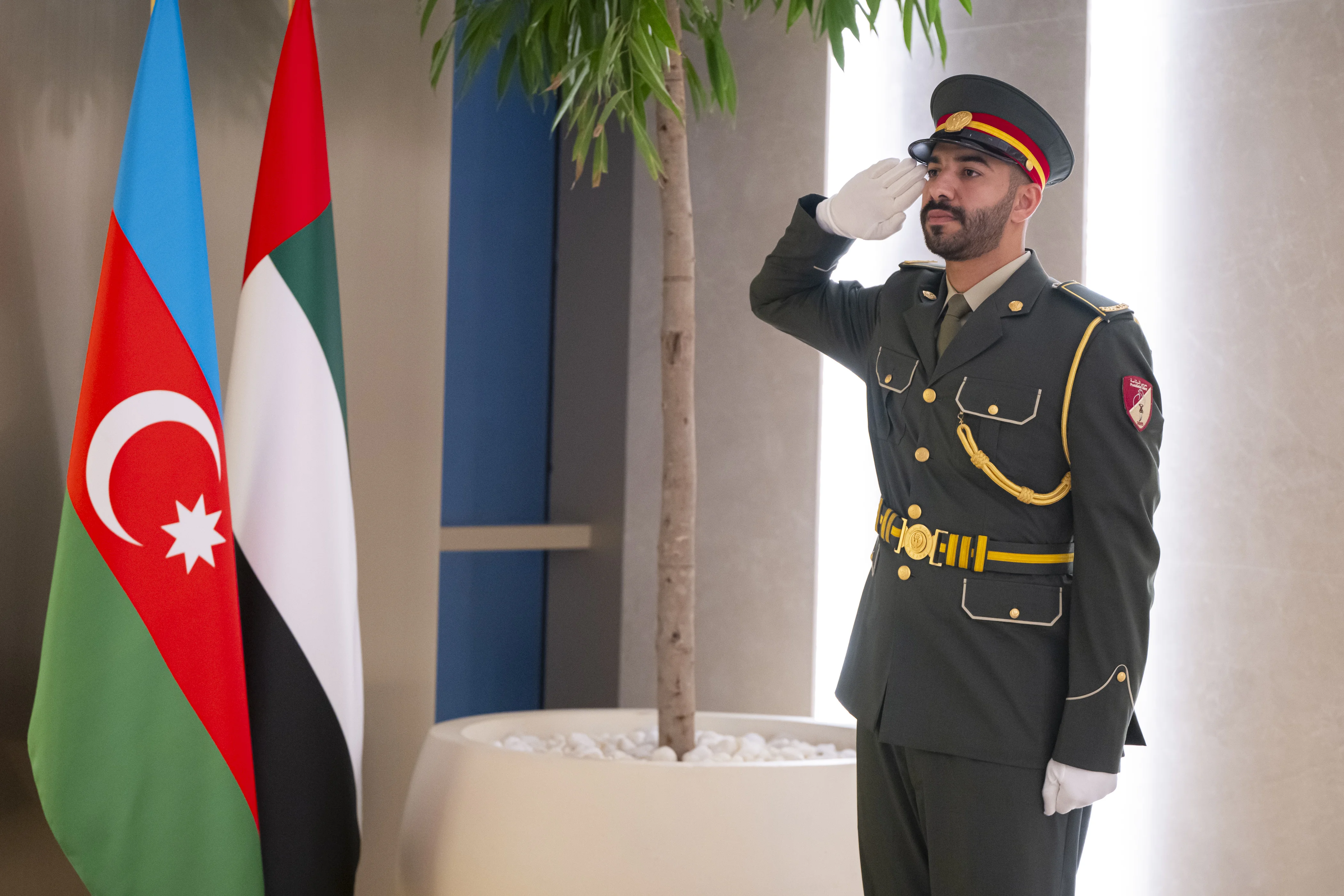 Earlier, His Excellency Aliyev was received at the Presidential Flight upon his arrival in Abu Dhabi by His Highness Sheikh Mansour bin Zayed Al Nahyan, Vice President, Deputy Prime Minister, and Chairman of the Presidential Court.
