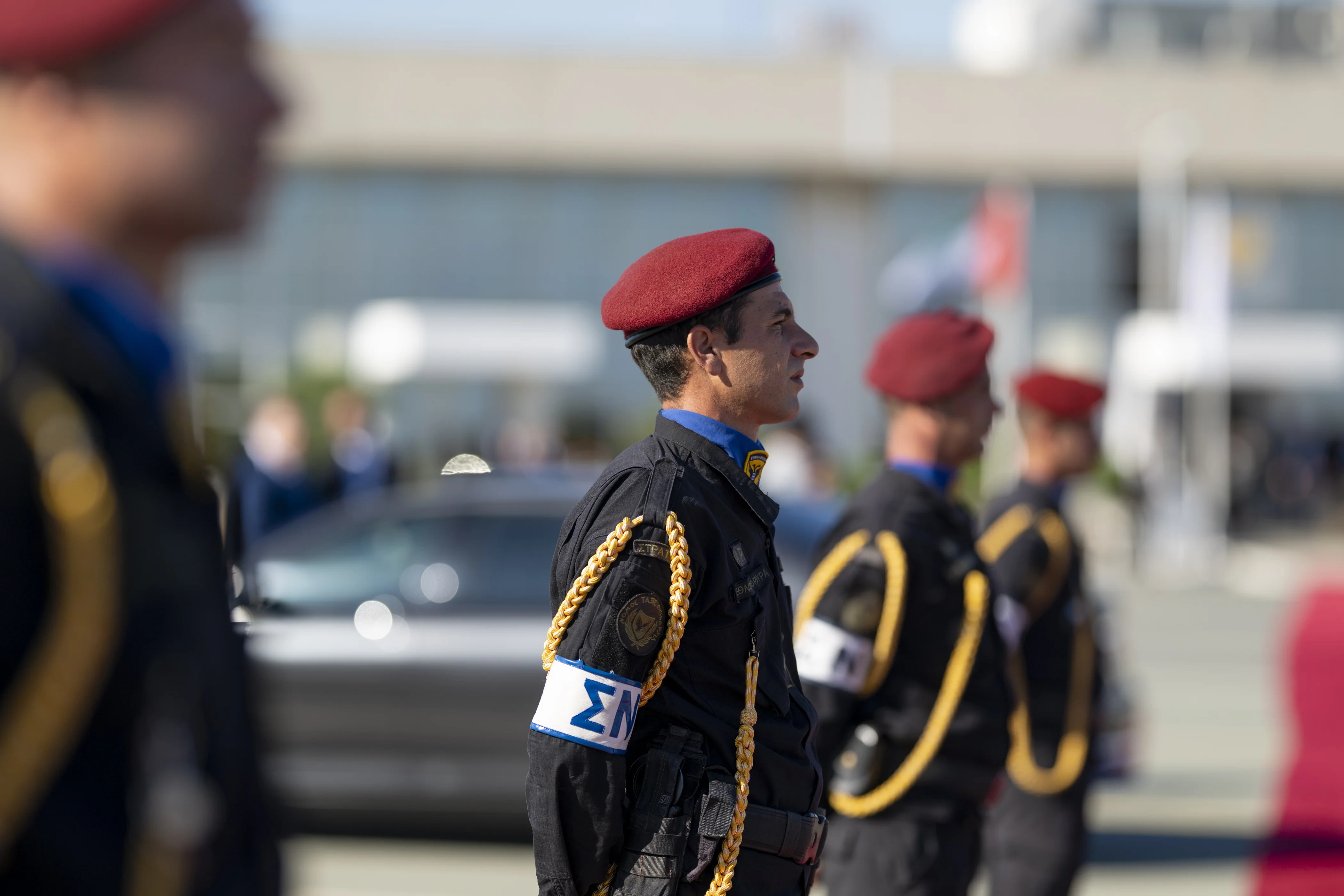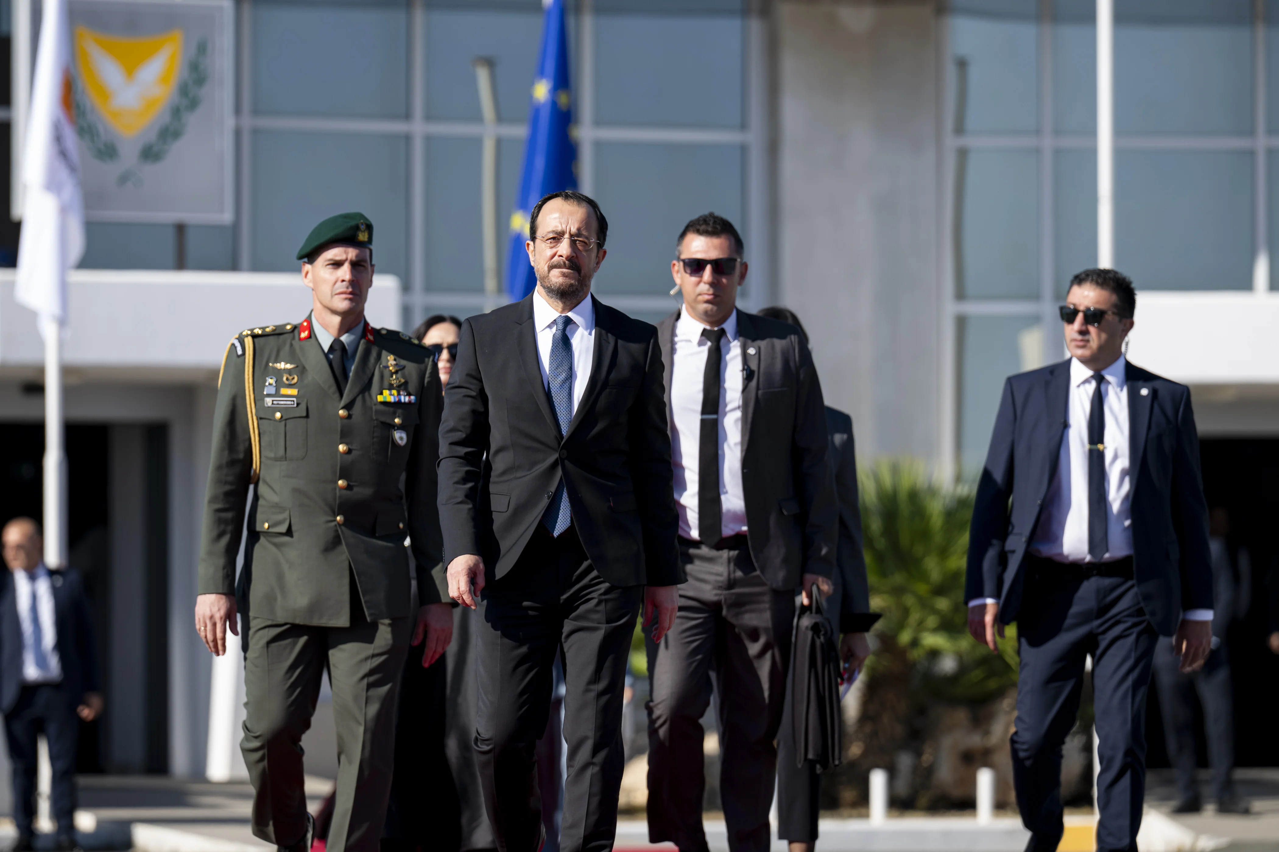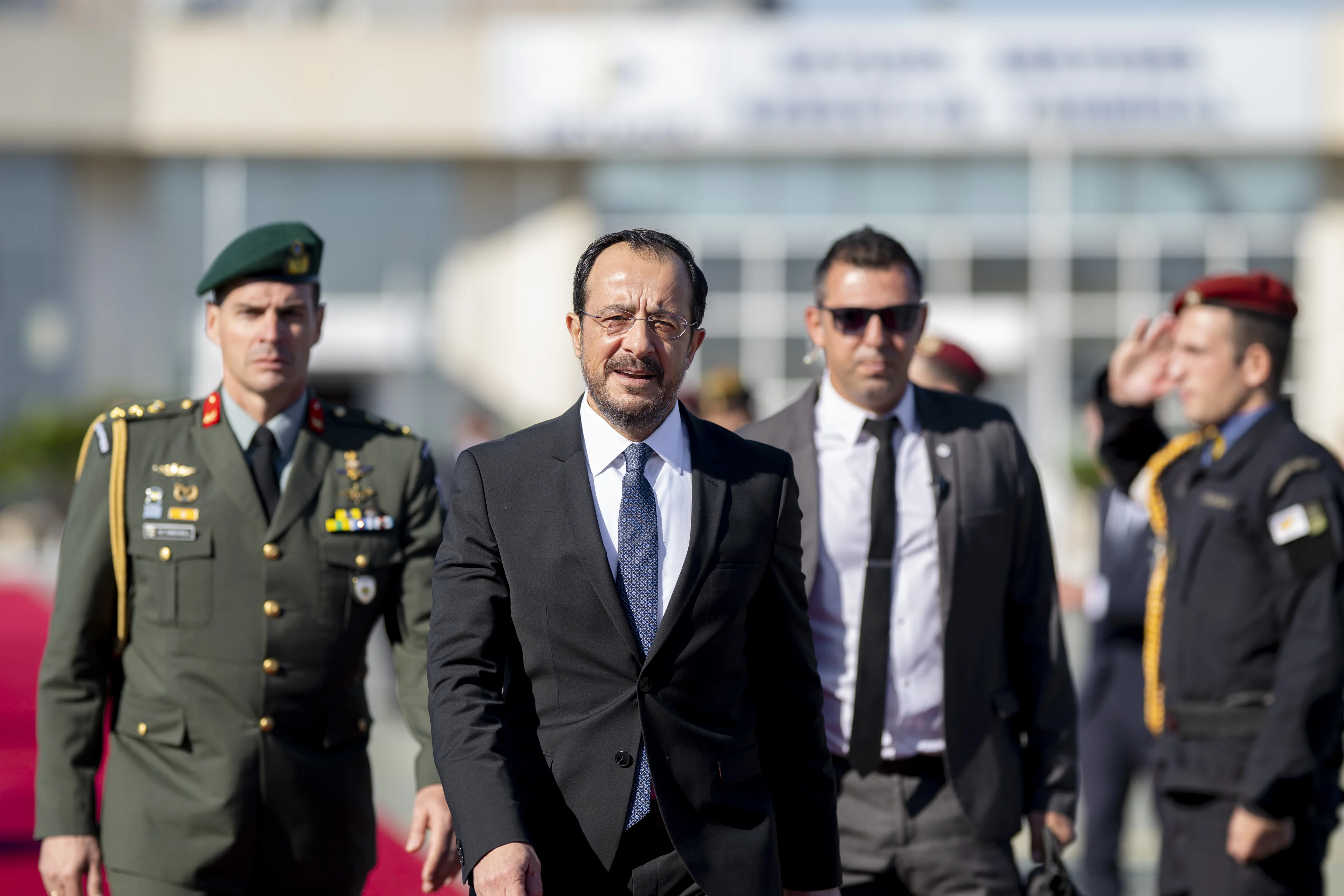 His Highness was received at Larnaca International Airport by the President of Cyprus, His Excellency Nikos Christodoulides, along with a number of senior officials.