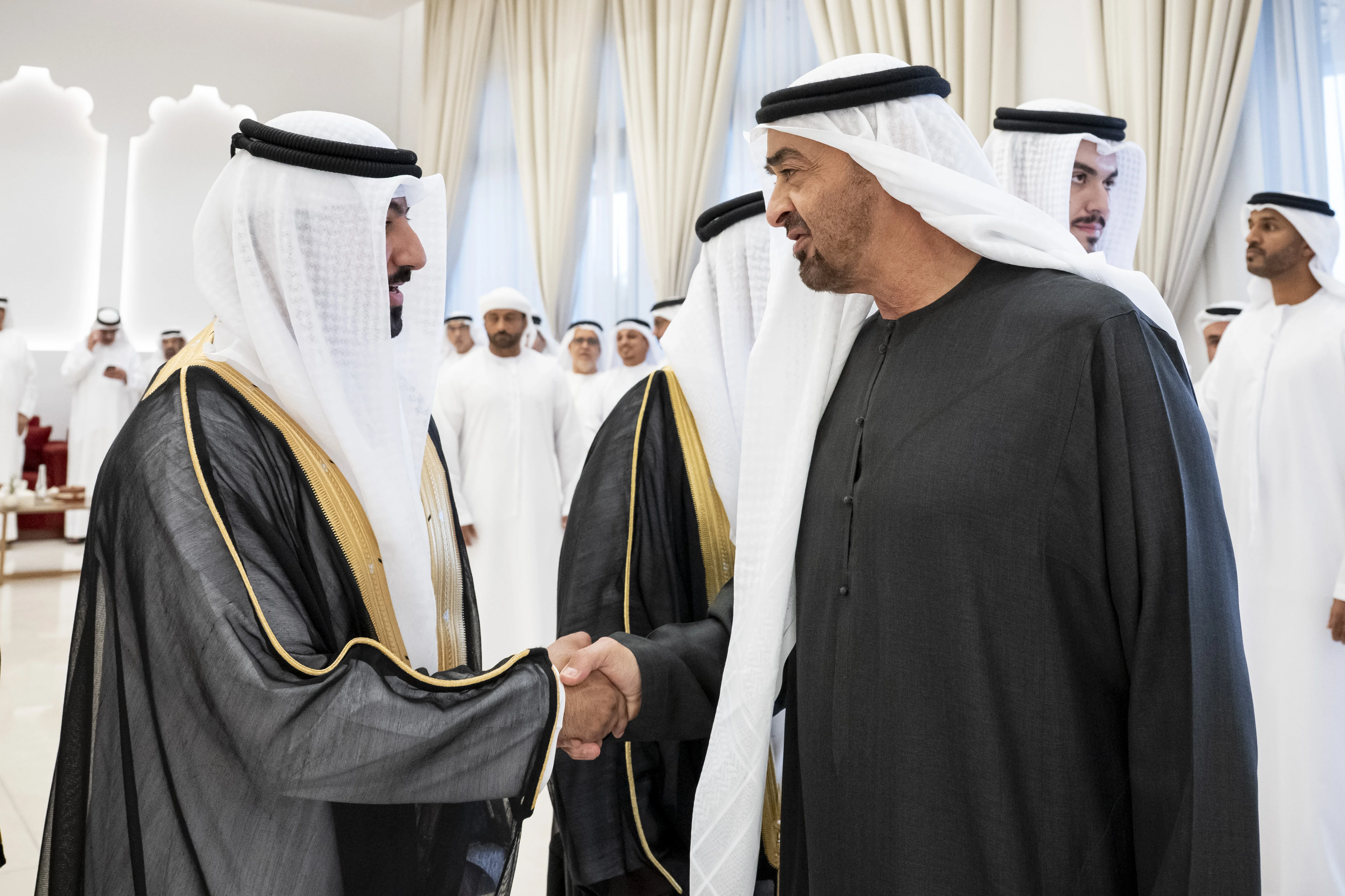President His Highness Sheikh Mohamed bin Zayed Al Nahyan attended a reception celebrating the group wedding of several members of the Al Hawashim tribe, held at Majlis Al Hawashim in Abu Dhabi.