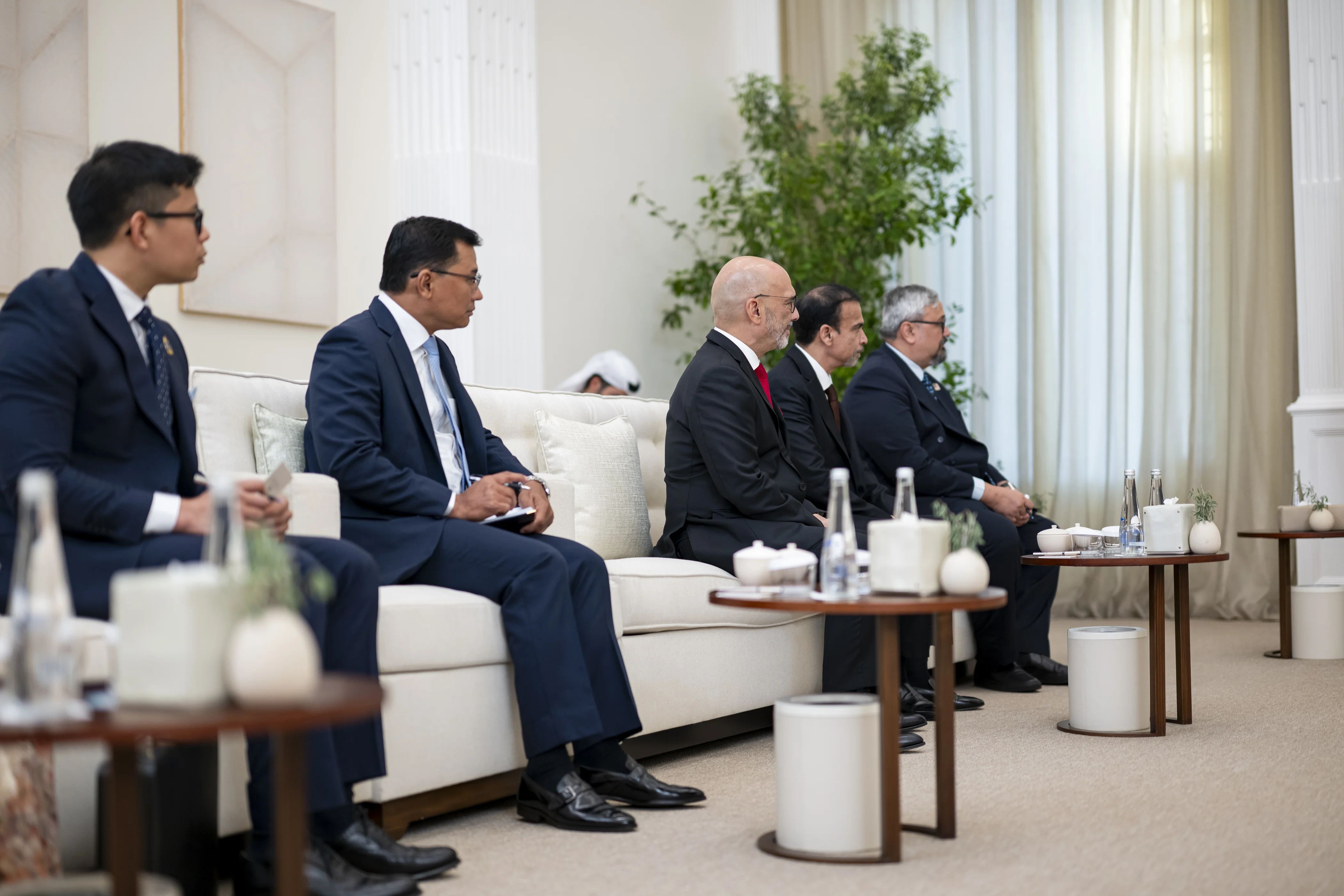 The meeting took place at Qasr Al Bahr in Abu Dhabi, where His Highness welcomed His Majesty to his second home, the UAE. The two leaders exchanged warm and cordial remarks reflecting the strength of ties between their nations and expressed their mutual wishes for continued progress and prosperity for both countries, as well as further growth in UAE-Malaysia relations.