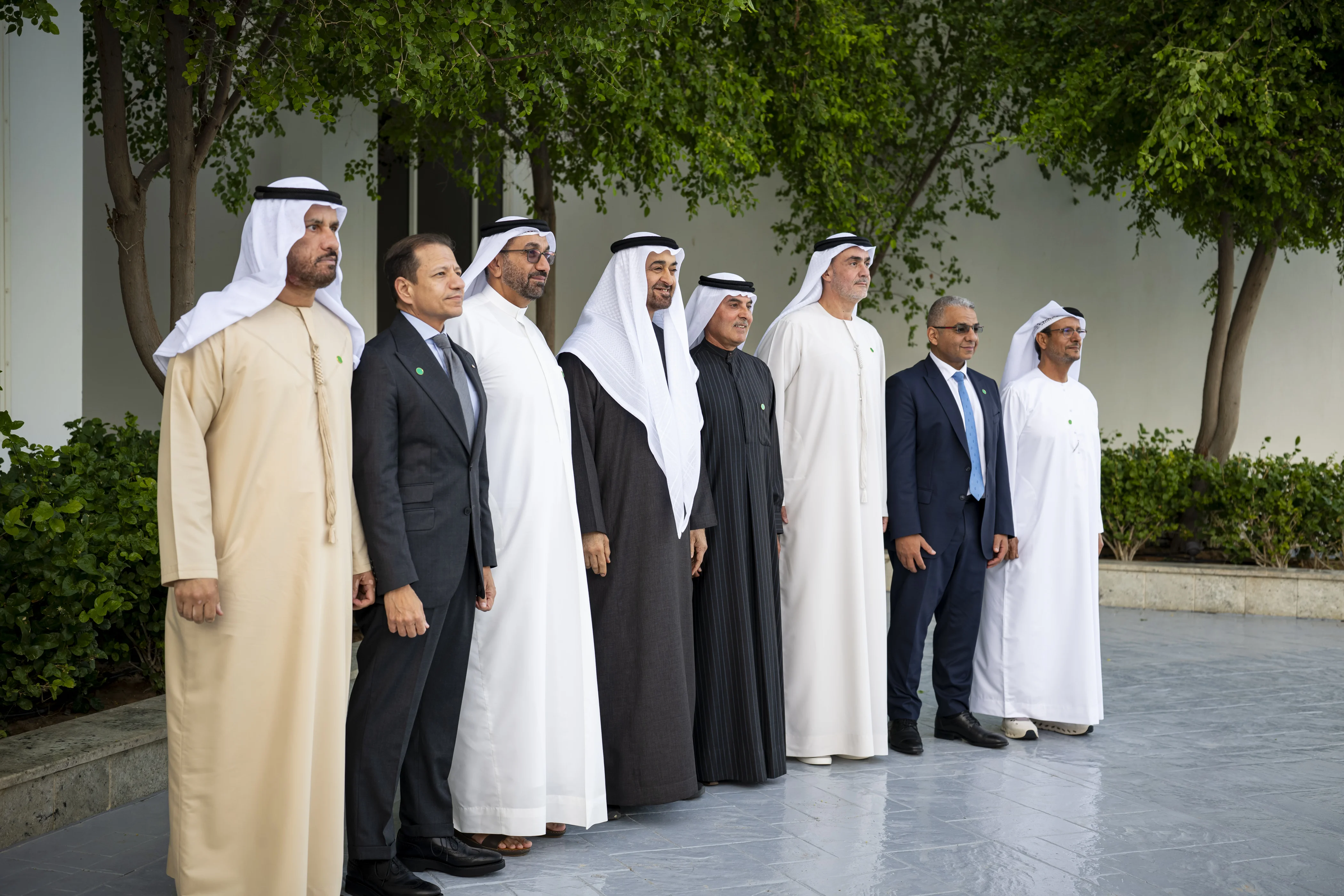 The meeting was attended by His Highness Sheikh Mansour bin Zayed Al Nahyan, Vice President, Deputy Prime Minister and Chairman of the Presidential Court; H.H. Sheikh Khaled bin Mohamed bin Zayed Al Nahyan, Crown Prince of Abu Dhabi; H.H. Sheikh Hamdan bin Zayed Al Nahyan, Ruler’s Representative in the Al Dhafra Region; H.H. Sheikh Saif bin Mohamed Al Nahyan; H.H. Sheikh Suroor bin Mohamed Al Nahyan; H.H. Sheikh Theyab bin Mohamed bin Zayed Al Nahyan, Deputy Chairman of the Presidential Court for Development and Fallen Heroes' Affairs; H.H. Sheikh Hamdan bin Mohamed bin Zayed Al Nahyan, Deputy Chairman of the Presidential Court for Special Affairs; H.H. Sheikh Zayed bin Mohamed bin Zayed Al Nahyan; in addition to a number of sheikhs, ministers and senior officials.
