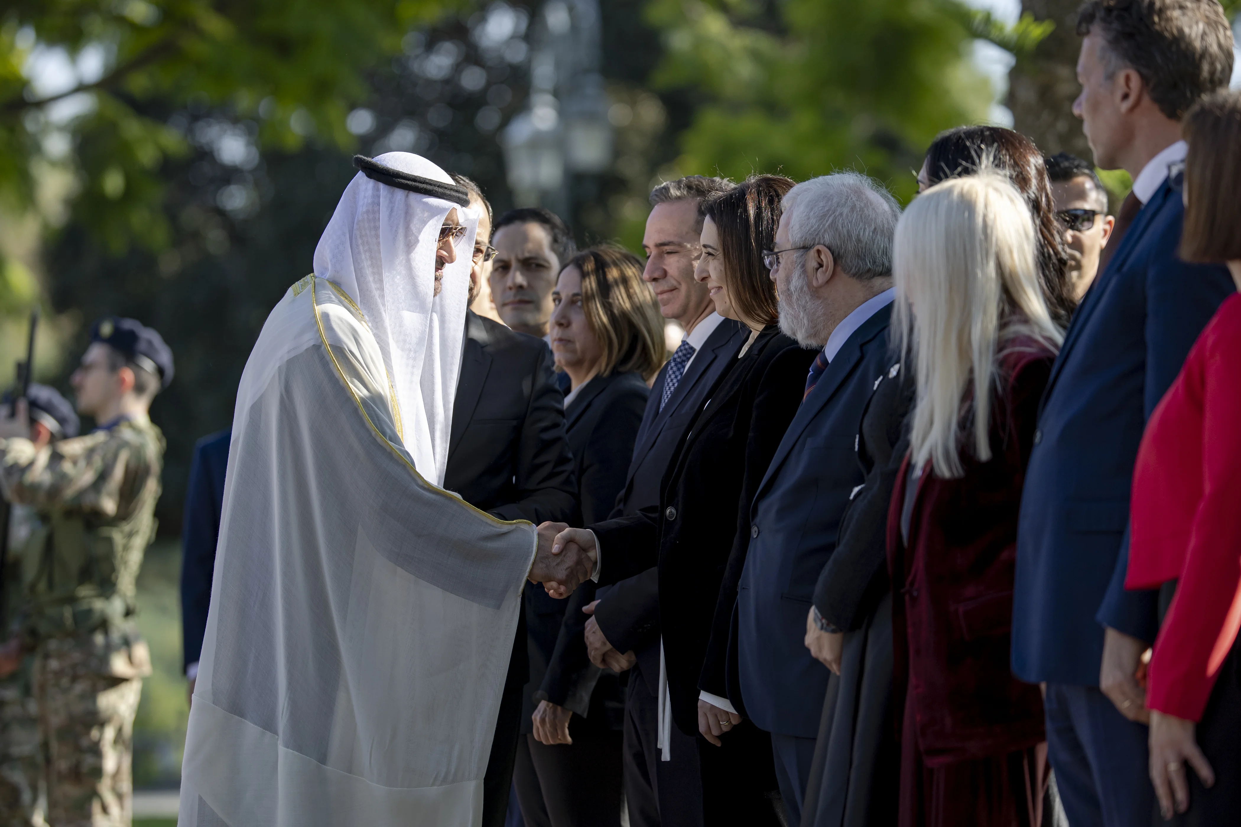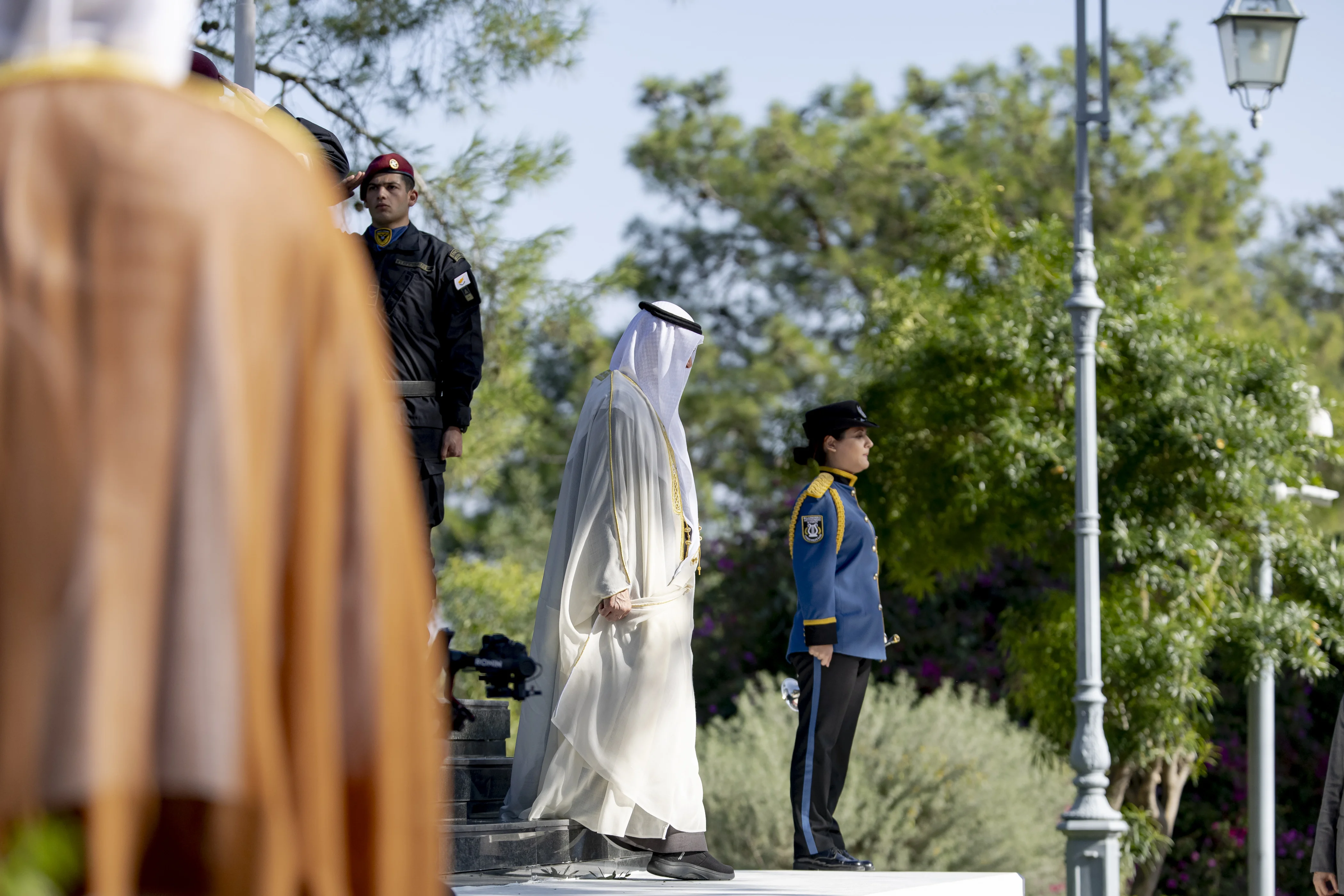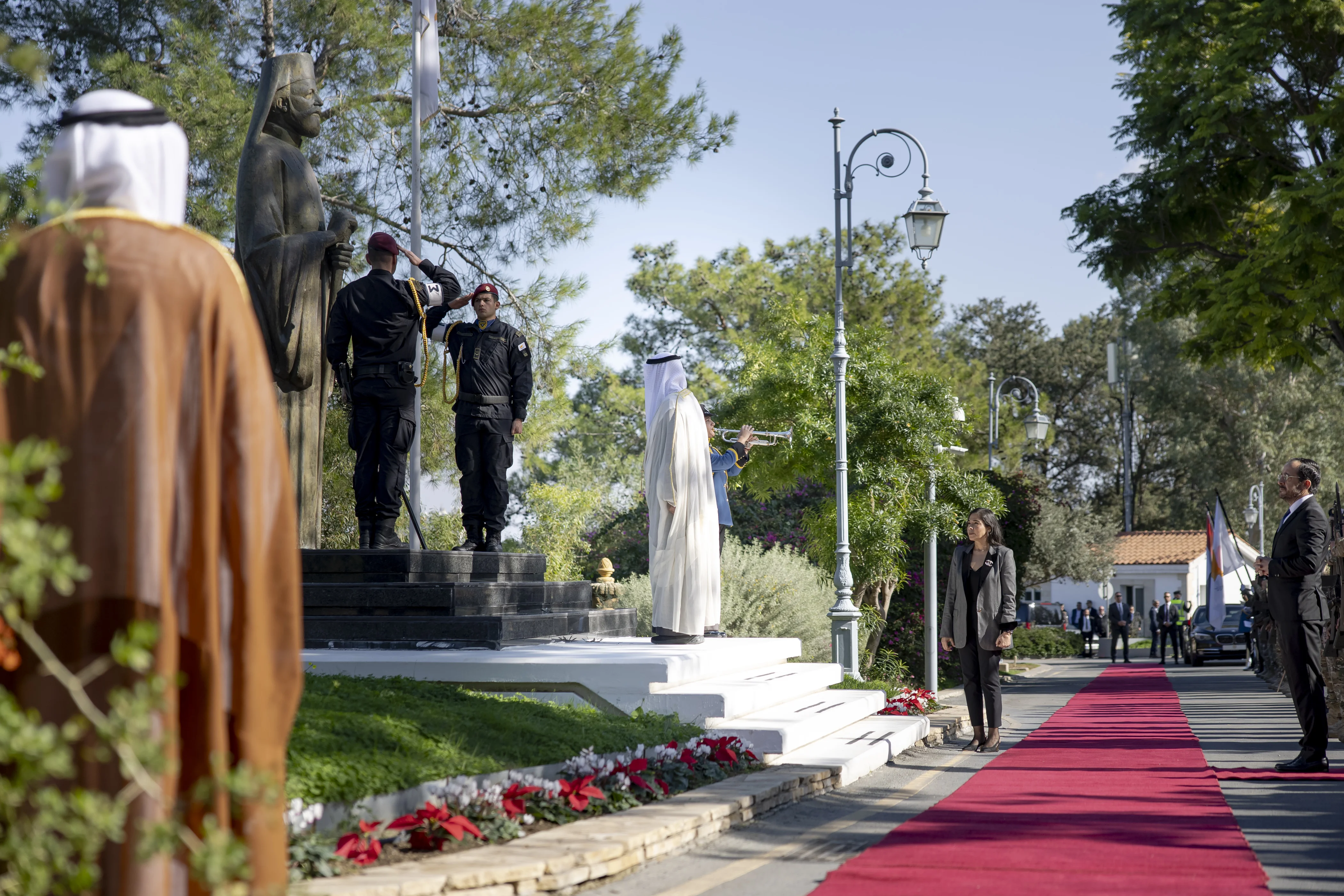 Upon arrival, His Highness was welcomed with an official reception ceremony that included the national anthems of the UAE and Cyprus and an inspection of the honour guard.