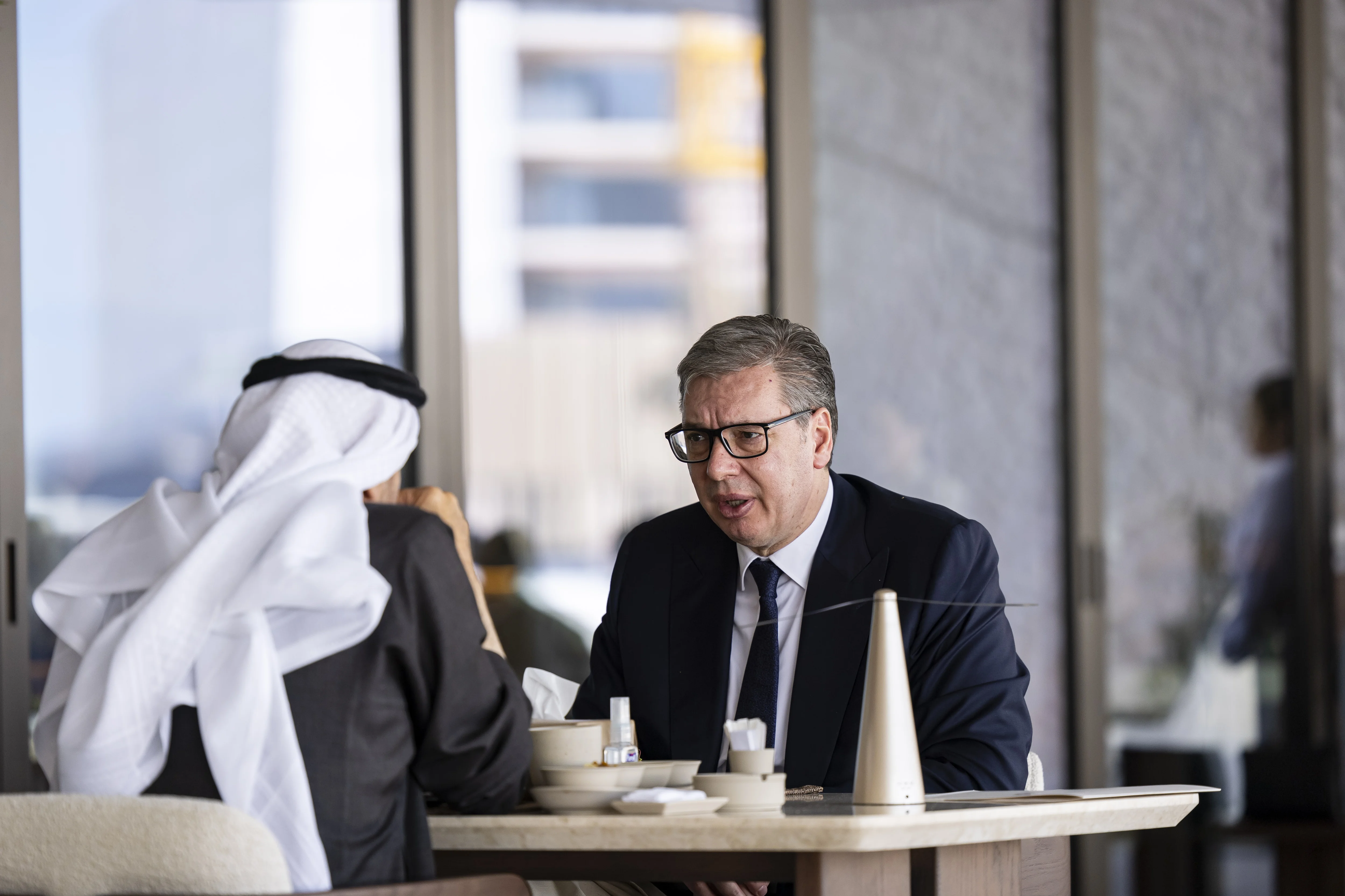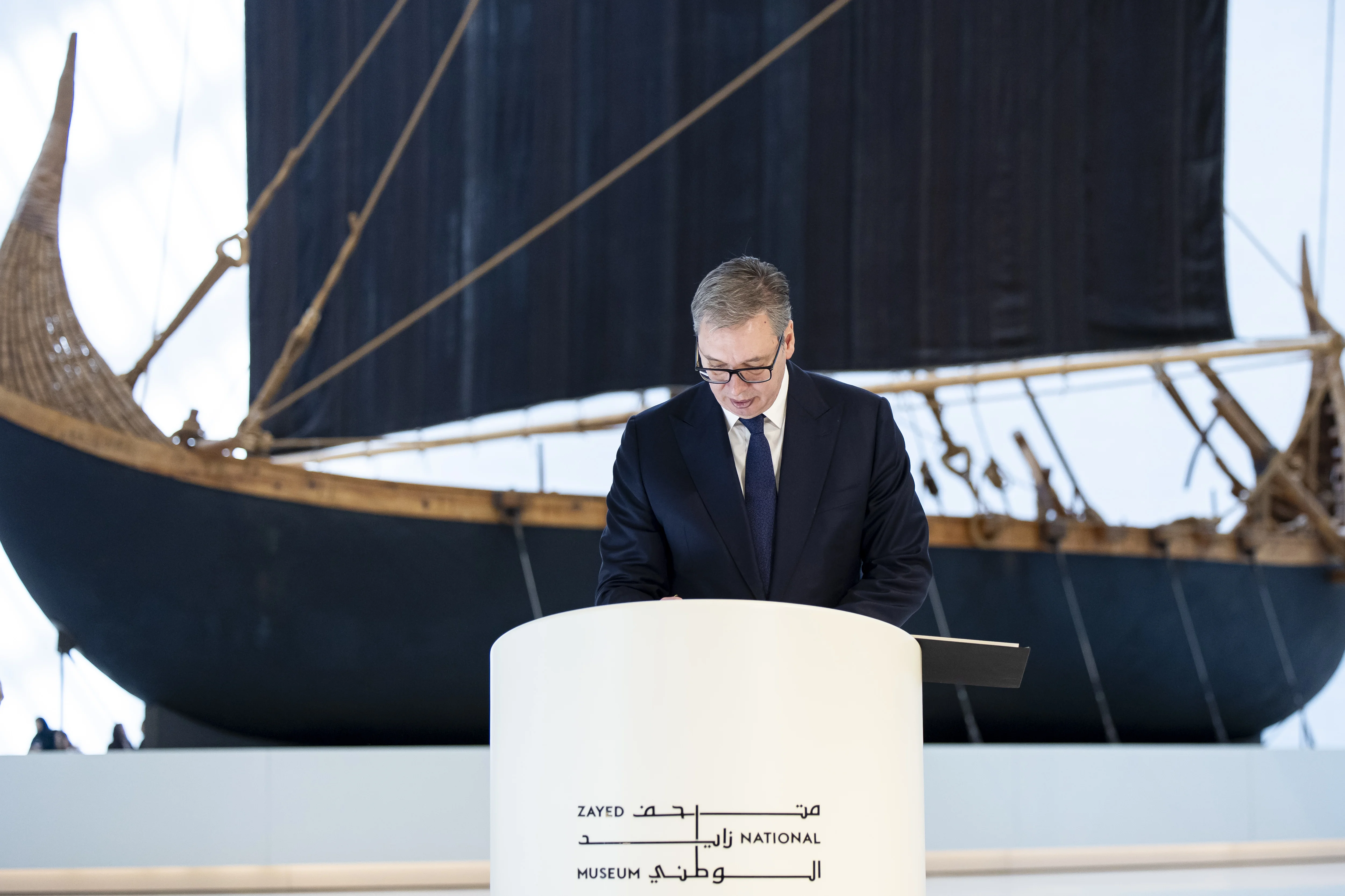 The meeting was held at the Zayed National Museum in Abu Dhabi during His Excellency President Vučić's working visit to the UAE to participate in Abu Dhabi Sustainability Week.