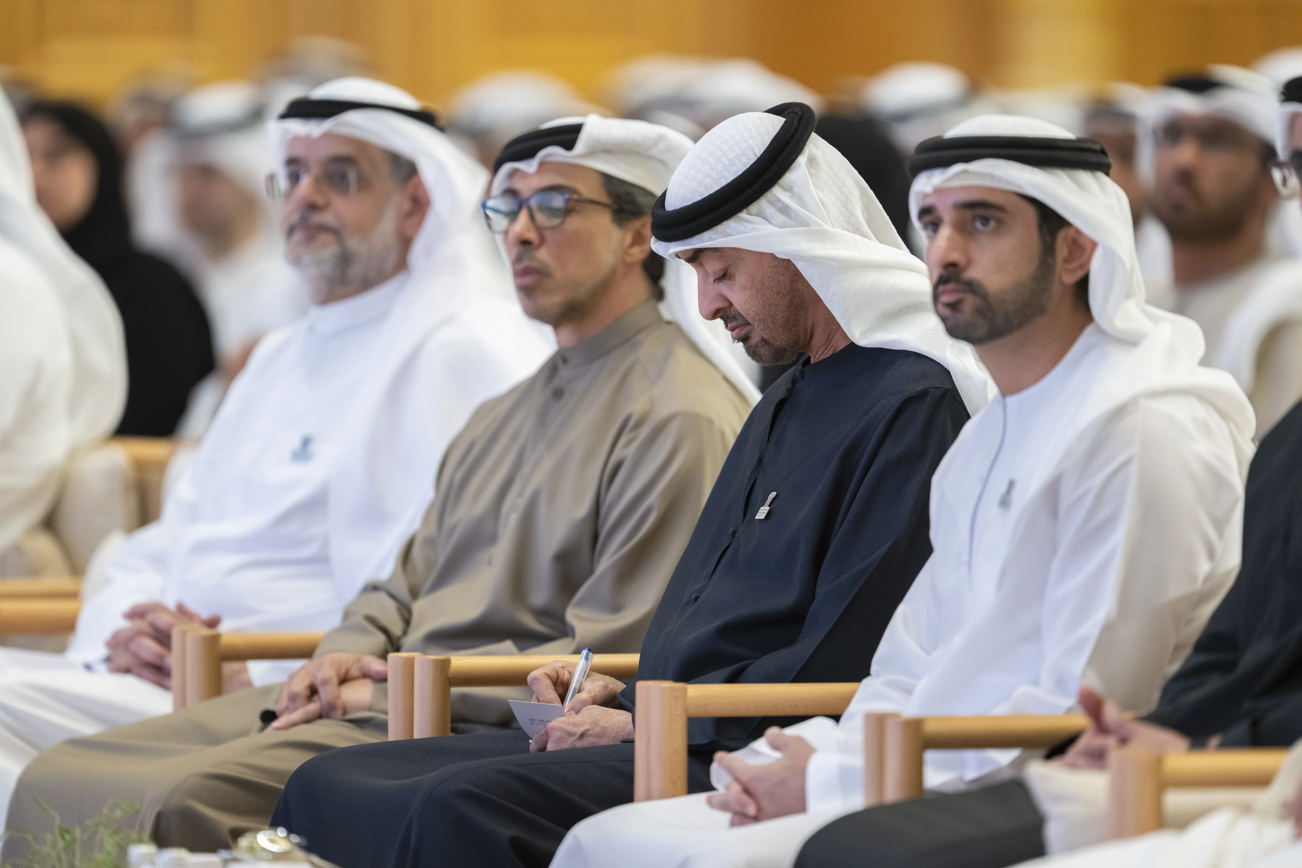 The session was attended by H.H. Sheikh Mansour bin Zayed Al Nahyan, Vice President, Deputy Prime Minister and Chairman of the Presidential Court; H.H. Sheikh Khaled bin Mohamed bin Zayed Al Nahyan, Crown Prince of Abu Dhabi; and H.H. Sheikh Hamdan bin Mohammed bin Rashid Al Maktoum, Crown Prince of Dubai, Deputy Prime Minister, Minister of Defence and Chairman of the Executive Council of the Emirate of Dubai.