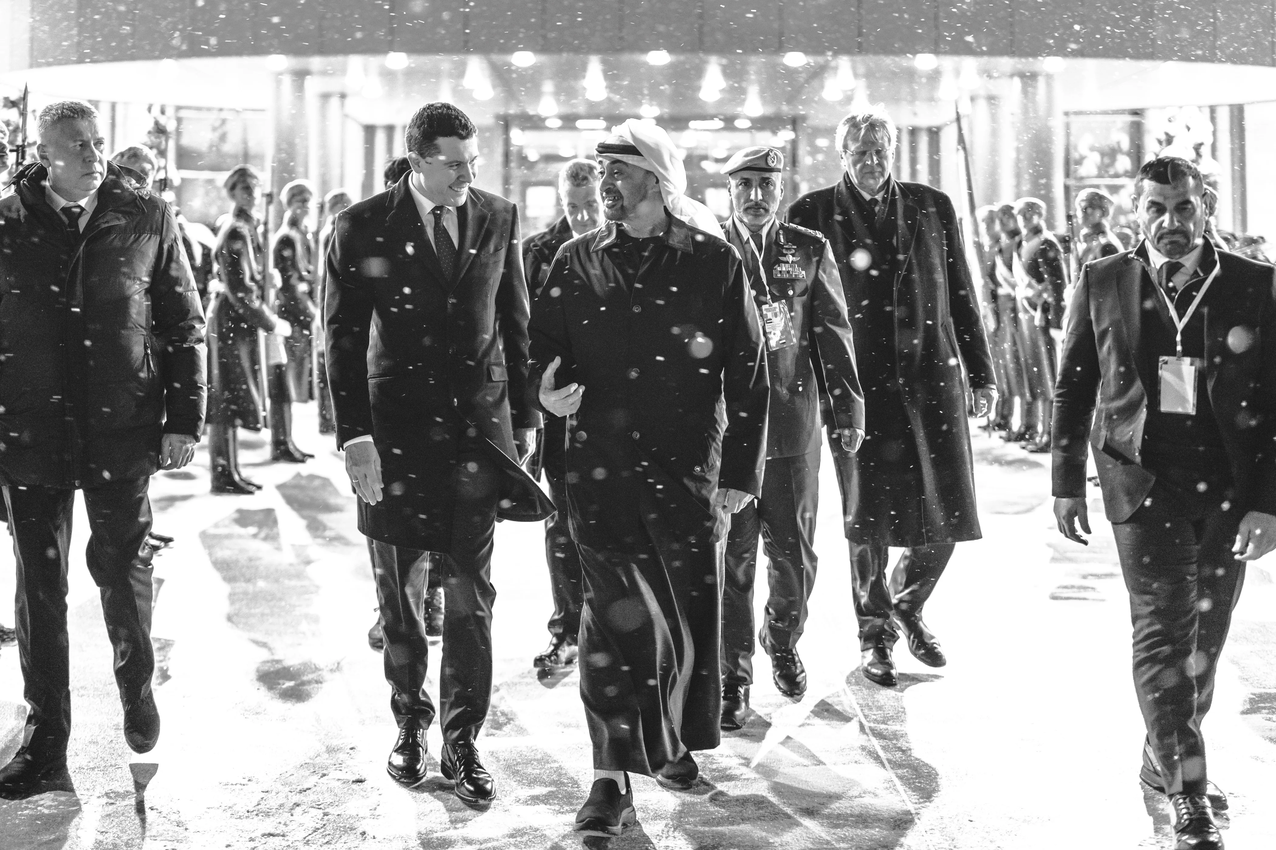 The talks were attended by H.H. Sheikh Hamed bin Zayed Al Nahyan, Managing Director of the Abu Dhabi Investment Authority; H.H. Sheikh Hamdan bin Mohamed bin Zayed Al Nahyan, Deputy Chairman of the Presidential Court for Special Affairs; and Sheikh Mohammed bin Hamad bin Tahnoon Al Nahyan, Advisor to the UAE President, along with a number of Sheikhs, ministers, and senior officials, as well as several ministers and senior officials in Russia.