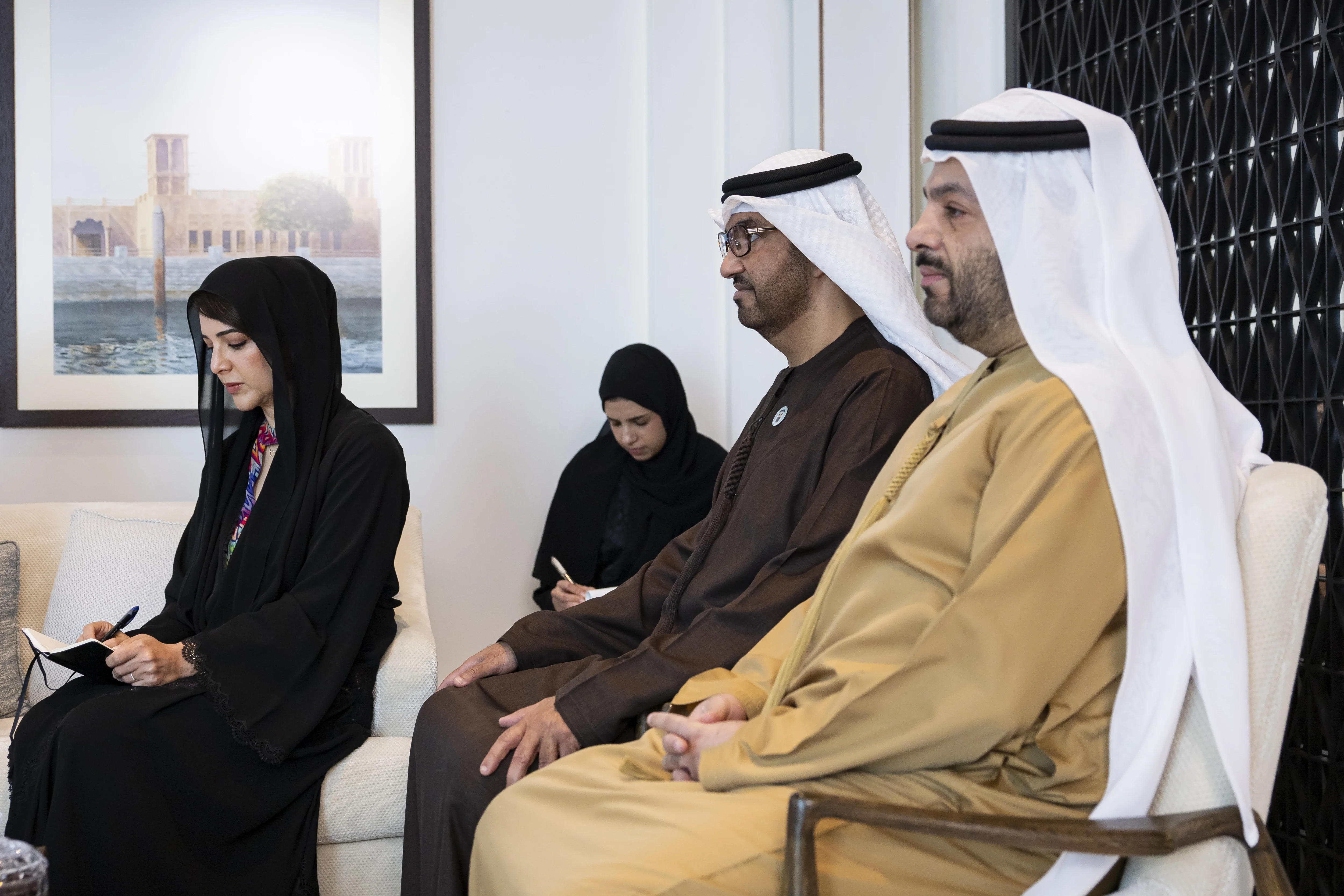 The meeting was attended by H.H. Sheikh Khaled bin Mohamed bin Zayed Al Nahyan, Crown Prince of Abu Dhabi; H.H. Sheikh Hamdan bin Mohamed bin Zayed Al Nahyan, Deputy Chairman of the Presidential Court for Special Affairs; several ministers; top officials, and the accompanying delegation of the President of Ecuador.