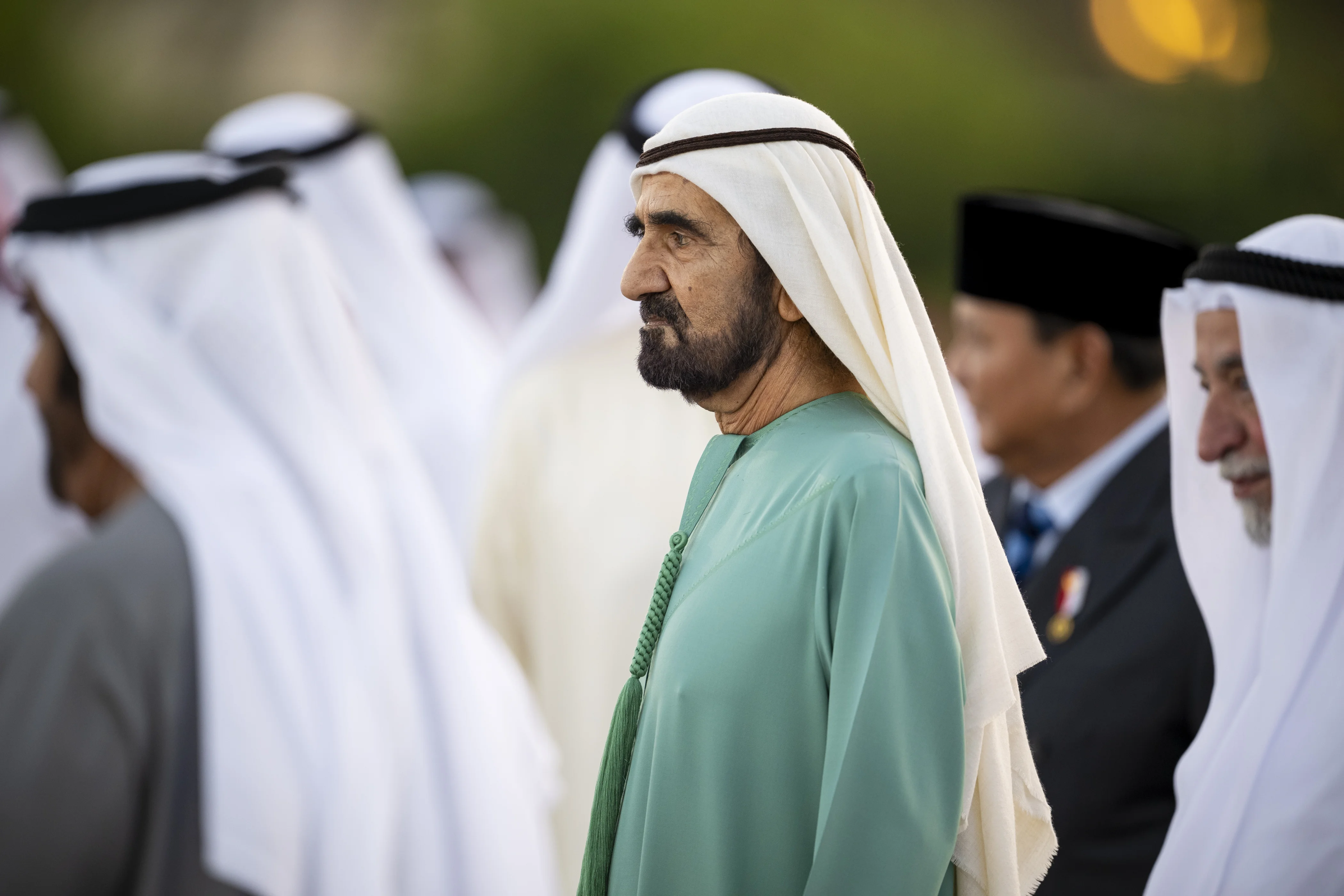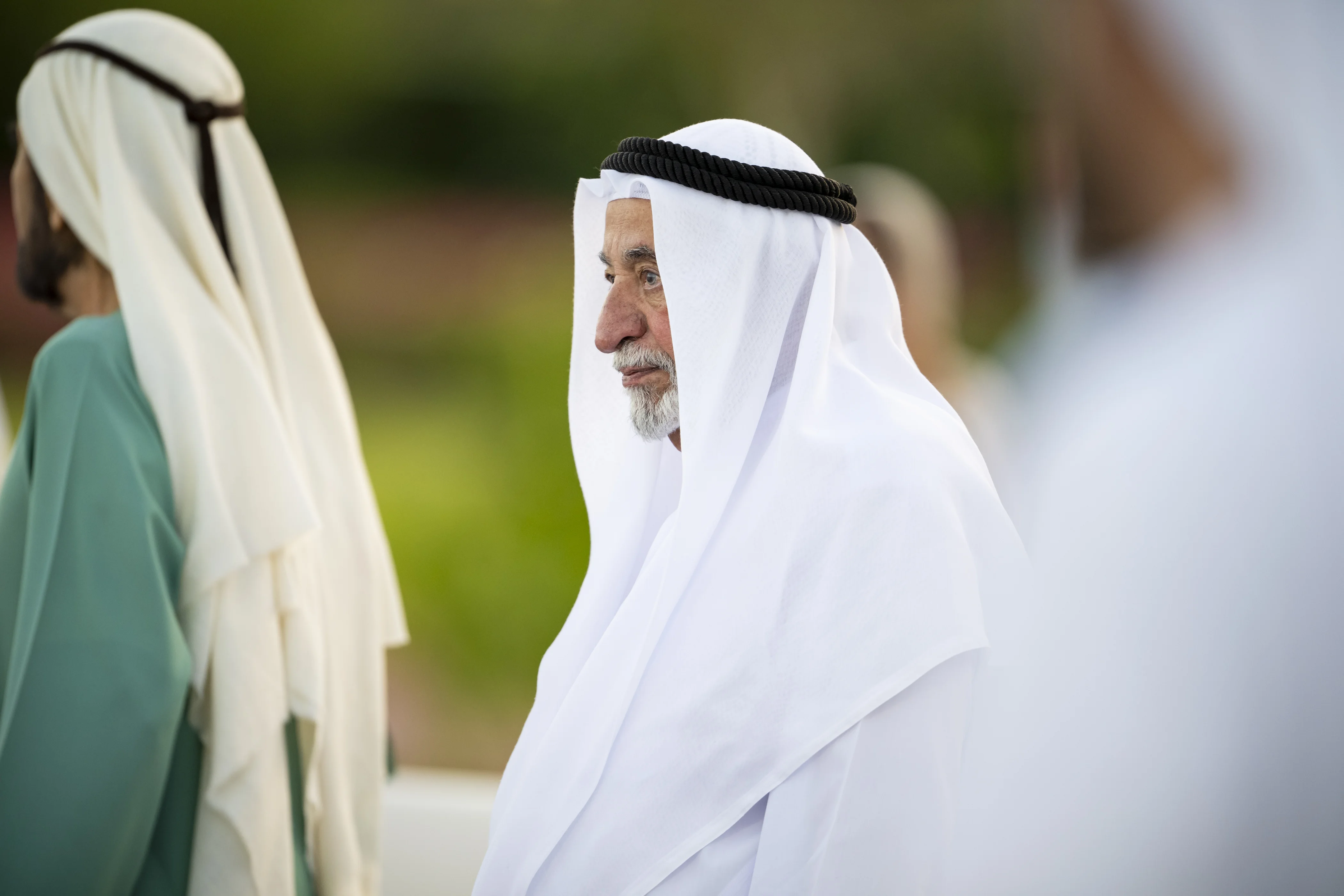 His Highness the President also received H.H. Sheikh Hamdan bin Mohammed bin Rashid Al Maktoum, Crown Prince of Dubai, Deputy Prime Minister and Minister of Defence; H.H. Sheikh Ahmed bin Mohammed bin Rashid Al Maktoum, Second Deputy Ruler of Dubai; H.H. Sheikh Sultan bin Mohammed bin Sultan Al Qasimi, Crown Prince and Deputy Ruler of Sharjah; H.H. Sheikh Sultan bin Ahmed bin Sultan Al Qasimi, Deputy Ruler of Sharjah; H.H. Sheikh Ammar bin Humaid Al Nuaimi, Crown Prince of Ajman; H.H. Sheikh Mohammed bin Hamad bin Mohammed Al Sharqi, Crown Prince of Fujairah; H.H. Sheikh Rashid bin Saud bin Rashid Al Mu'alla, Crown Prince of Umm Al Qaiwain; H.H. Sheikh Mohammed bin Saud bin Saqr Al Qasimi, Crown Prince of Ras Al Khaimah; Saqr Ghobash, Speaker of the Federal National Council (FNC); along with a number of Sheikhs, ministers, senior officials, and guests from across the UAE.
