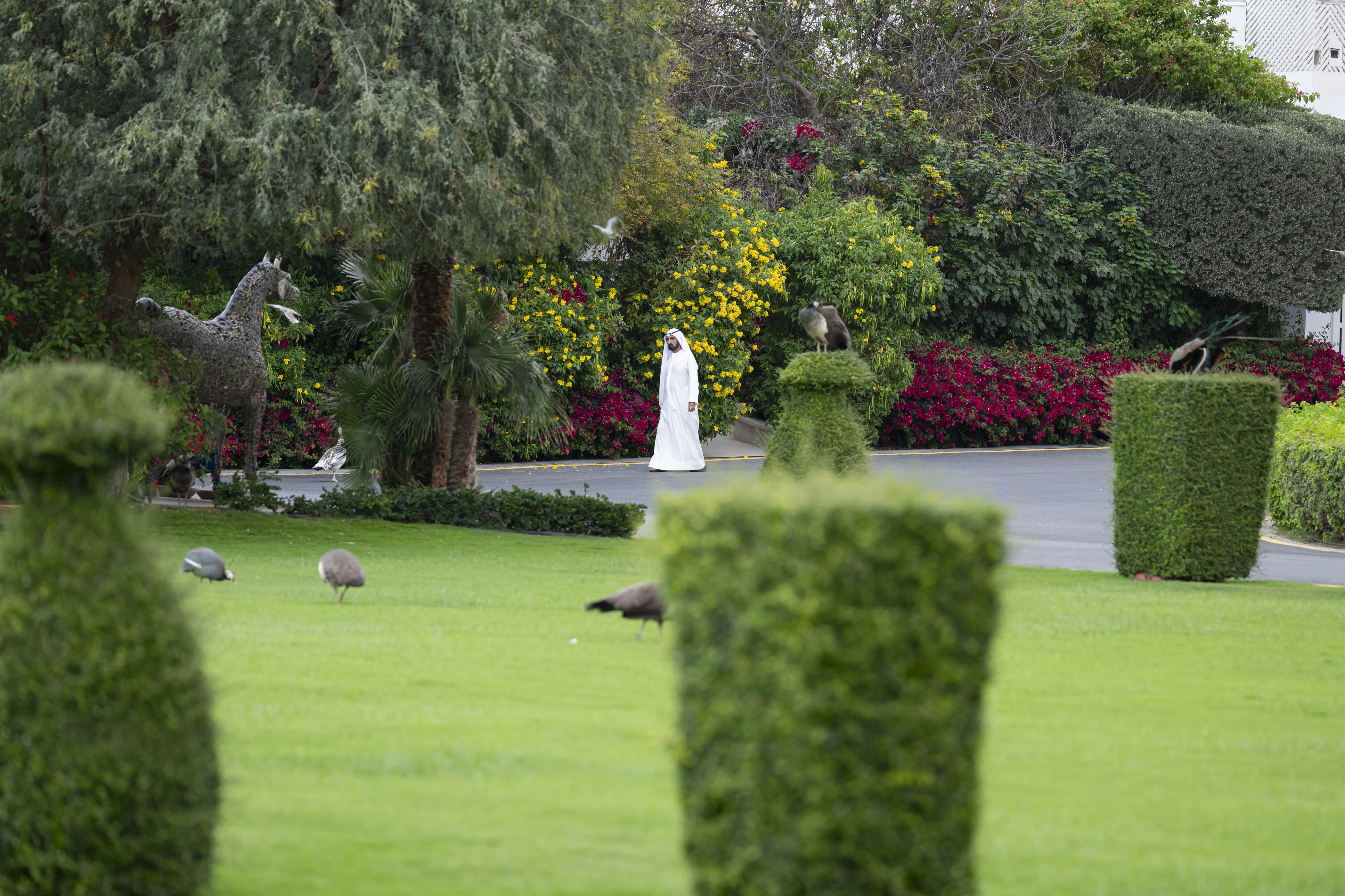 During the meeting, at Al Marmoom in Dubai, Their Highnesses exchanged cordial conversations and prayed to God to continue to protect the UAE and its people and to preserve the country’s security and stability.