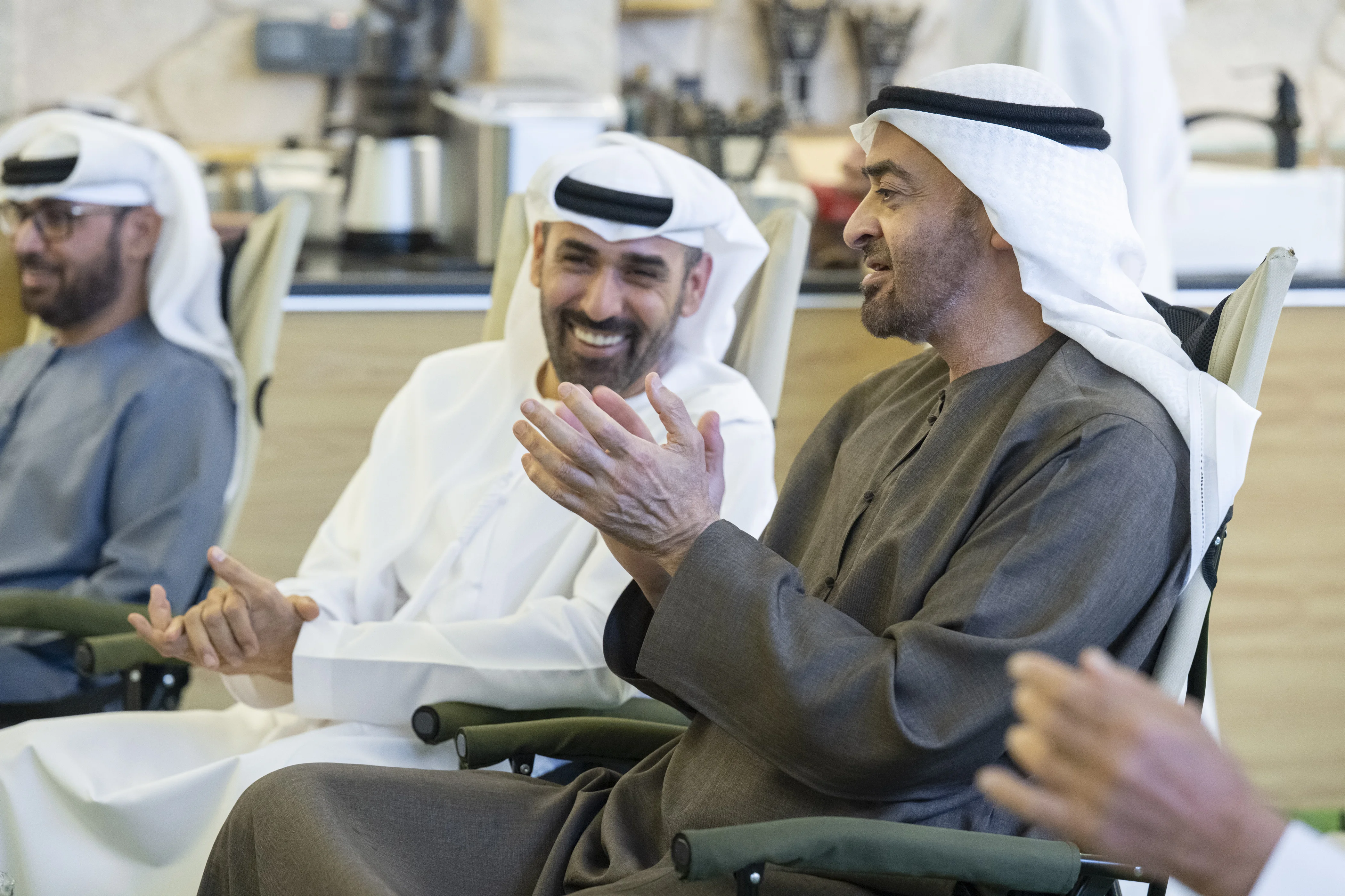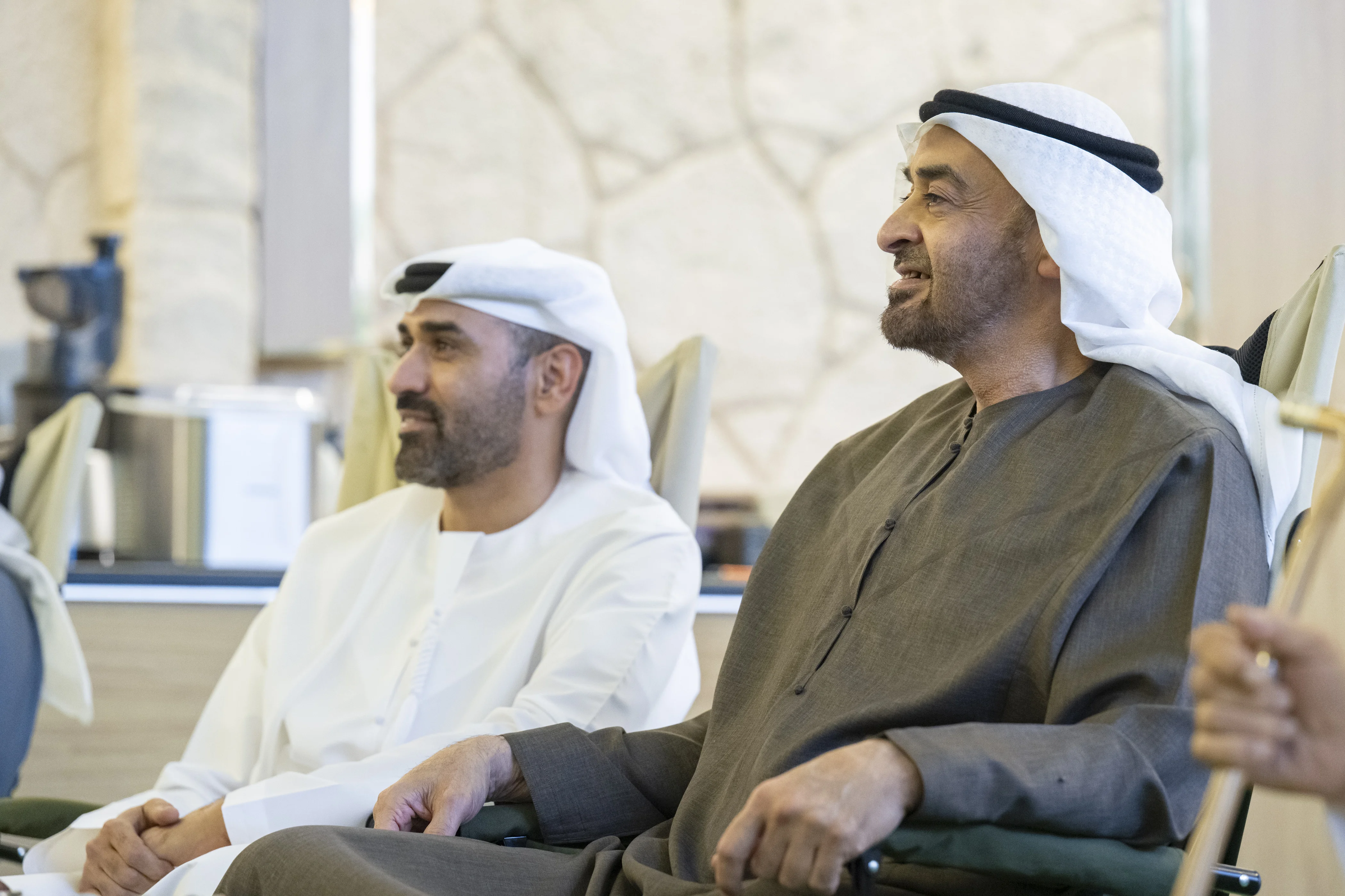 His Highness was accompanied during the visit by H.H. Sheikh Hamed bin Zayed Al Nahyan; H.H. Sheikh Theyab bin Zayed Al Nahyan; H.H. Sheikh Omar bin Zayed Al Nahyan, Vice Chair of Zayed for Good Foundation; H.H. Sheikh Khalid bin Zayed Al Nahyan, Chairman of the Board of Trustees of Zayed Authority for People of Determination; H.H. Sheikh Hamdan bin Mohamed bin Zayed Al Nahyan, Deputy Chairman of the Presidential Court for Special Affairs; Sheikh Mohammed bin Hamad bin Tahnoon Al Nahyan, Adviser to the UAE President, and several officials.
